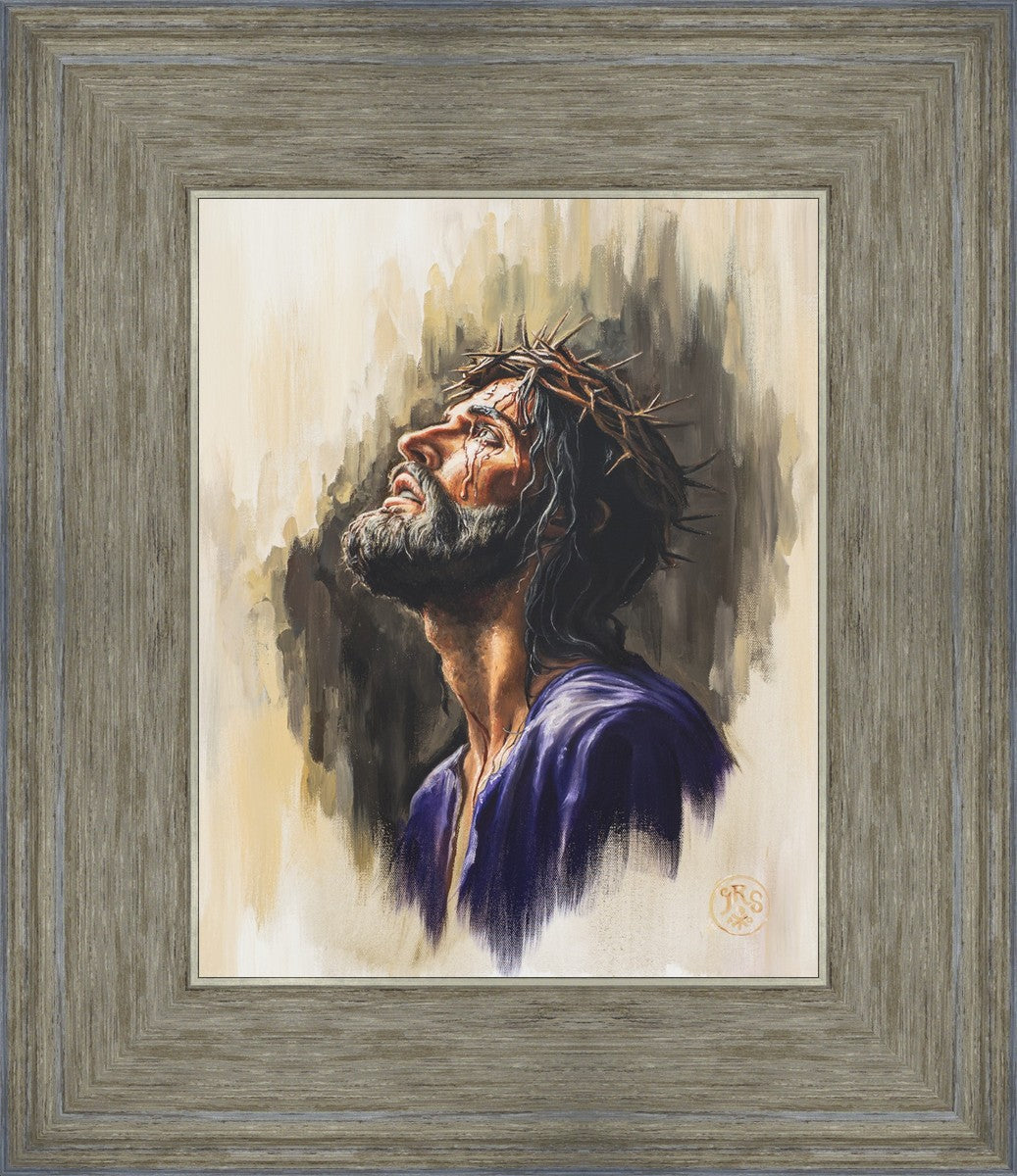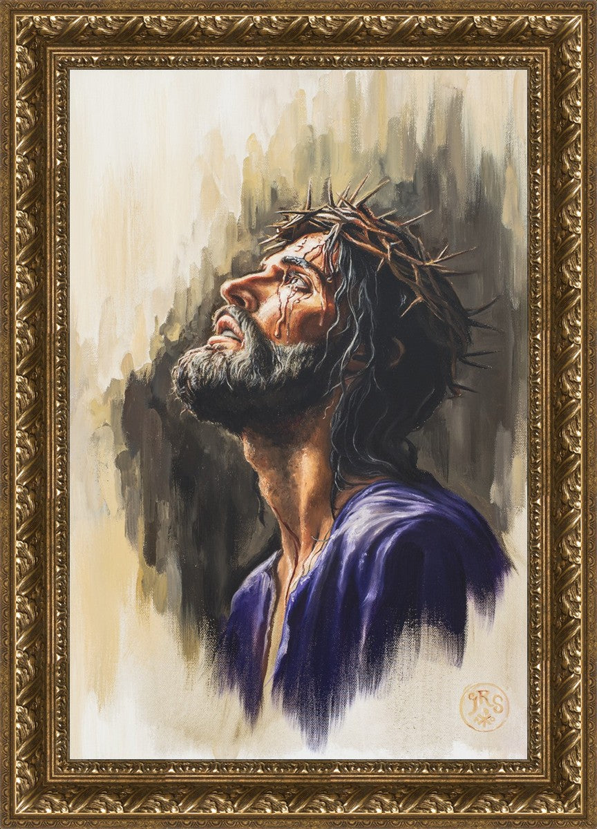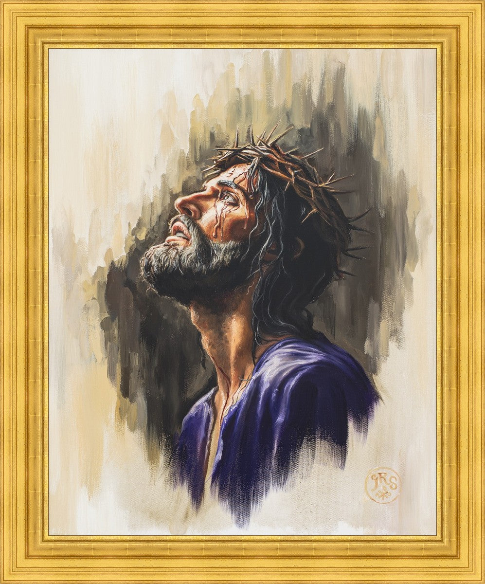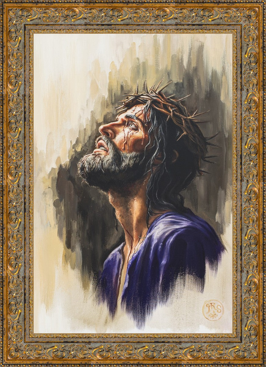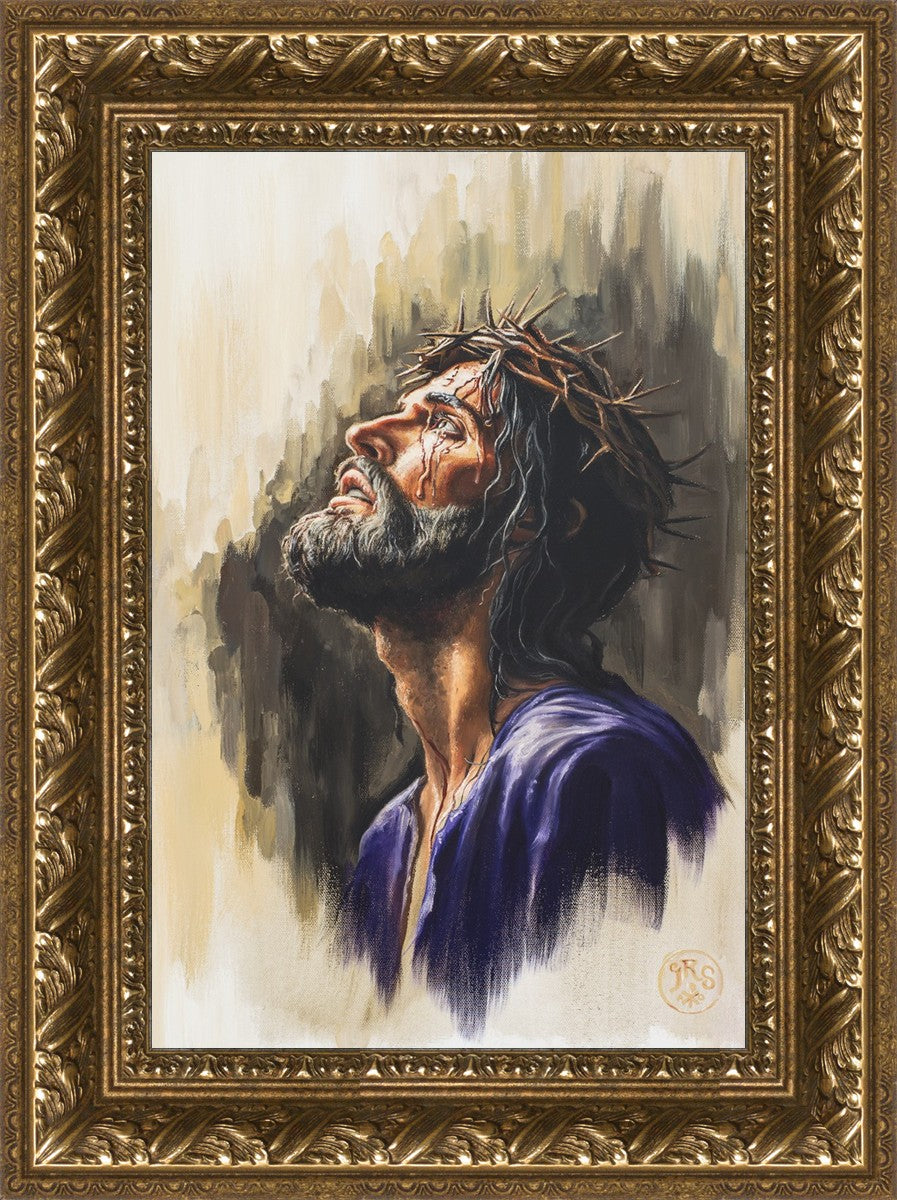 "Coronation II" is a depiction of Christ with the crown of thorns being placed upon his head by the roman soldiers. In this artwork, Christ is depicted with his chin held high. This choice in posing demonstrates how even while bearing the most painful form of tortuous murder in the ancient world, Christ, as our sovereign Lord, has not been overcome by those who oppose him, but rather is actively submitting himself to these abuses as a means for expiating the sins of the world.