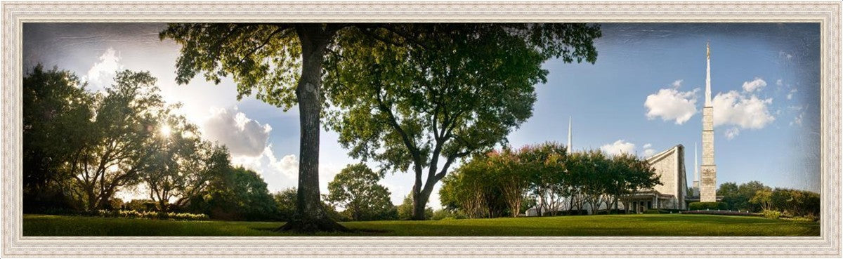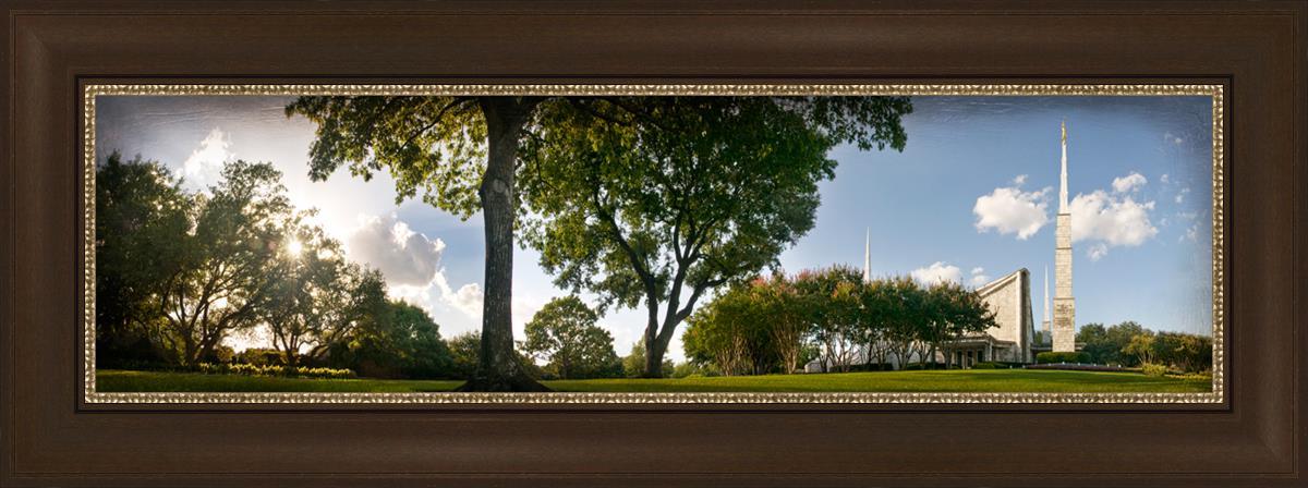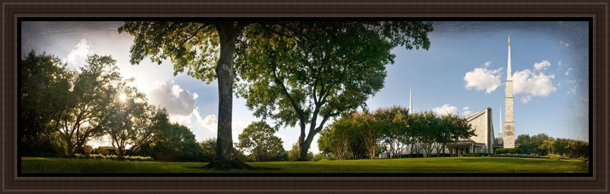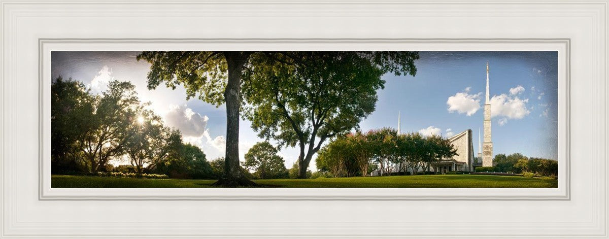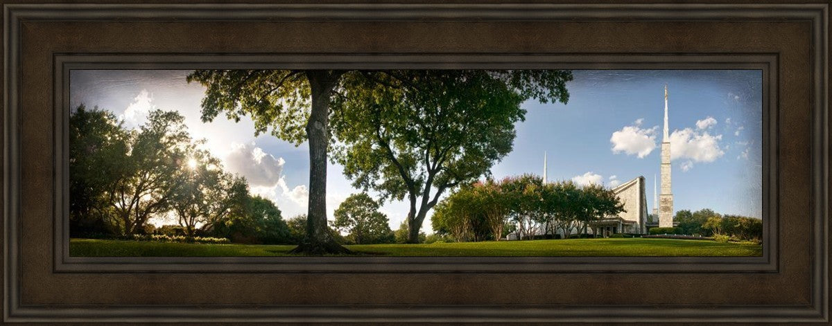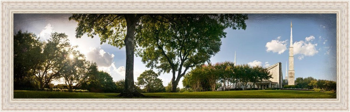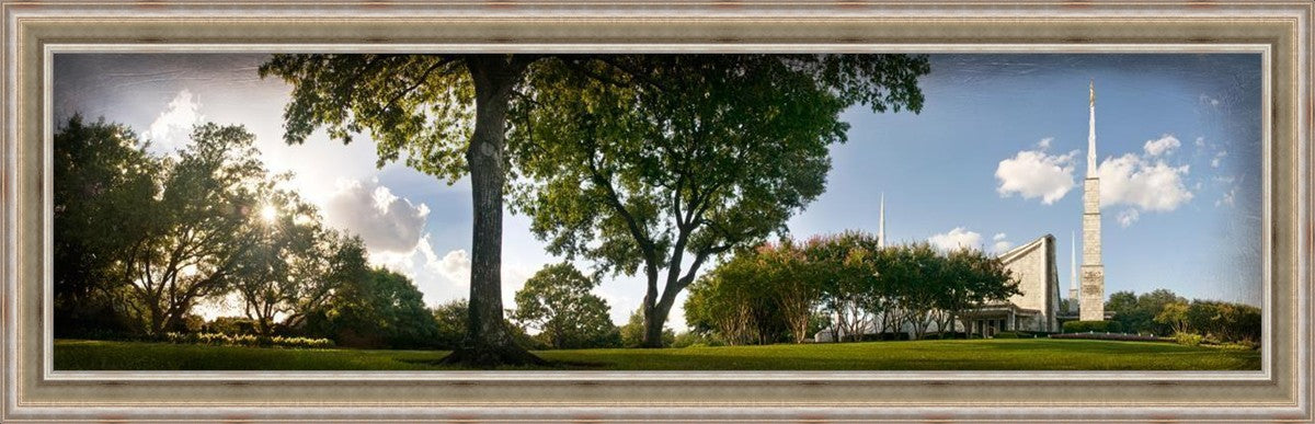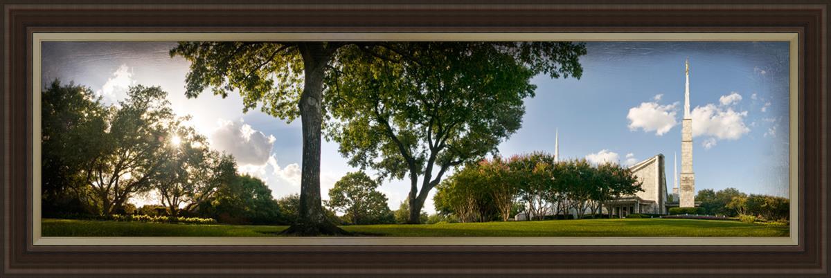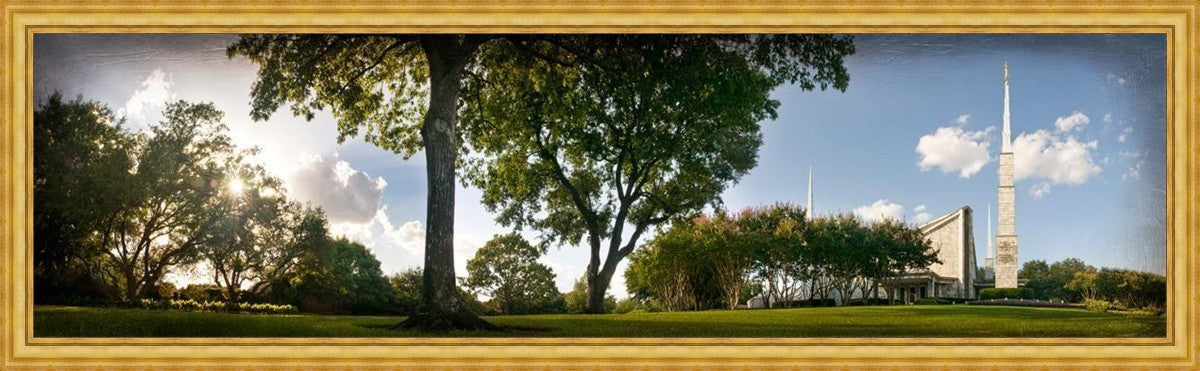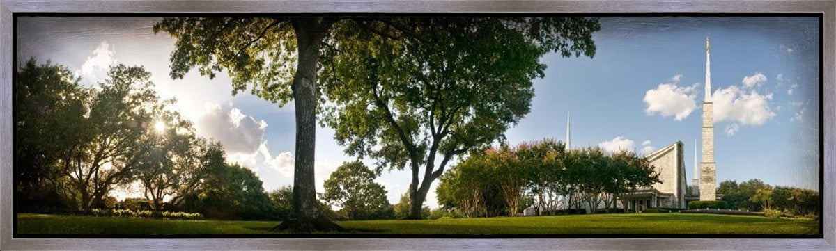 Since 1999 Landon has worked as an artisan in nearly 40 temples doing the decorative paint and gold leaf. He continues to do so as well as wood repair and graining. He was married in 2001 to Jacey Thomas in the Manti Utah temple. When she couldn’t find an image of the temple that she liked enough to purchase for their home, he decided to take one himself. That desire to create something original and different inspired his current series of temple art. They are taken from a panoramic viewpoint and stylized with an artistic border that reflect his paintings. All modern structures apart from the temple have been omitted.