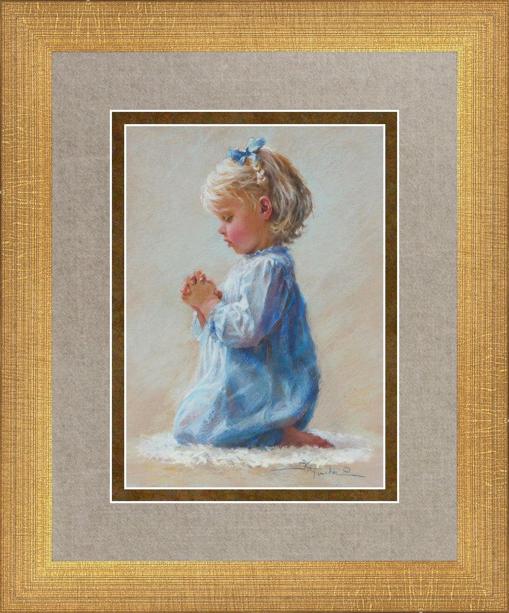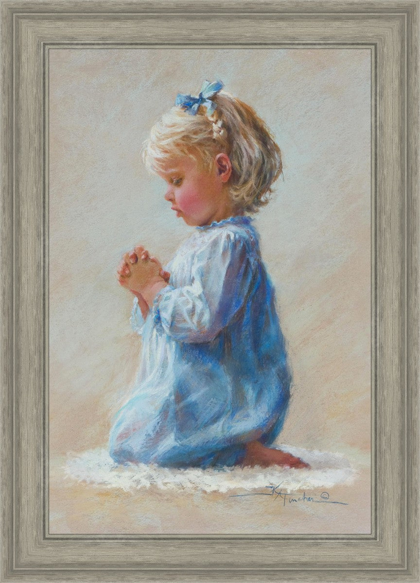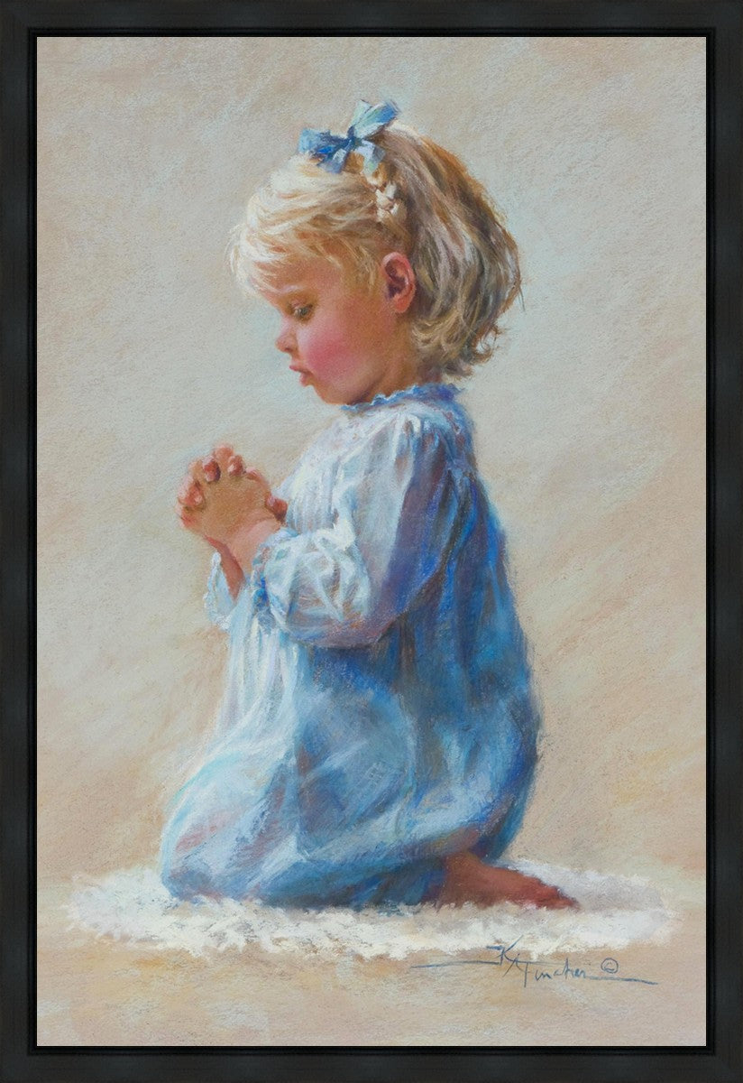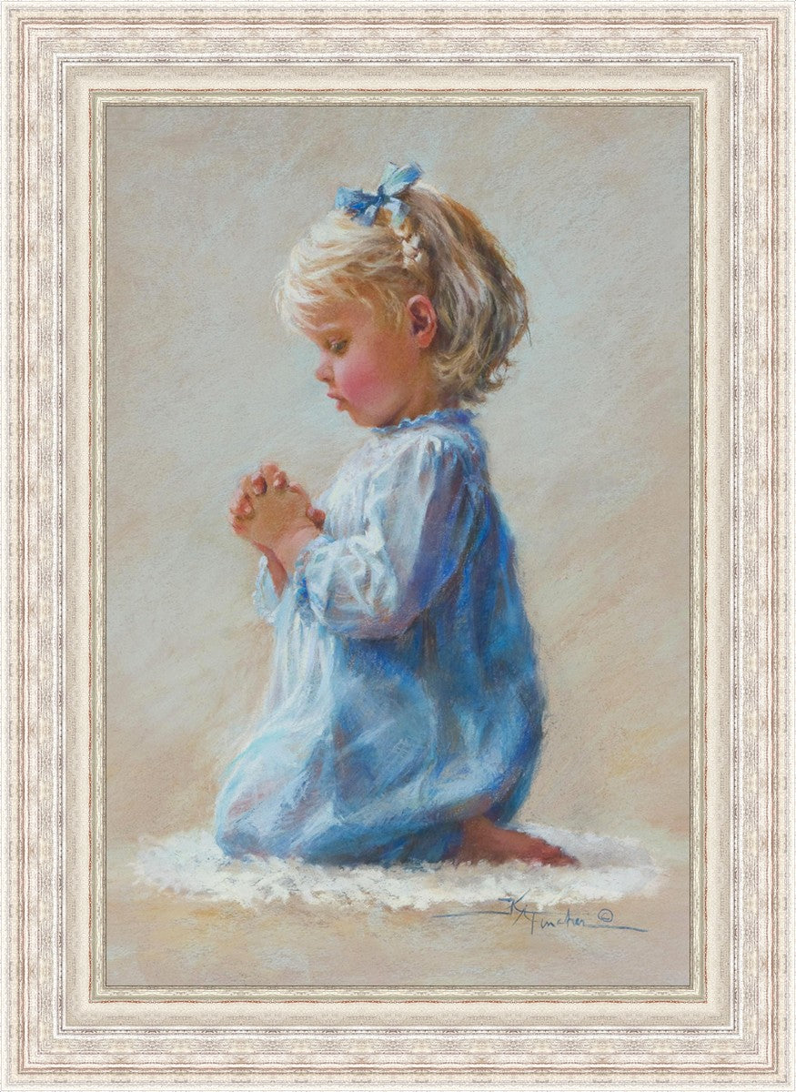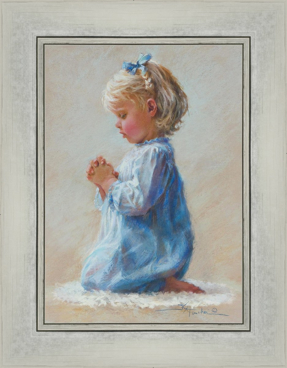 “Dear Jesus” is a modern-day interpretation of the timeless Prayer Children painted in 1940 by Bessie Pease Gutmann. A copy of Gutmann’s prayer girl was painted by my mother, a portrait painter, in the ‘50’s and hung over my bed with “Kathy’s Prayer” written across the bottom.