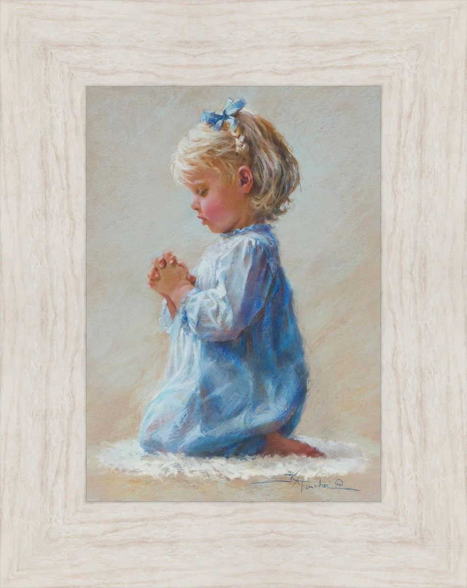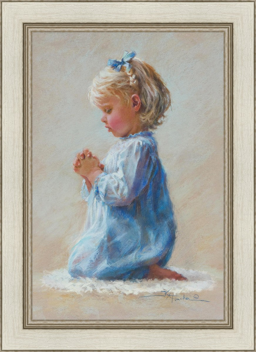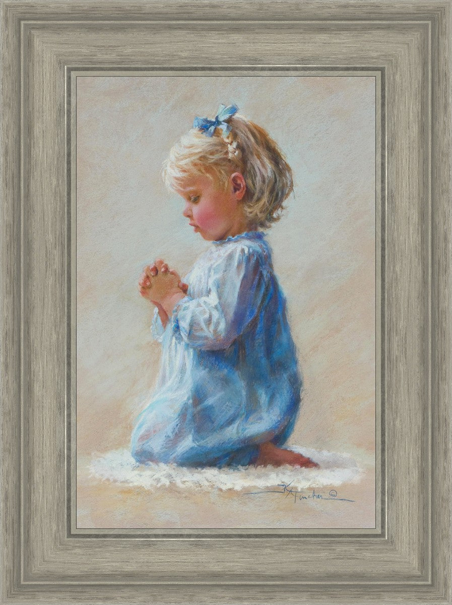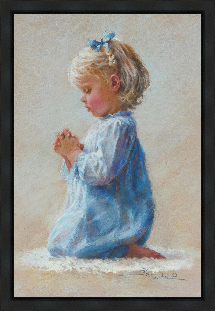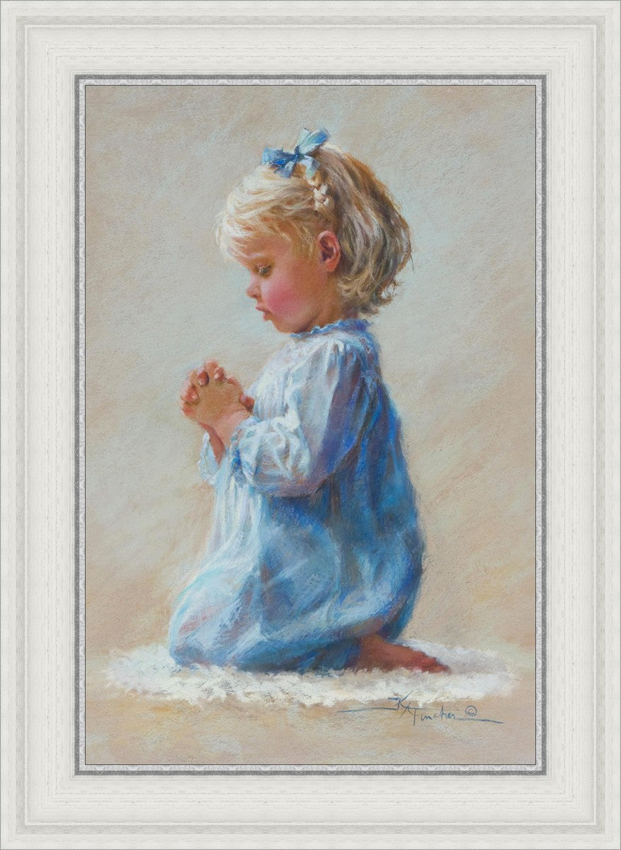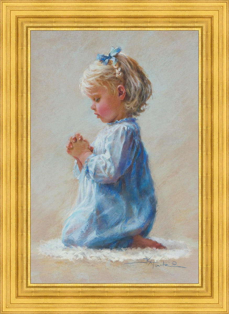 “Dear Jesus” is a modern-day interpretation of the timeless Prayer Children painted in 1940 by Bessie Pease Gutmann. A copy of Gutmann’s prayer girl was painted by my mother, a portrait painter, in the ‘50’s and hung over my bed with “Kathy’s Prayer” written across the bottom.