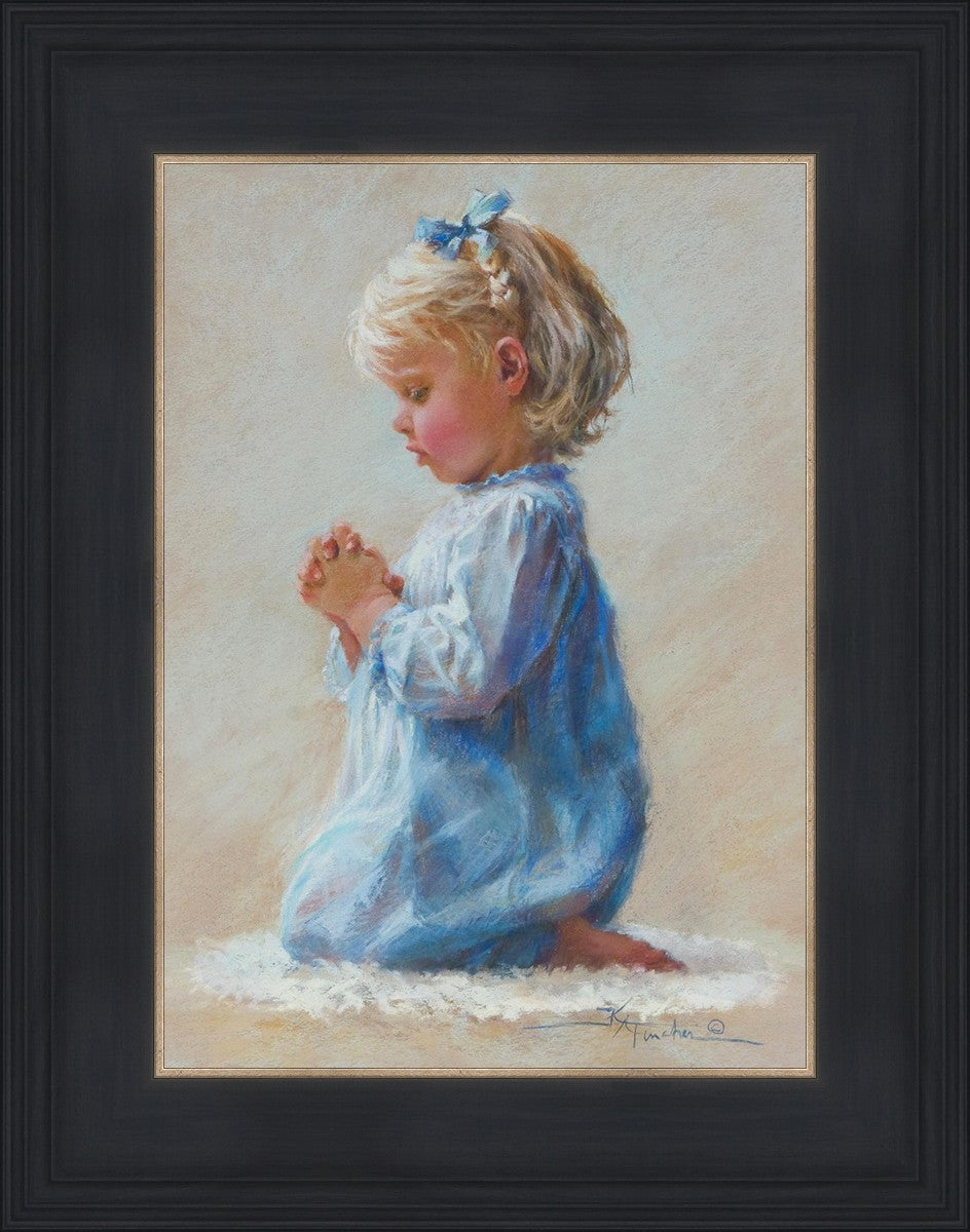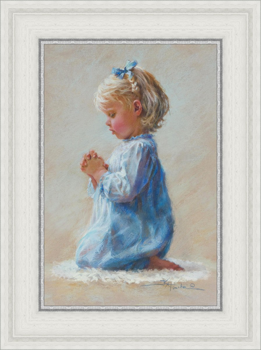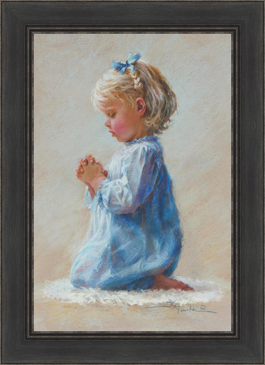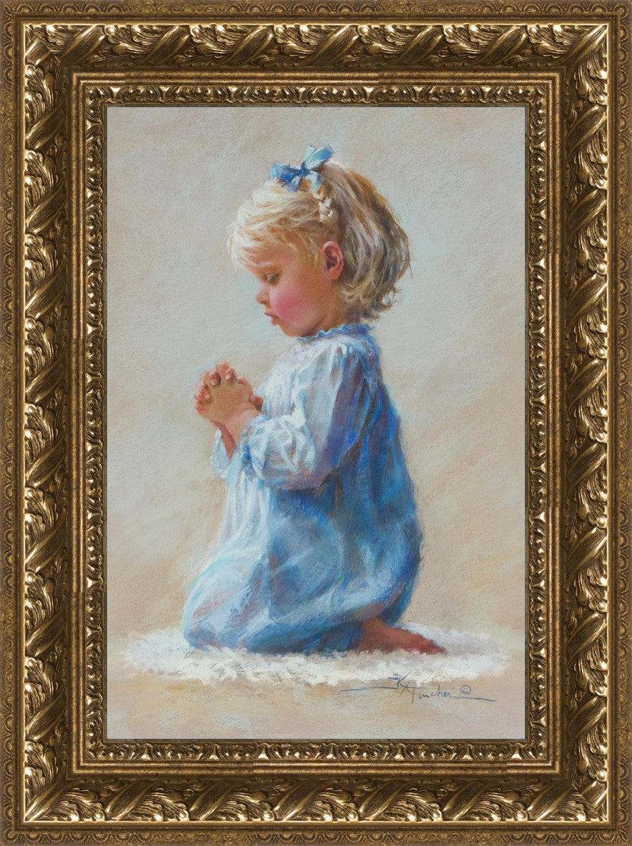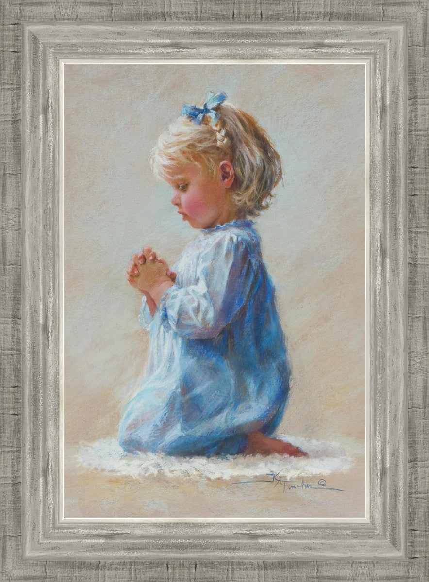 “Dear Jesus” is a modern-day interpretation of the timeless Prayer Children painted in 1940 by Bessie Pease Gutmann. A copy of Gutmann’s prayer girl was painted by my mother, a portrait painter, in the ‘50’s and hung over my bed with “Kathy’s Prayer” written across the bottom.