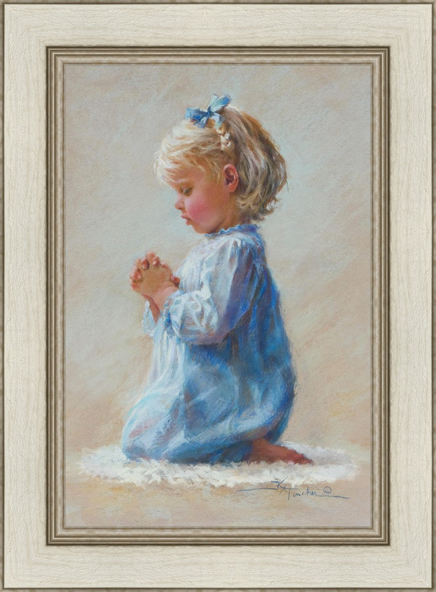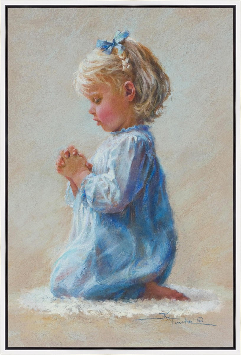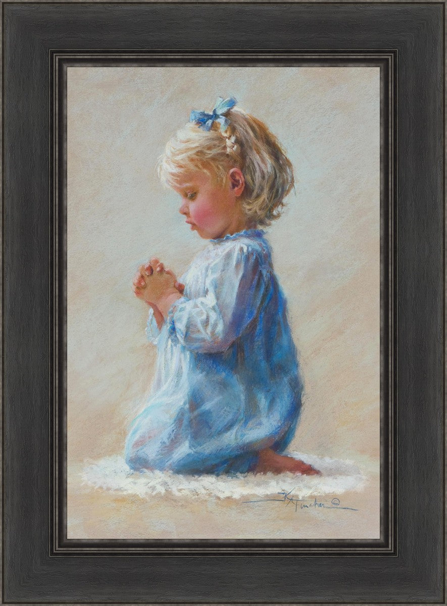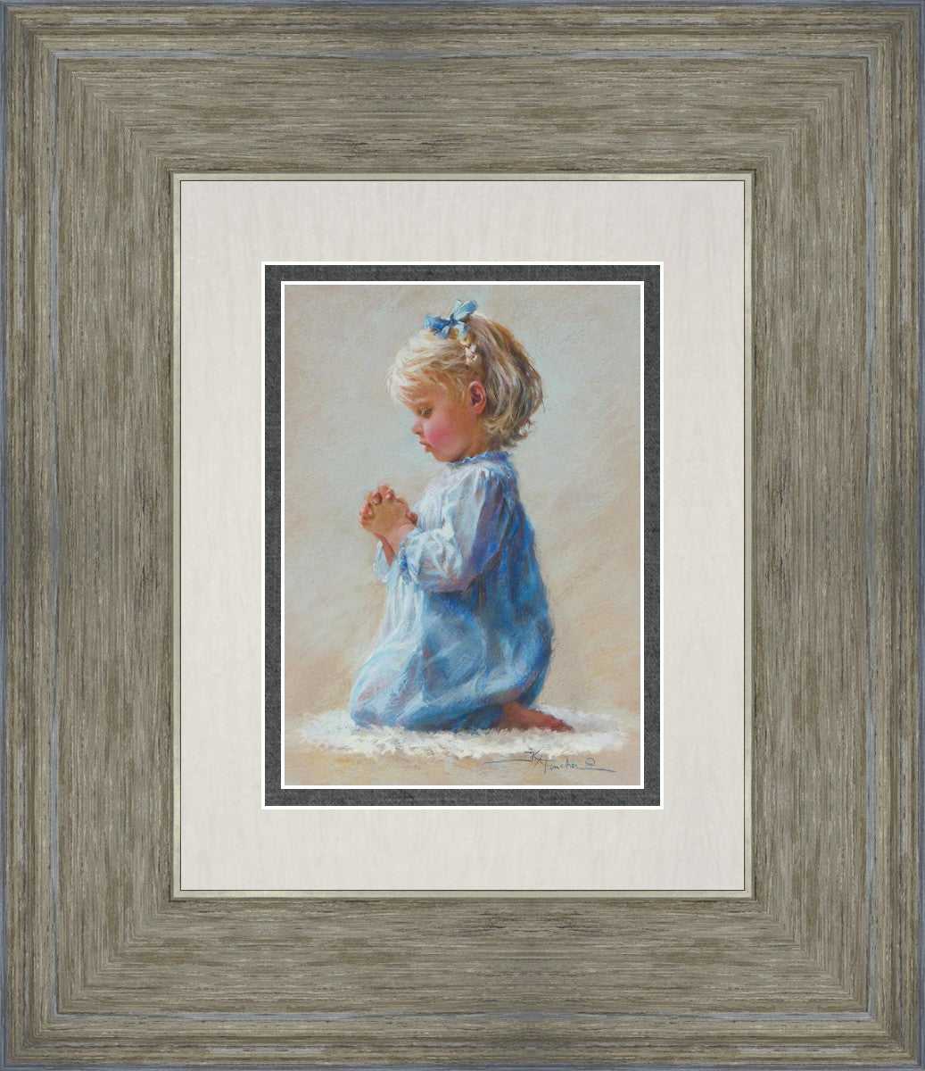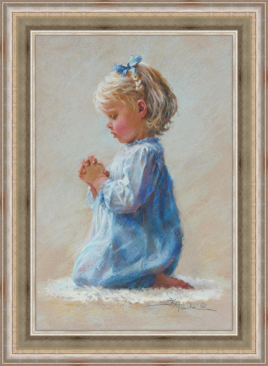 “Dear Jesus” is a modern-day interpretation of the timeless Prayer Children painted in 1940 by Bessie Pease Gutmann. A copy of Gutmann’s prayer girl was painted by my mother, a portrait painter, in the ‘50’s and hung over my bed with “Kathy’s Prayer” written across the bottom.