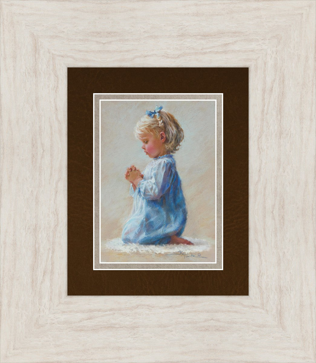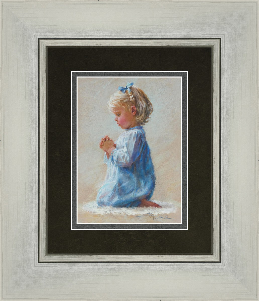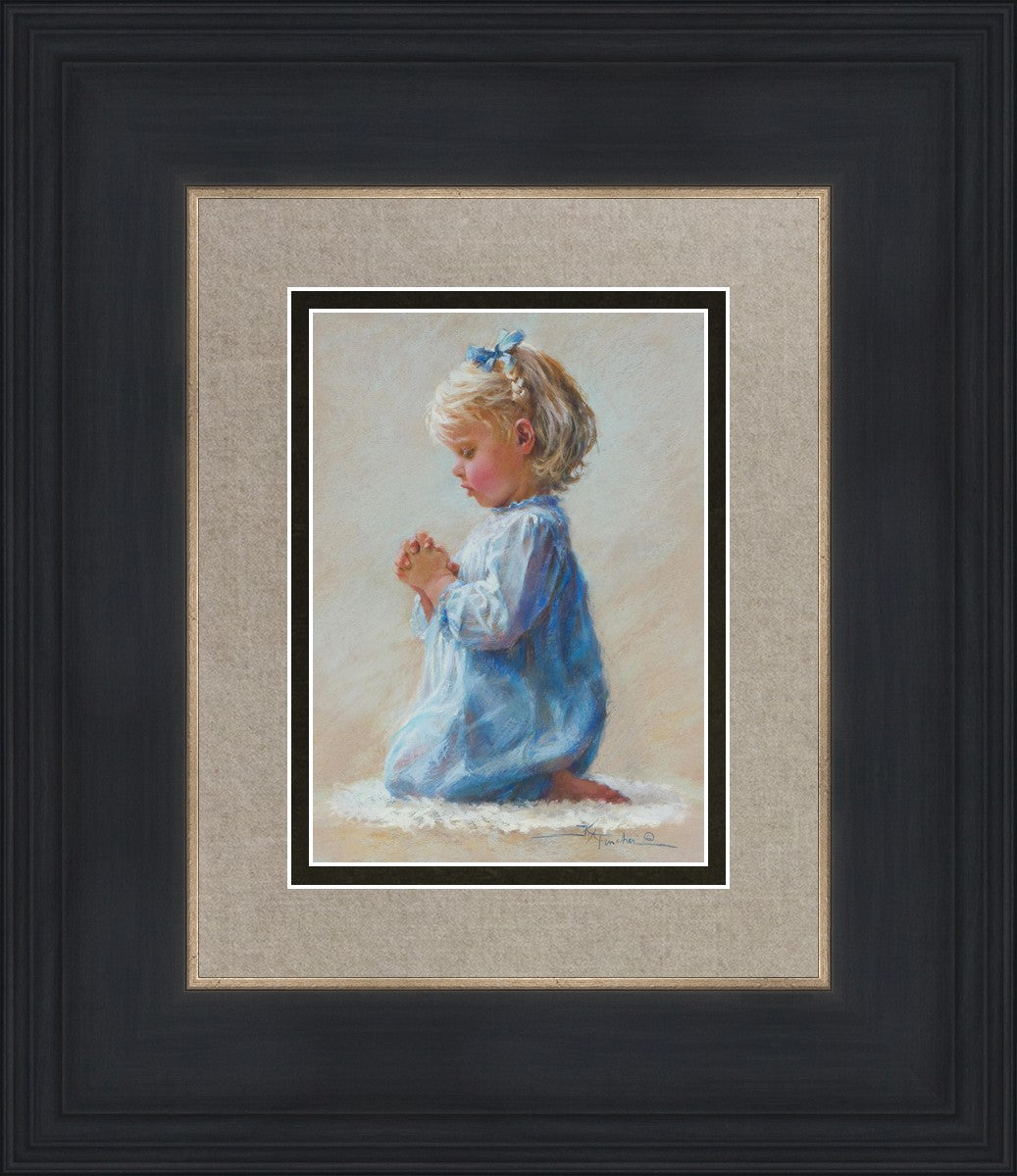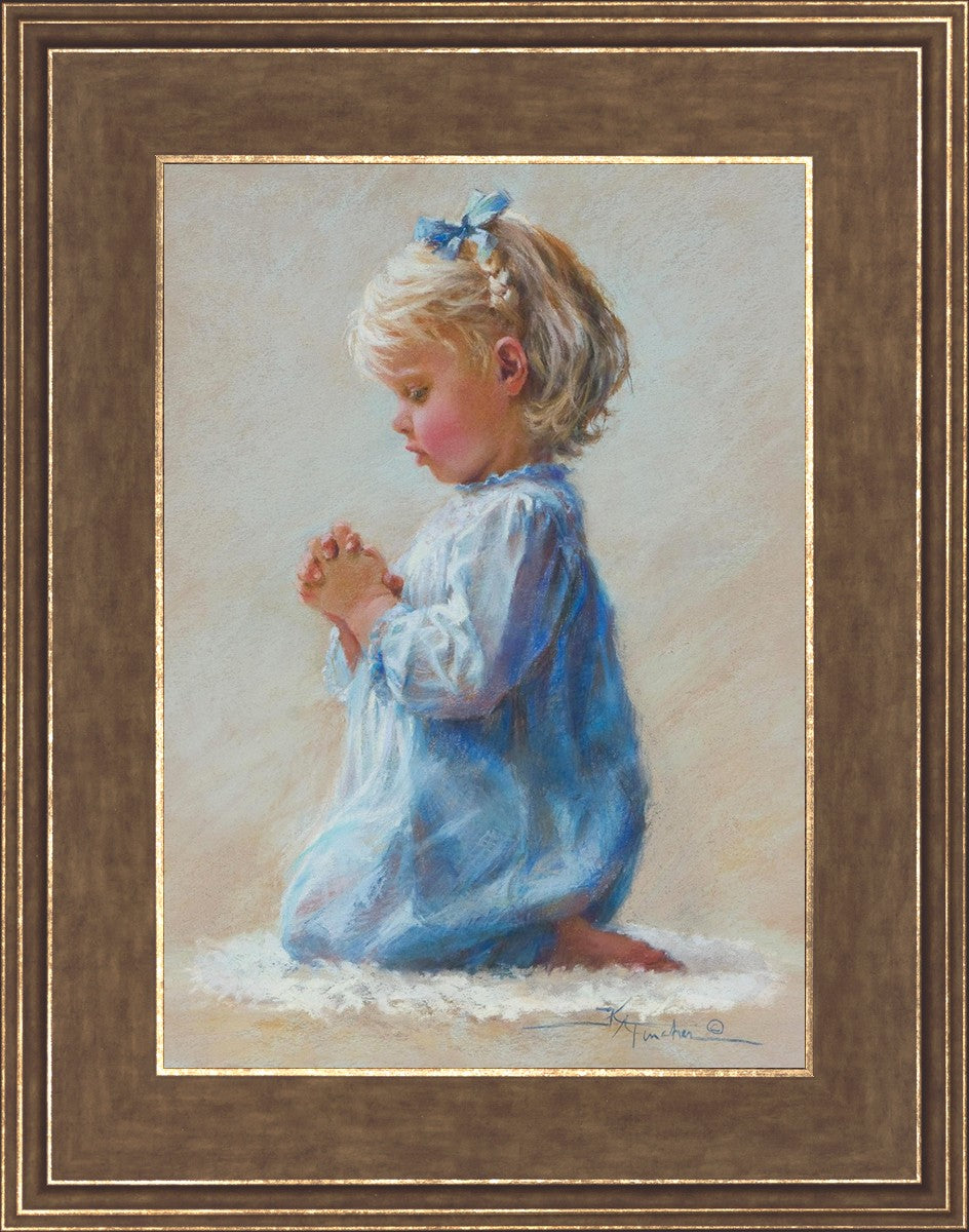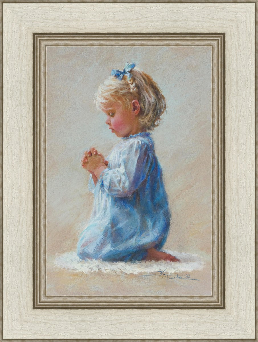 “Dear Jesus” is a modern-day interpretation of the timeless Prayer Children painted in 1940 by Bessie Pease Gutmann. A copy of Gutmann’s prayer girl was painted by my mother, a portrait painter, in the ‘50’s and hung over my bed with “Kathy’s Prayer” written across the bottom.