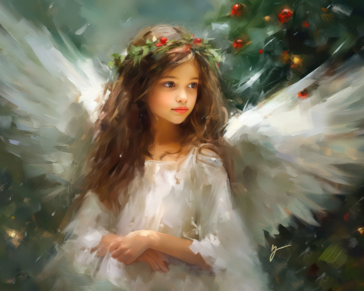 "Delicate Christmas Angel" brings to life this enchanting tale, the culmination of Lily's dreams, as she stands in the snowy courtyard, a beacon of love and hope. This painting transports the magic of that wintry night, making it a part of your home. It's a masterpiece that goes beyond art, connecting you with cherished moments and the profound emotions of the holiday season.