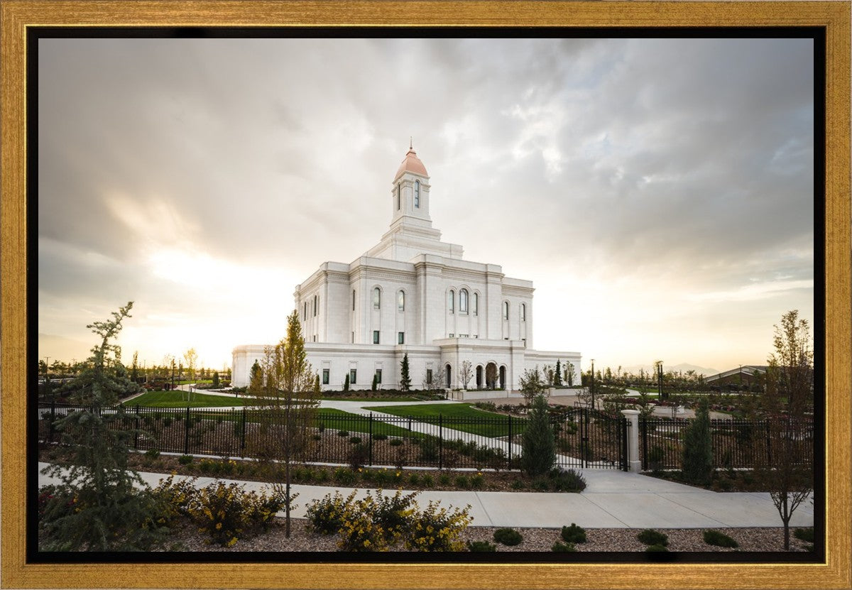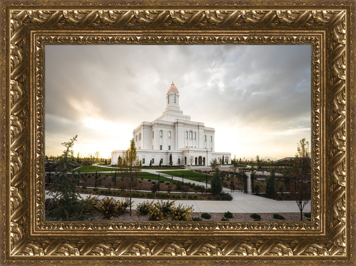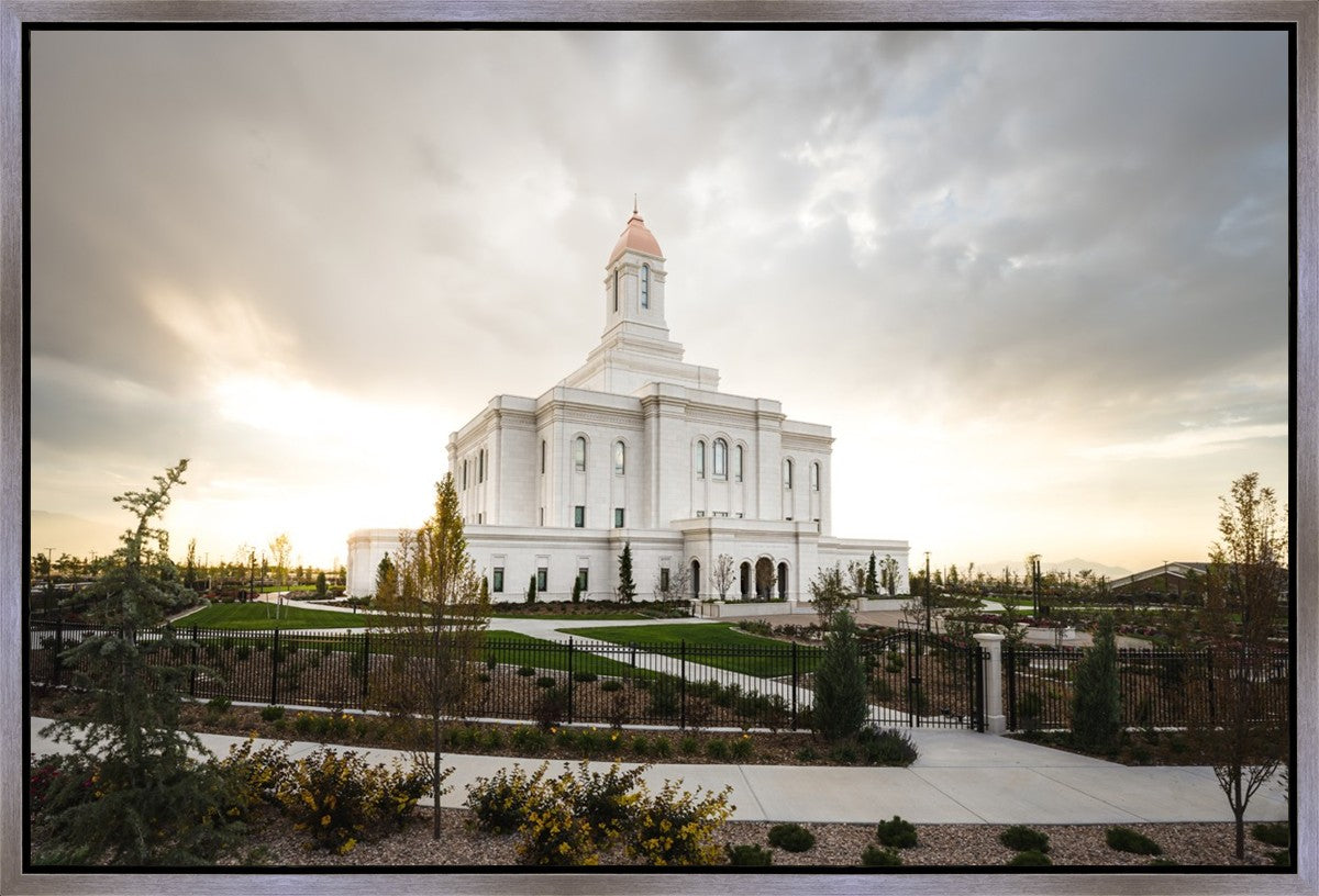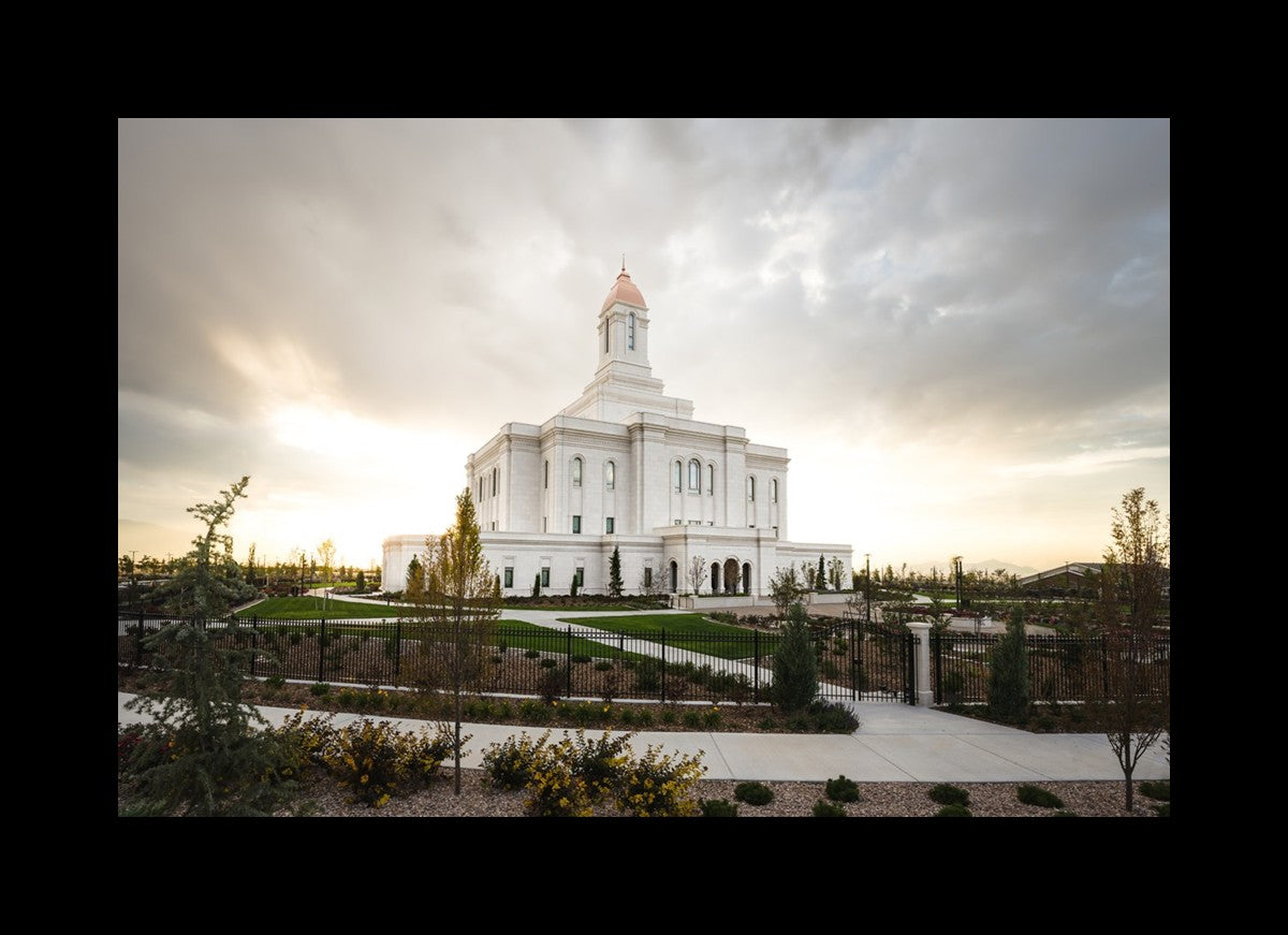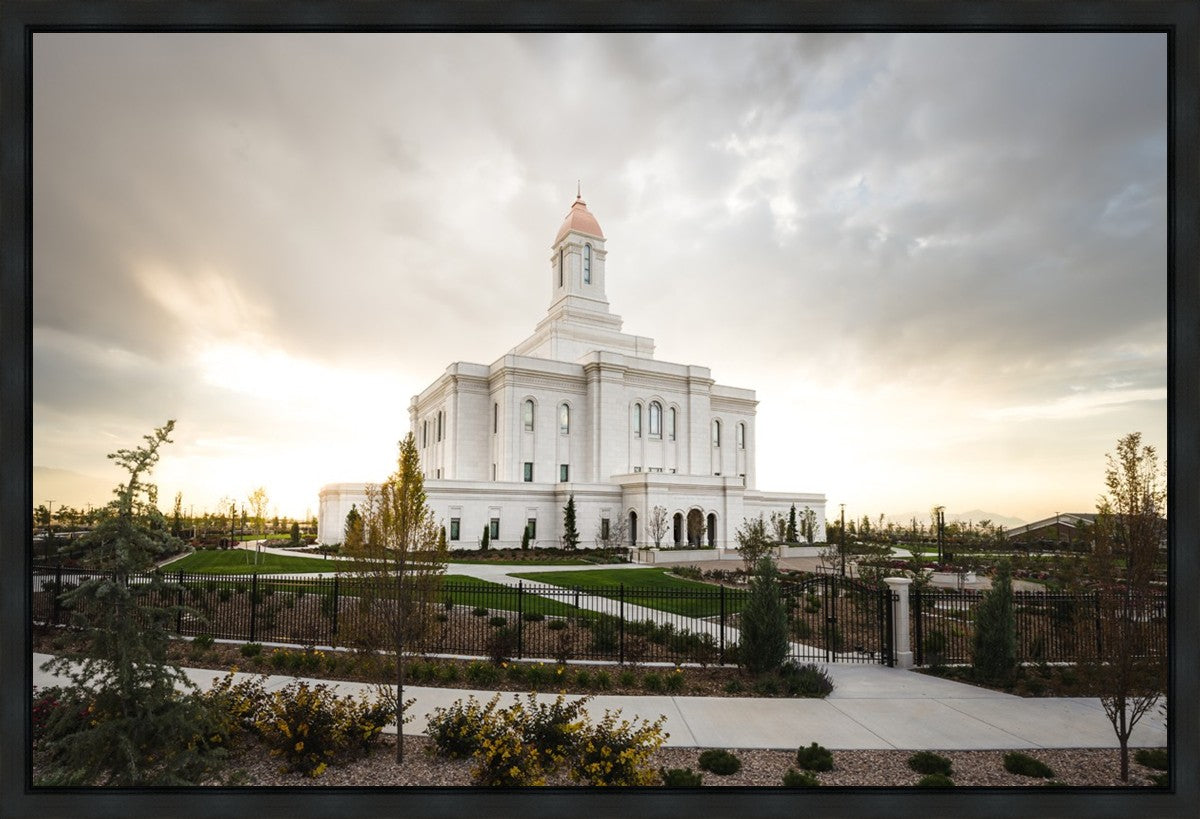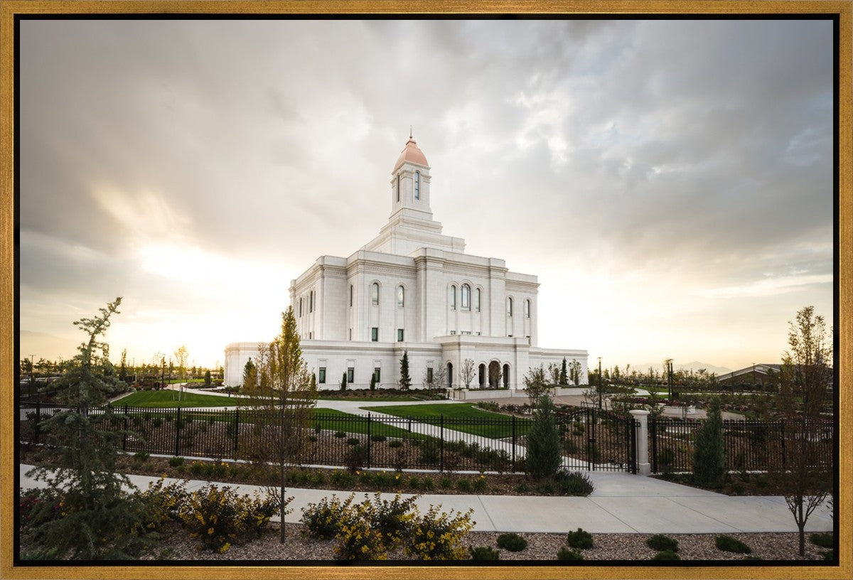 The sun came out for a few brief moments as the storm clouds were clearing right before sunset. The light of the sun cast a golden glow behind the Temple.