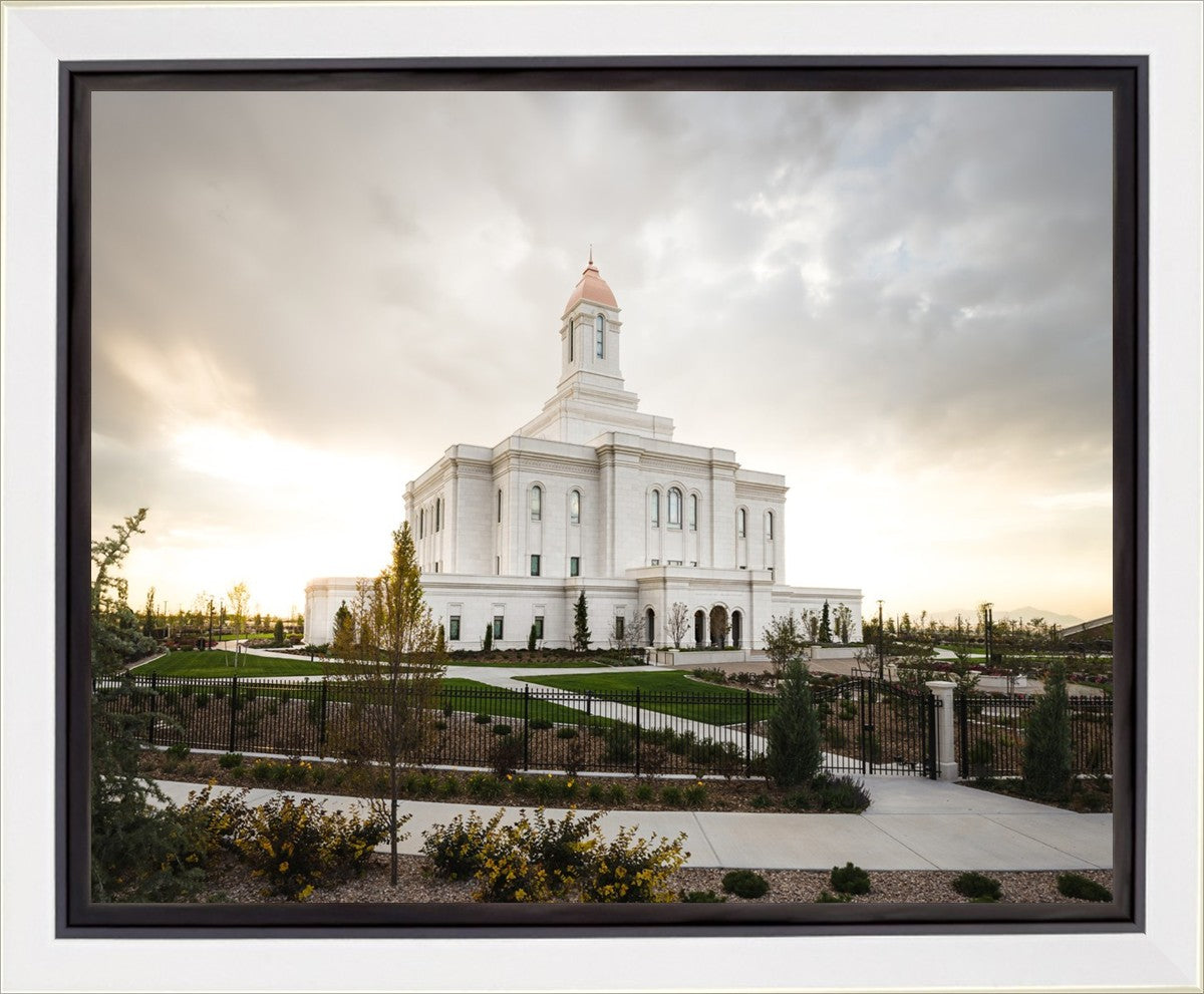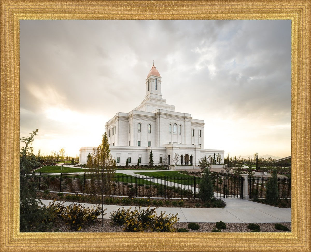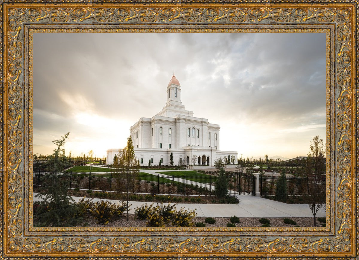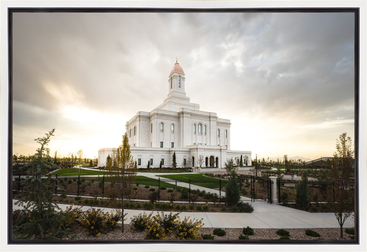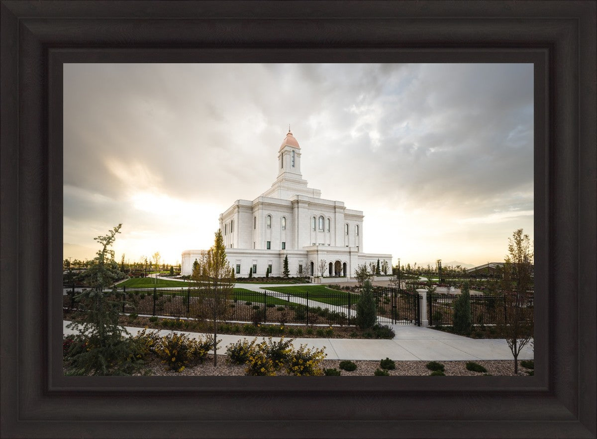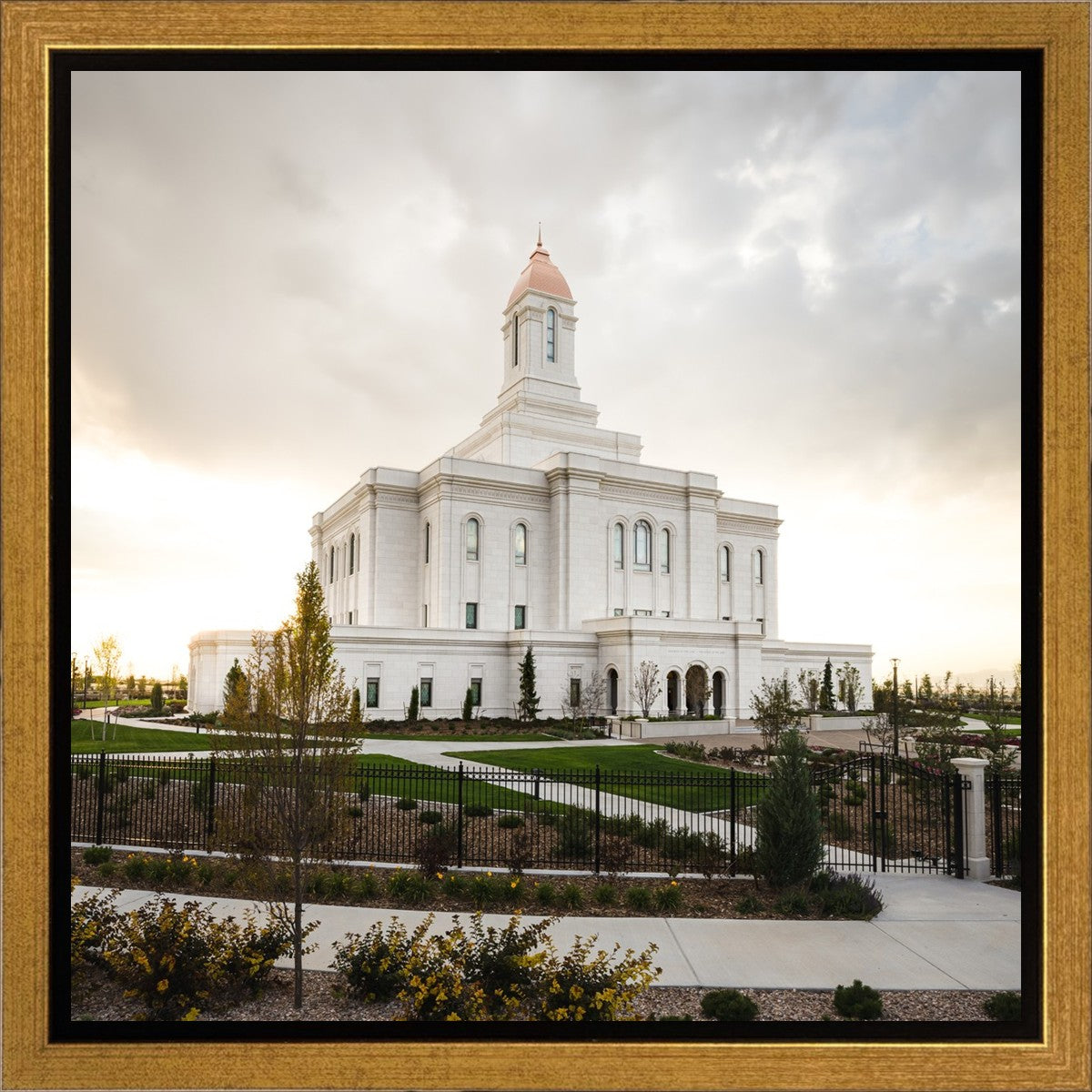 The sun came out for a few brief moments as the storm clouds were clearing right before sunset. The light of the sun cast a golden glow behind the Temple.