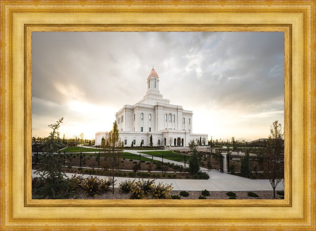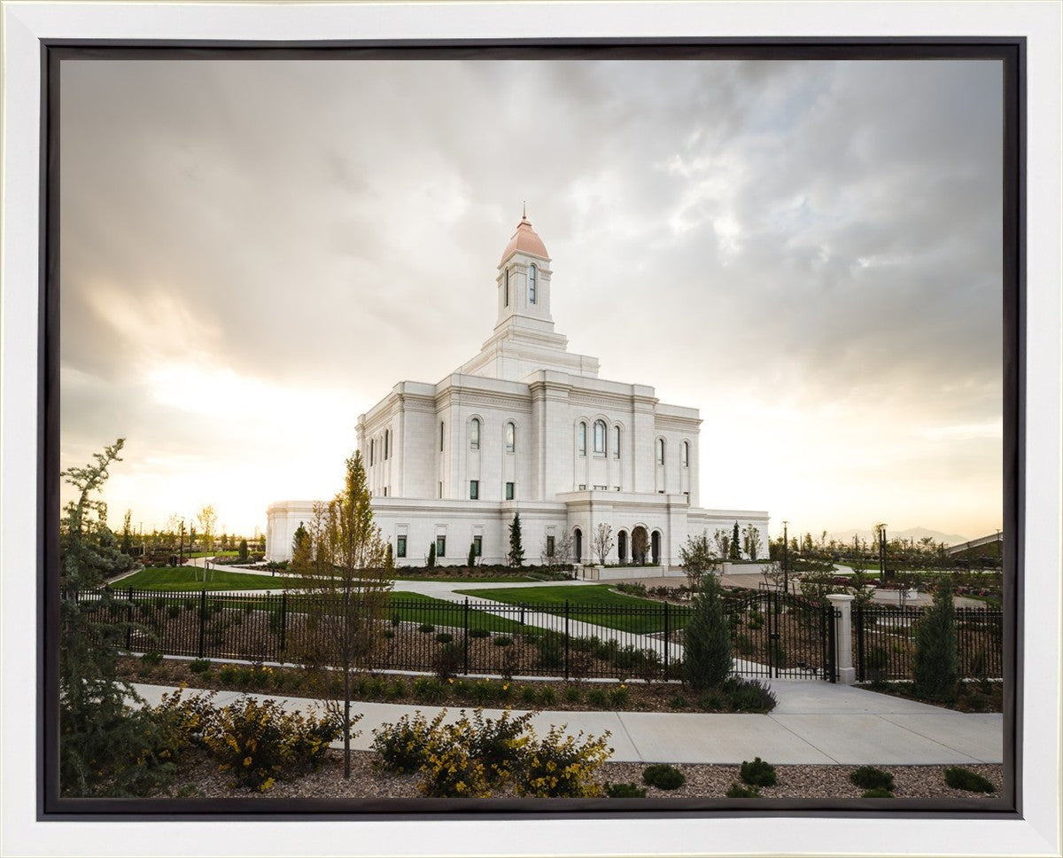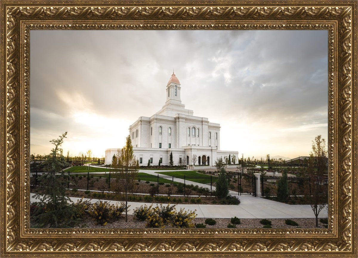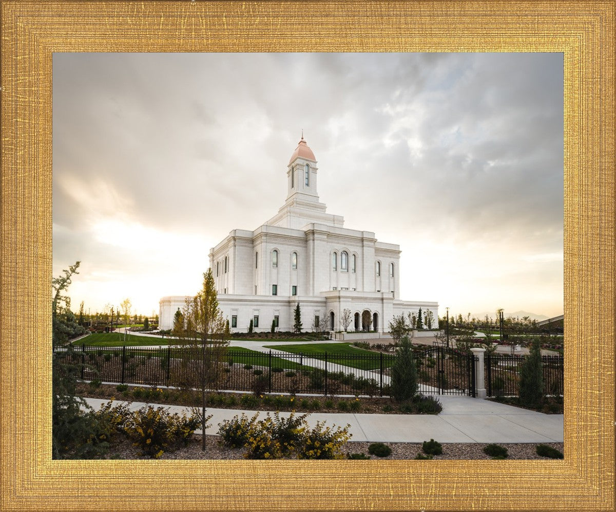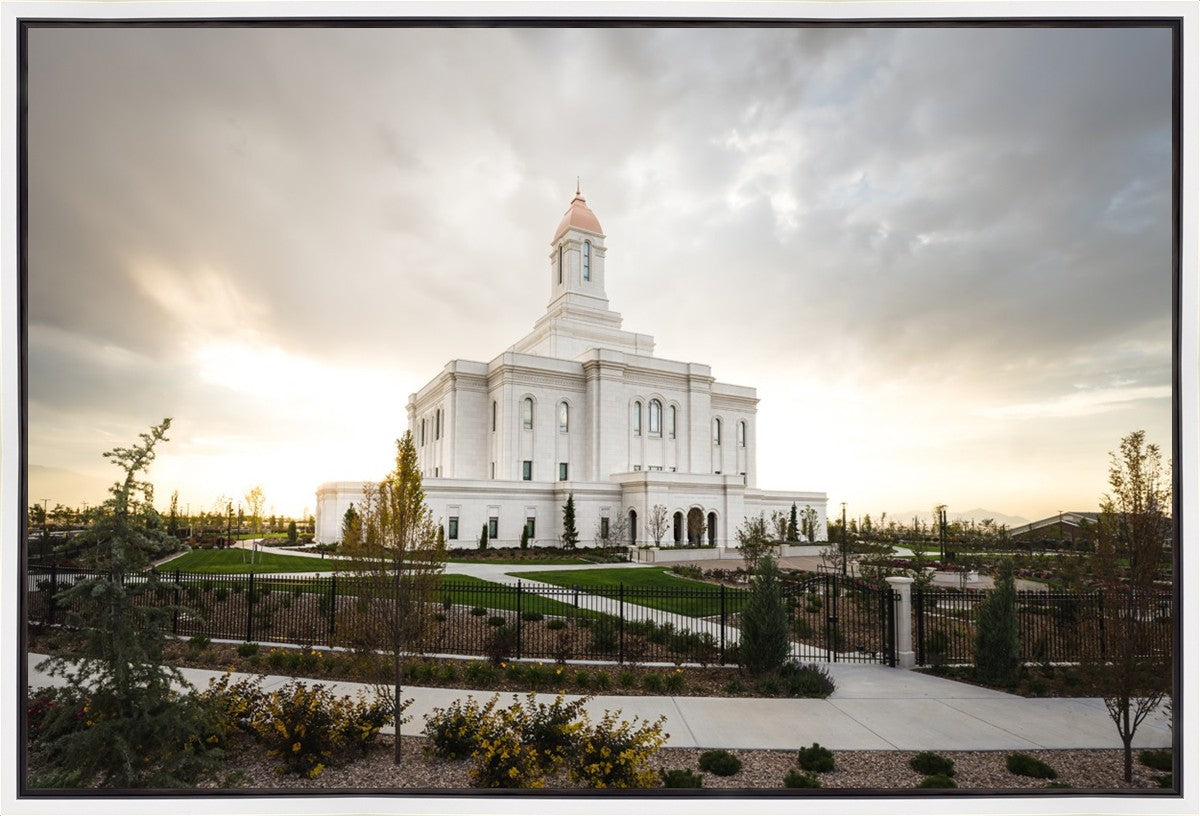 The sun came out for a few brief moments as the storm clouds were clearing right before sunset. The light of the sun cast a golden glow behind the Temple.