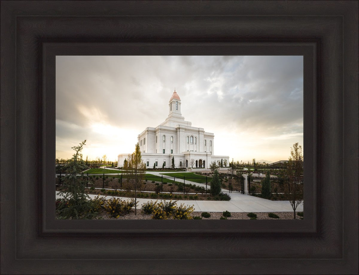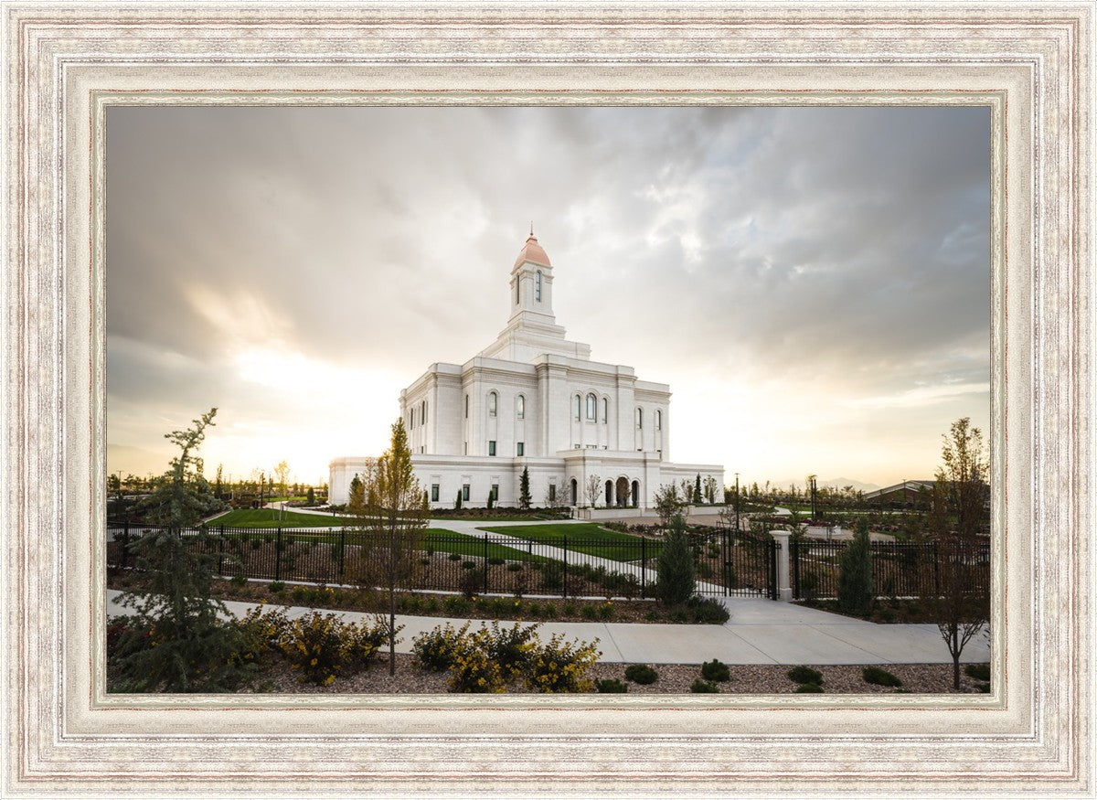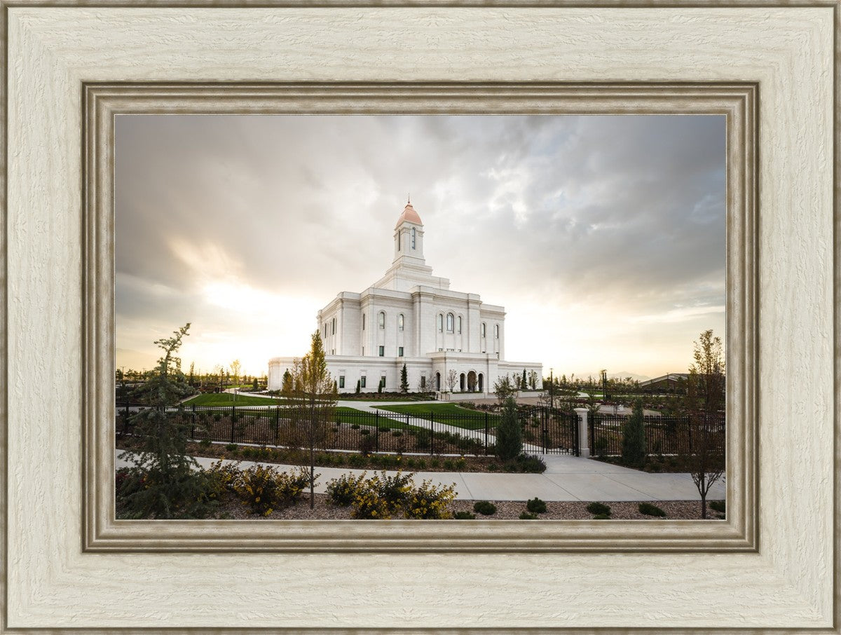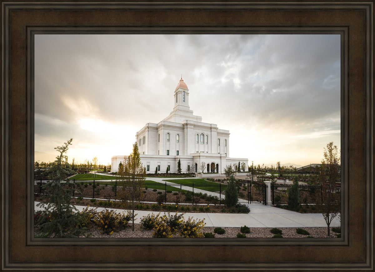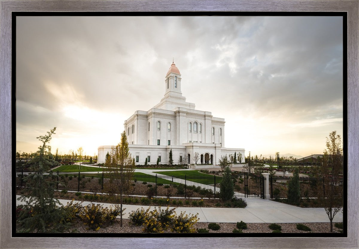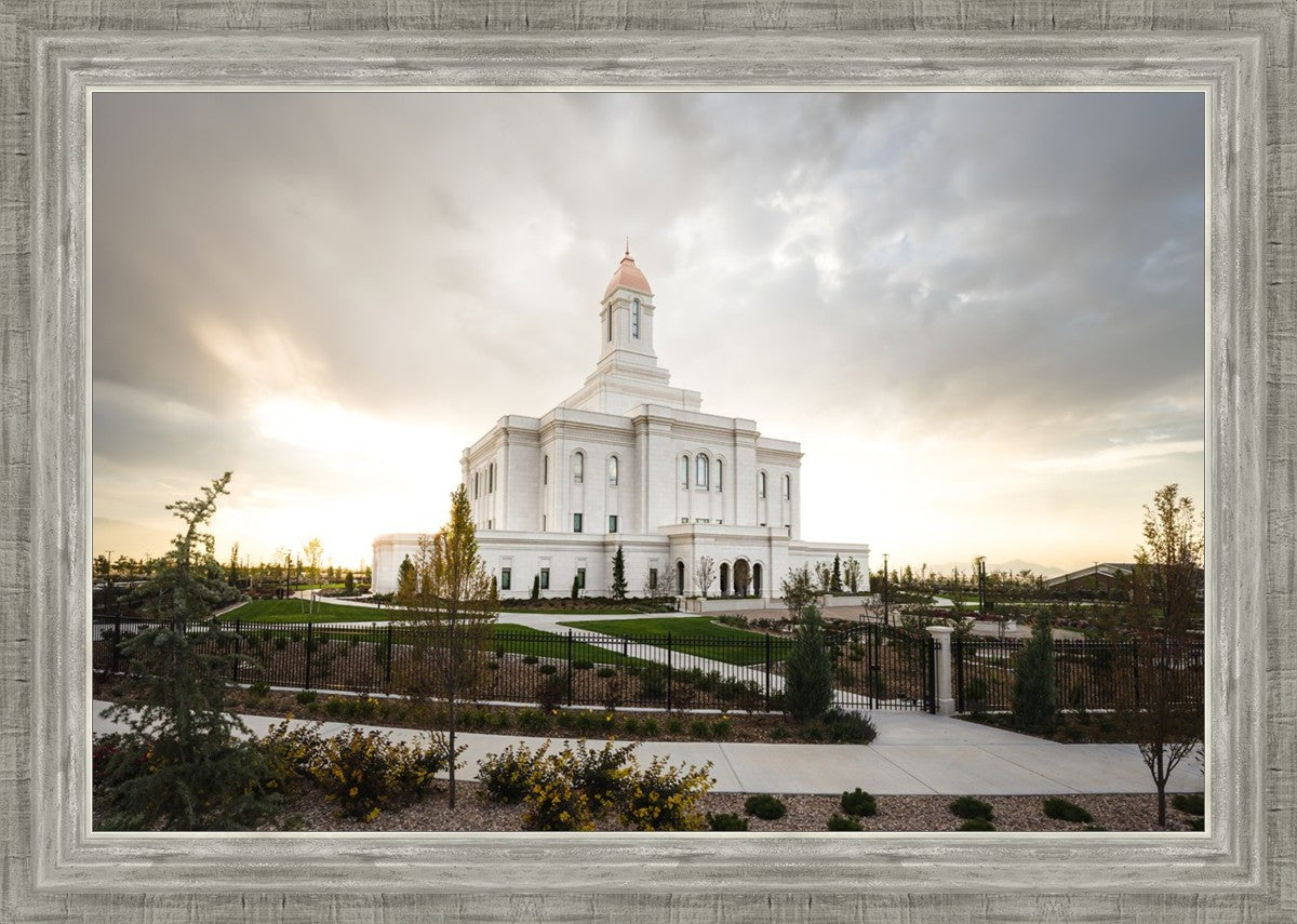 The sun came out for a few brief moments as the storm clouds were clearing right before sunset. The light of the sun cast a golden glow behind the Temple.