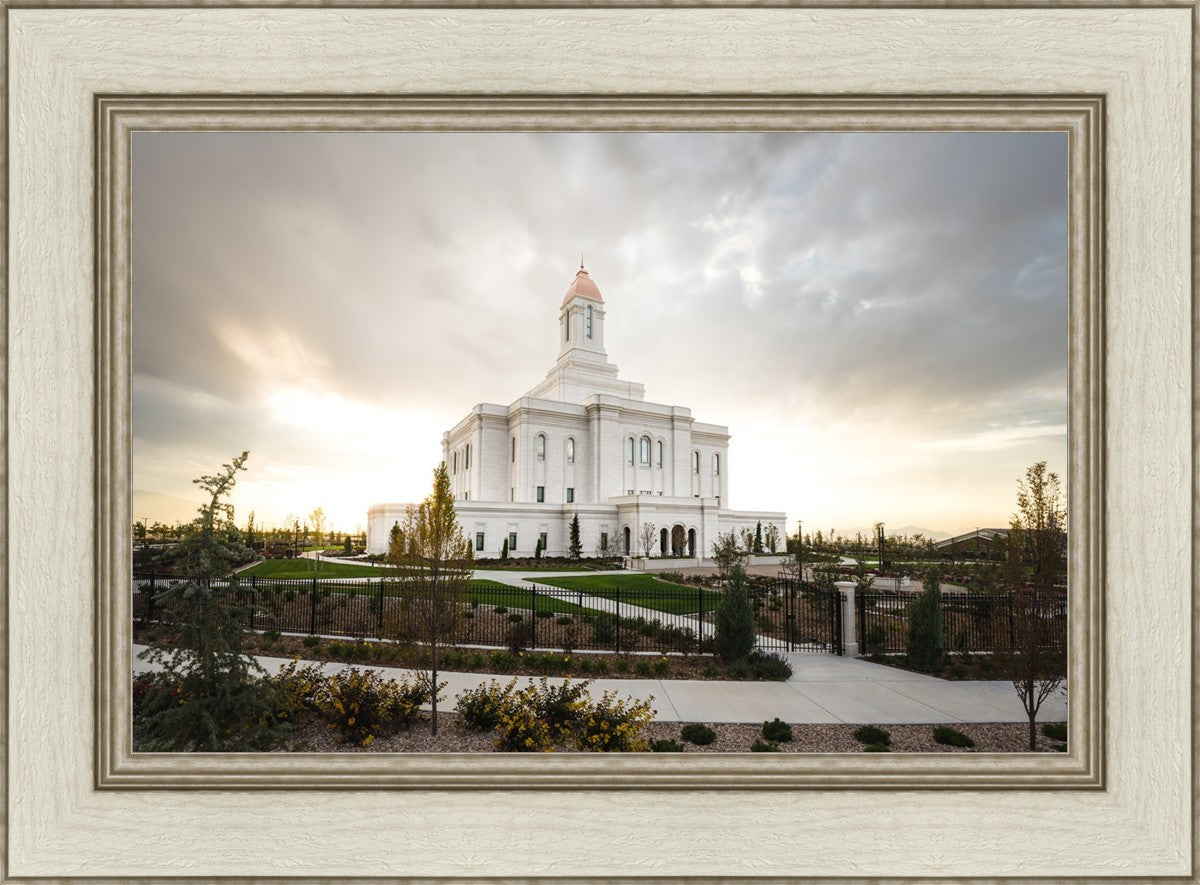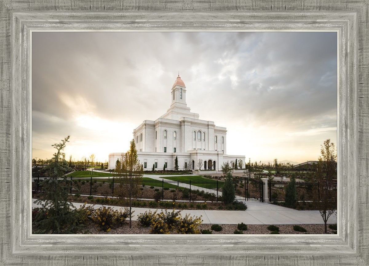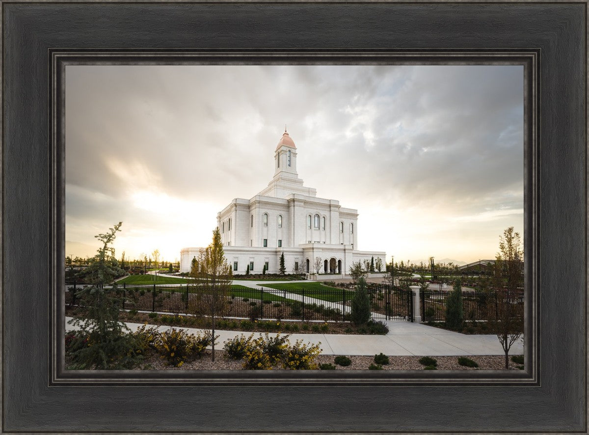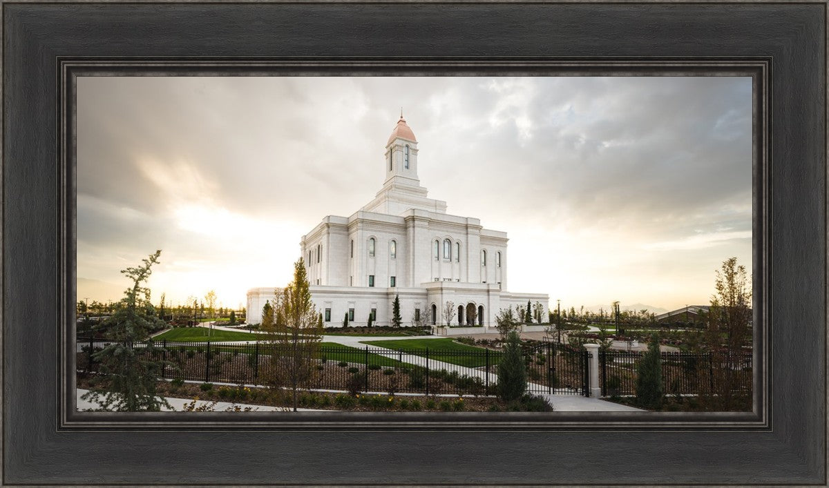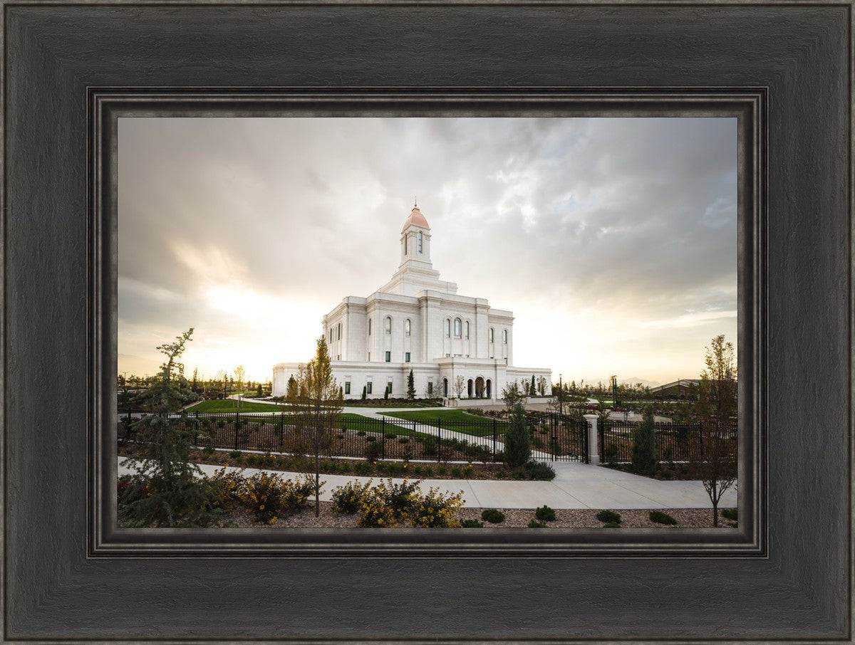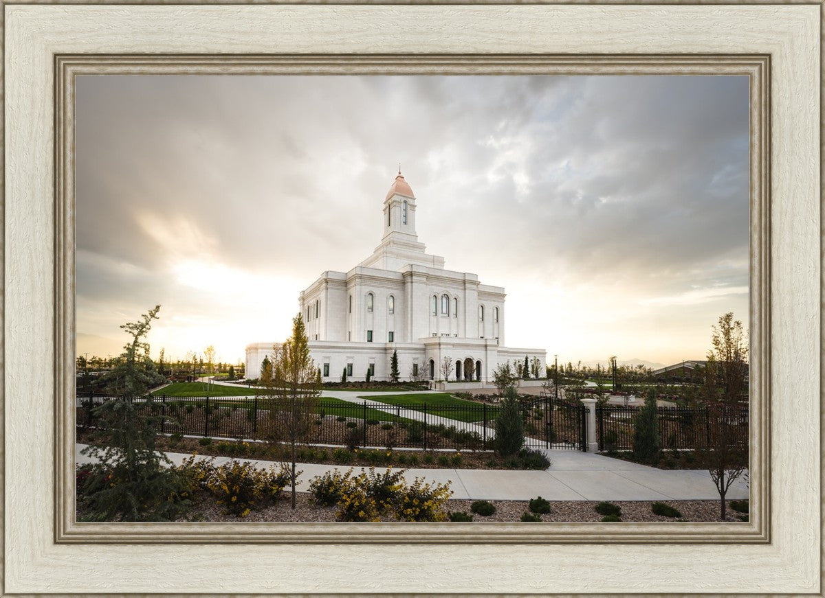 The sun came out for a few brief moments as the storm clouds were clearing right before sunset. The light of the sun cast a golden glow behind the Temple.