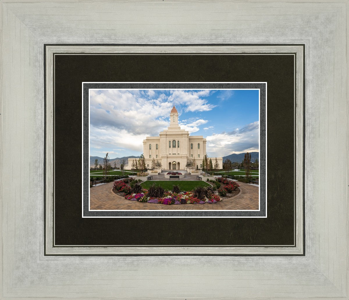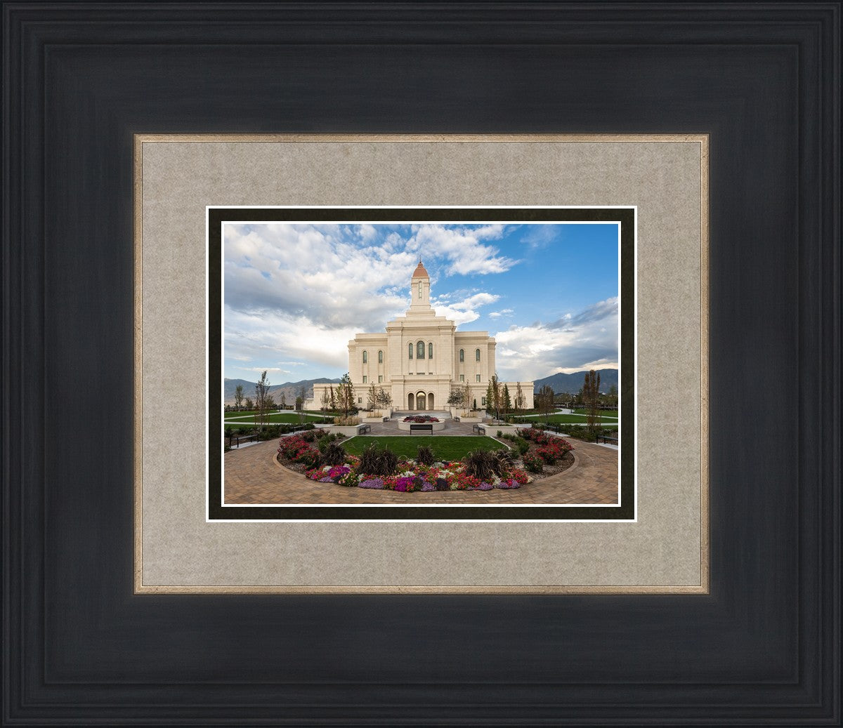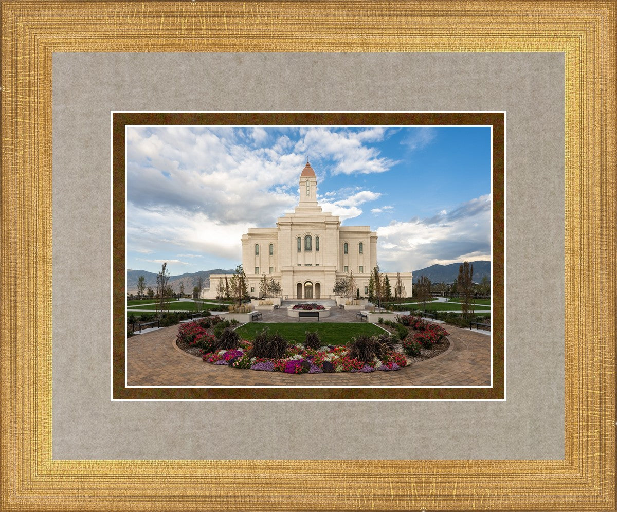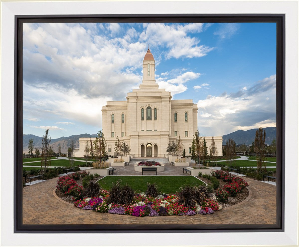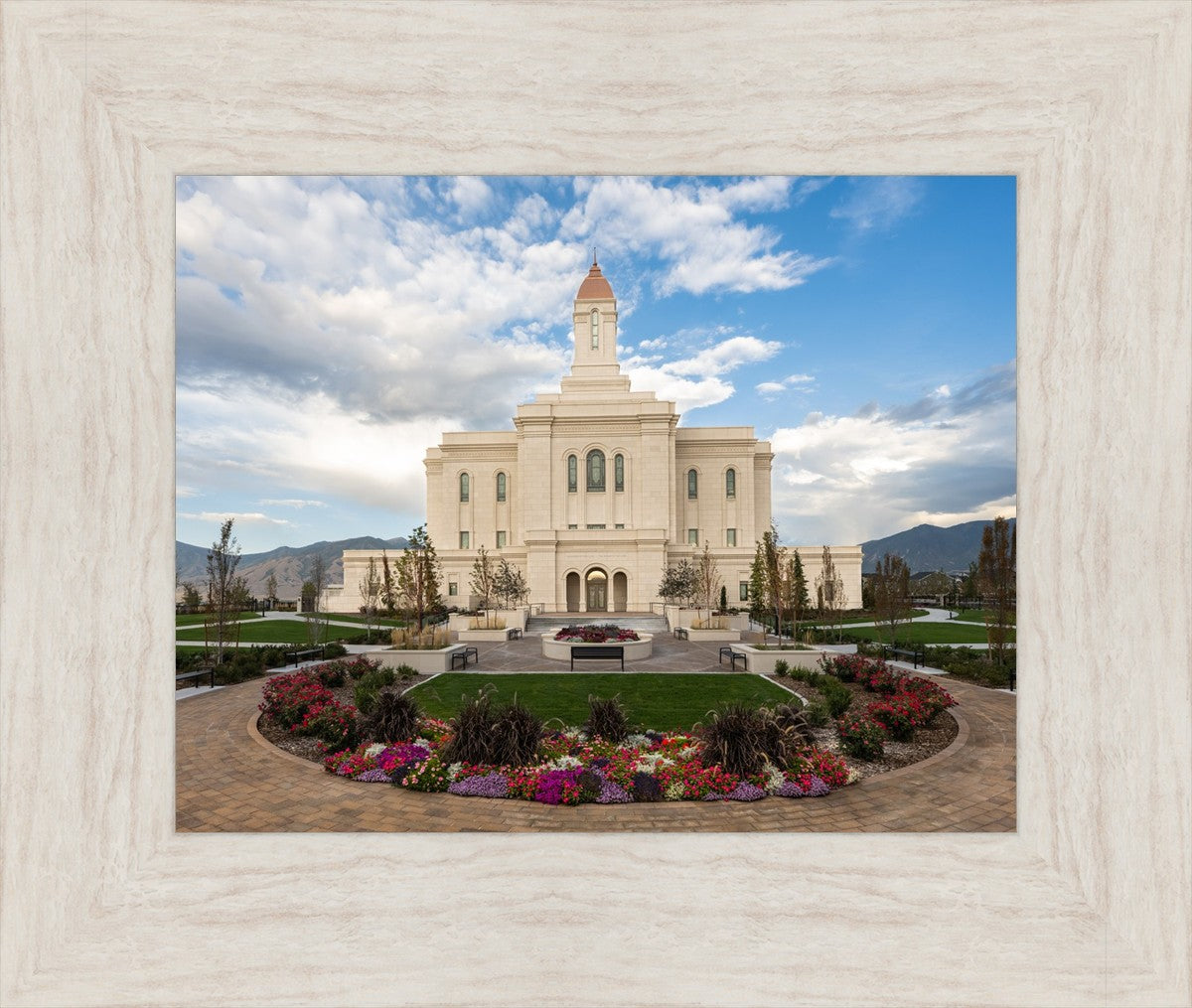 As the Deseret Peak Temple was nearing the opening of the open house, I was able to capture this image of the summer flowers in full bloom on a peaceful partly cloudy evening.