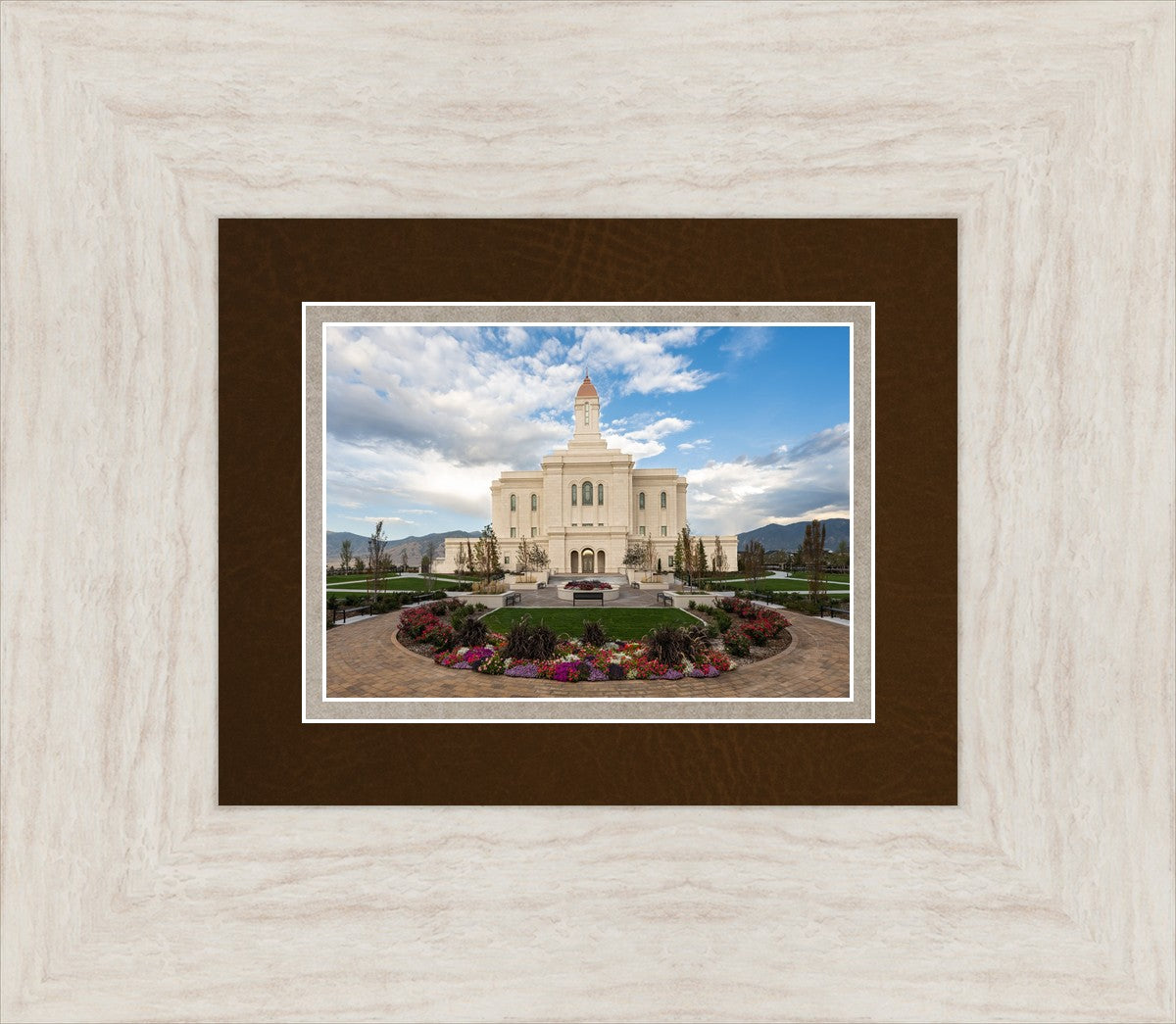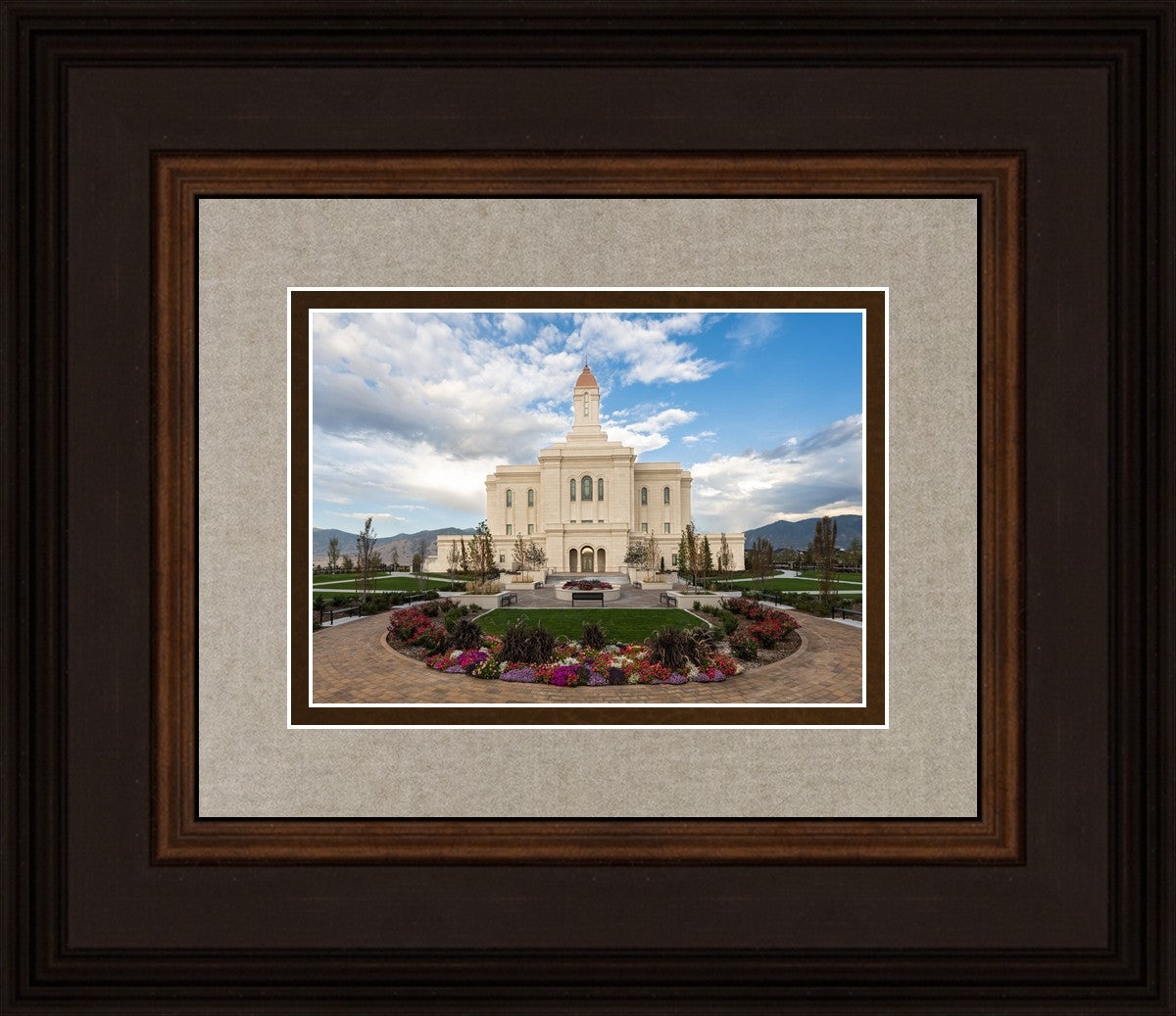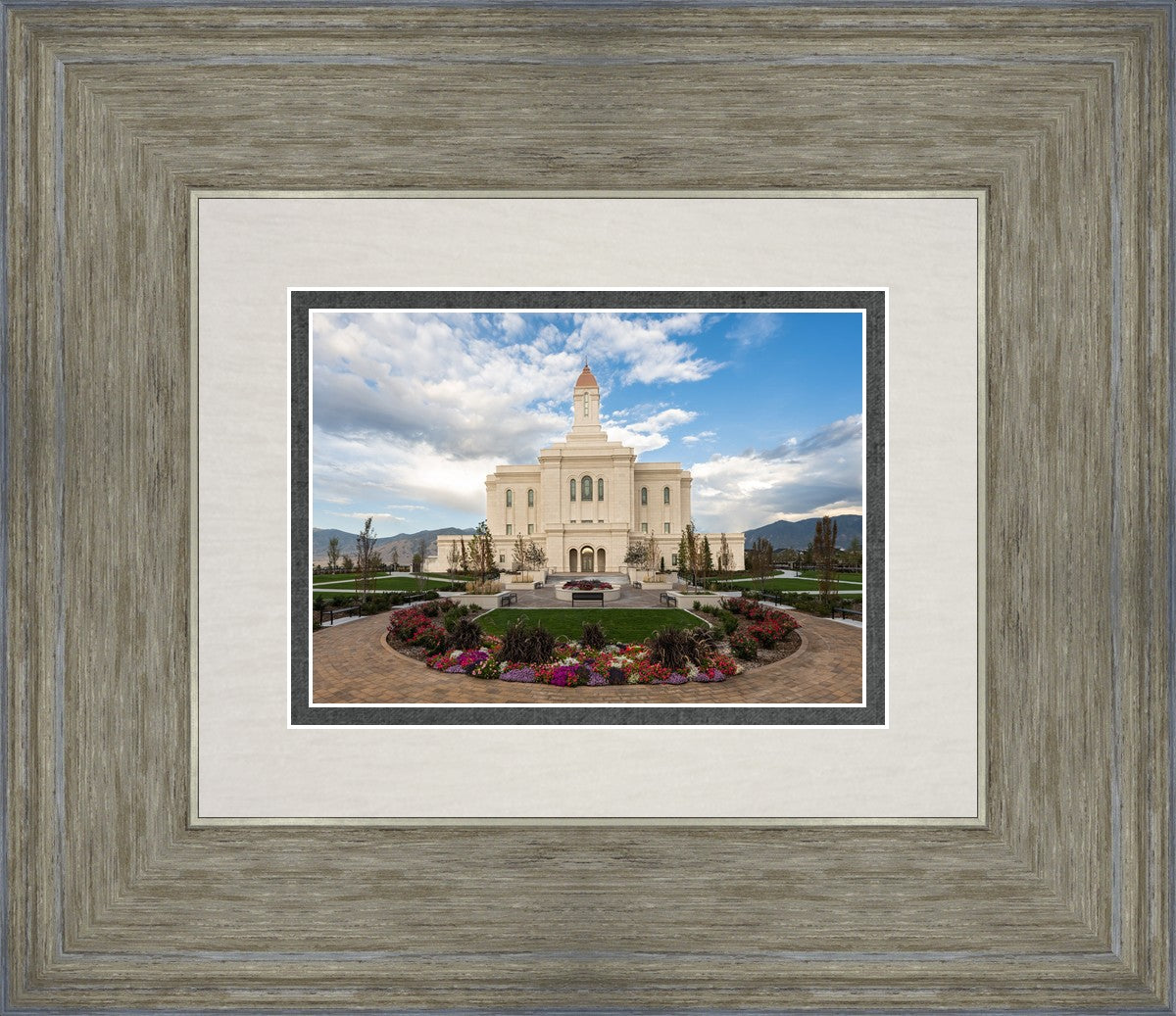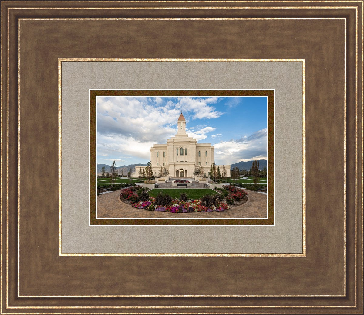 As the Deseret Peak Temple was nearing the opening of the open house, I was able to capture this image of the summer flowers in full bloom on a peaceful partly cloudy evening.