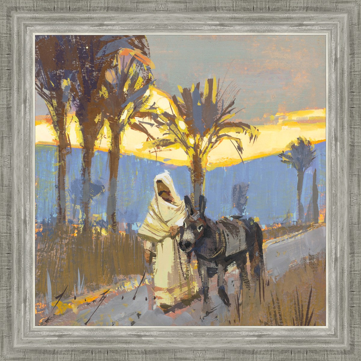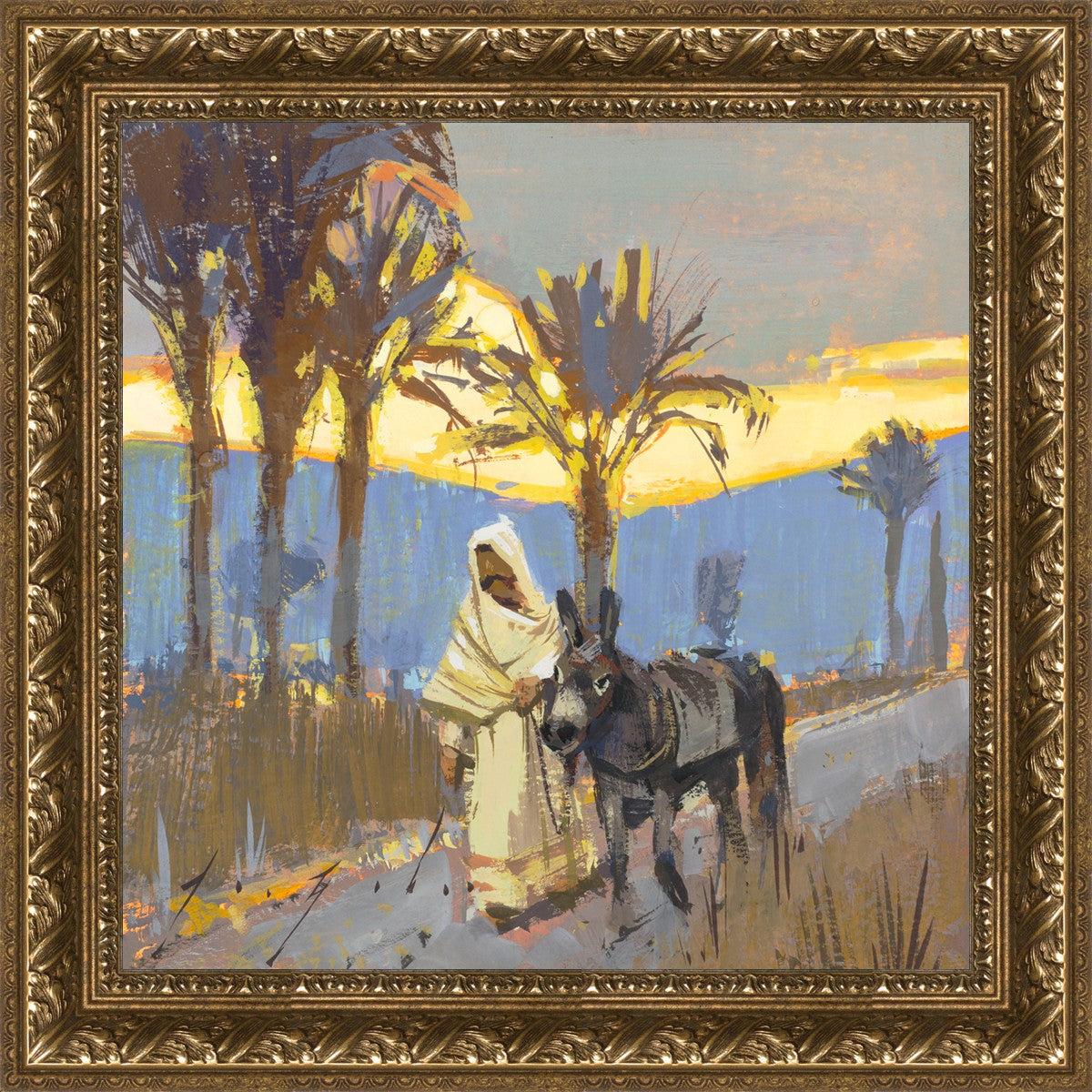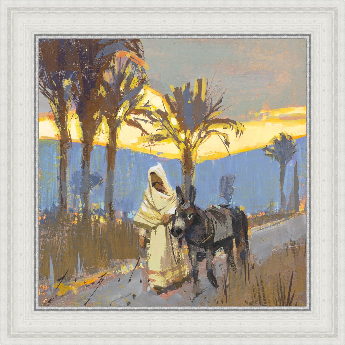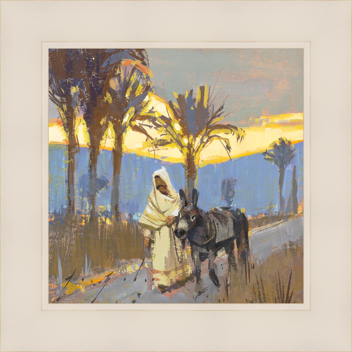 The story of the middle-eastern man selling a donkey is a bit more open ended as far as what is trying to be portrayed. Is this the donkey that was purchased for Christ to ride on as his triumphal entrance on Palm Sunday or is it the donkey and will carry Mary, the mother of Christ, on their arduous journey to Jerusalem? The viewer can decide.