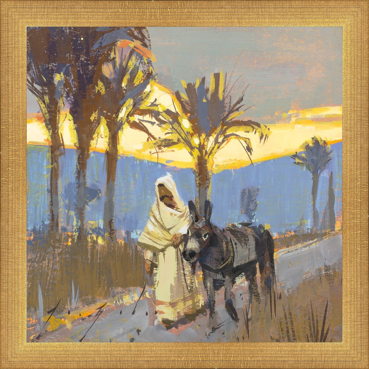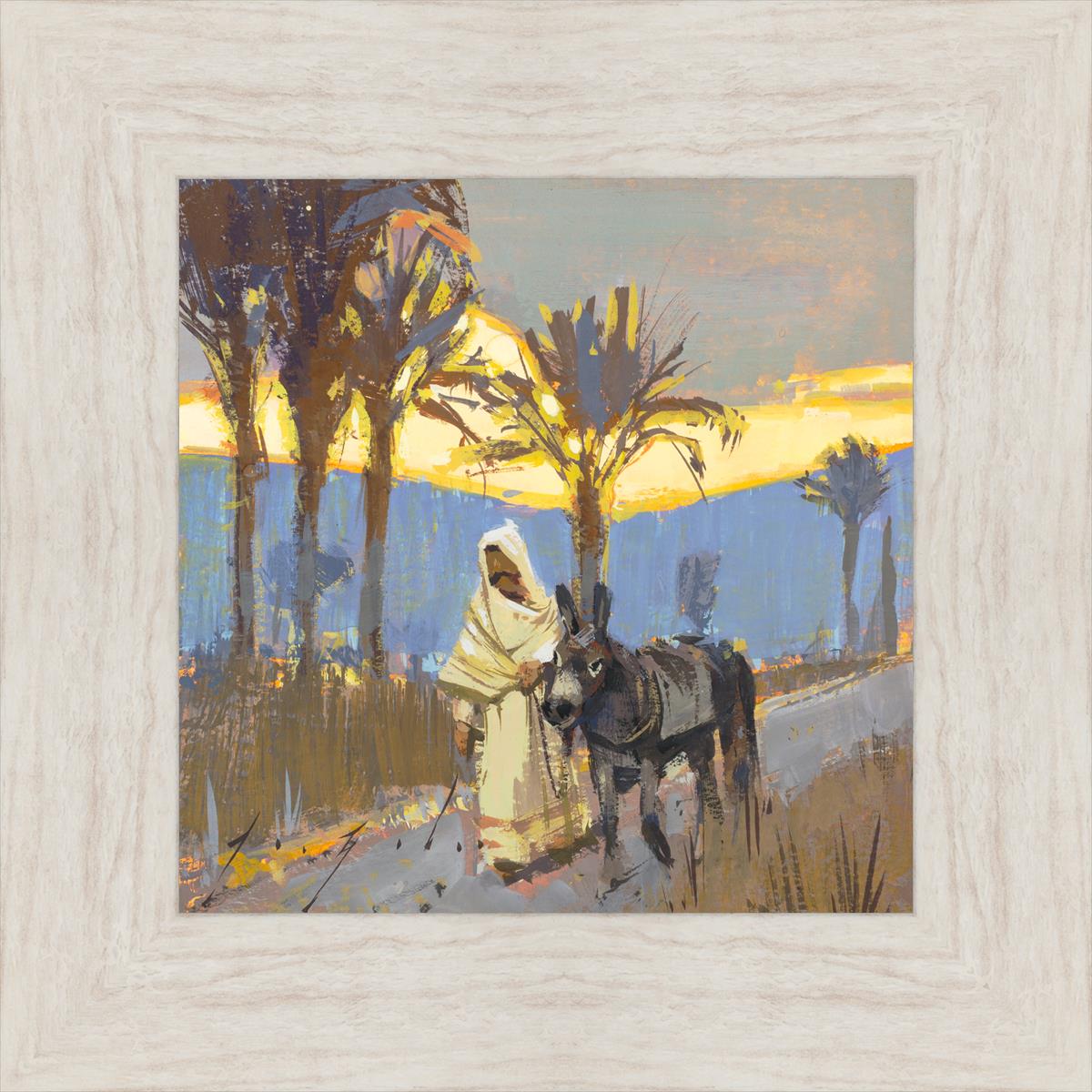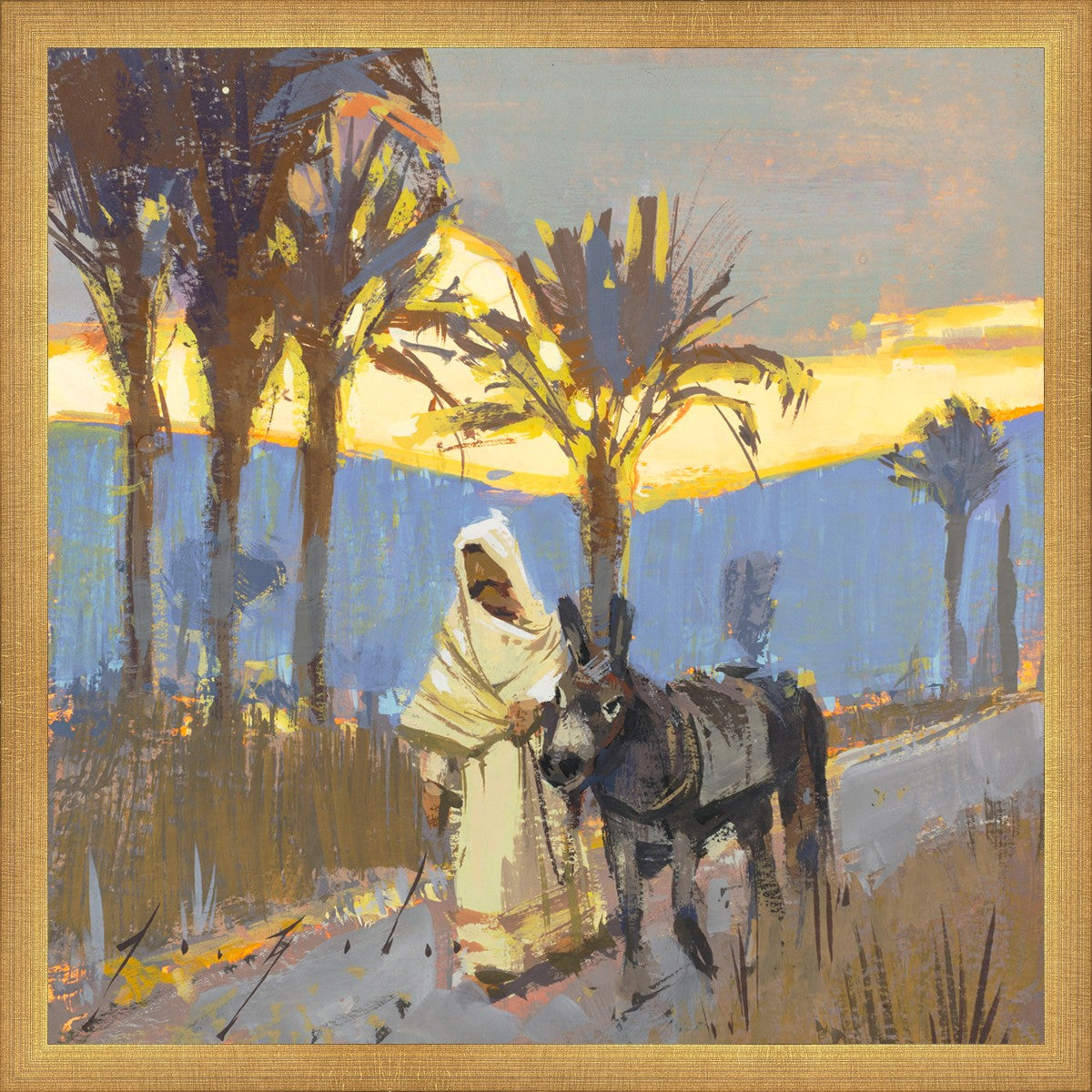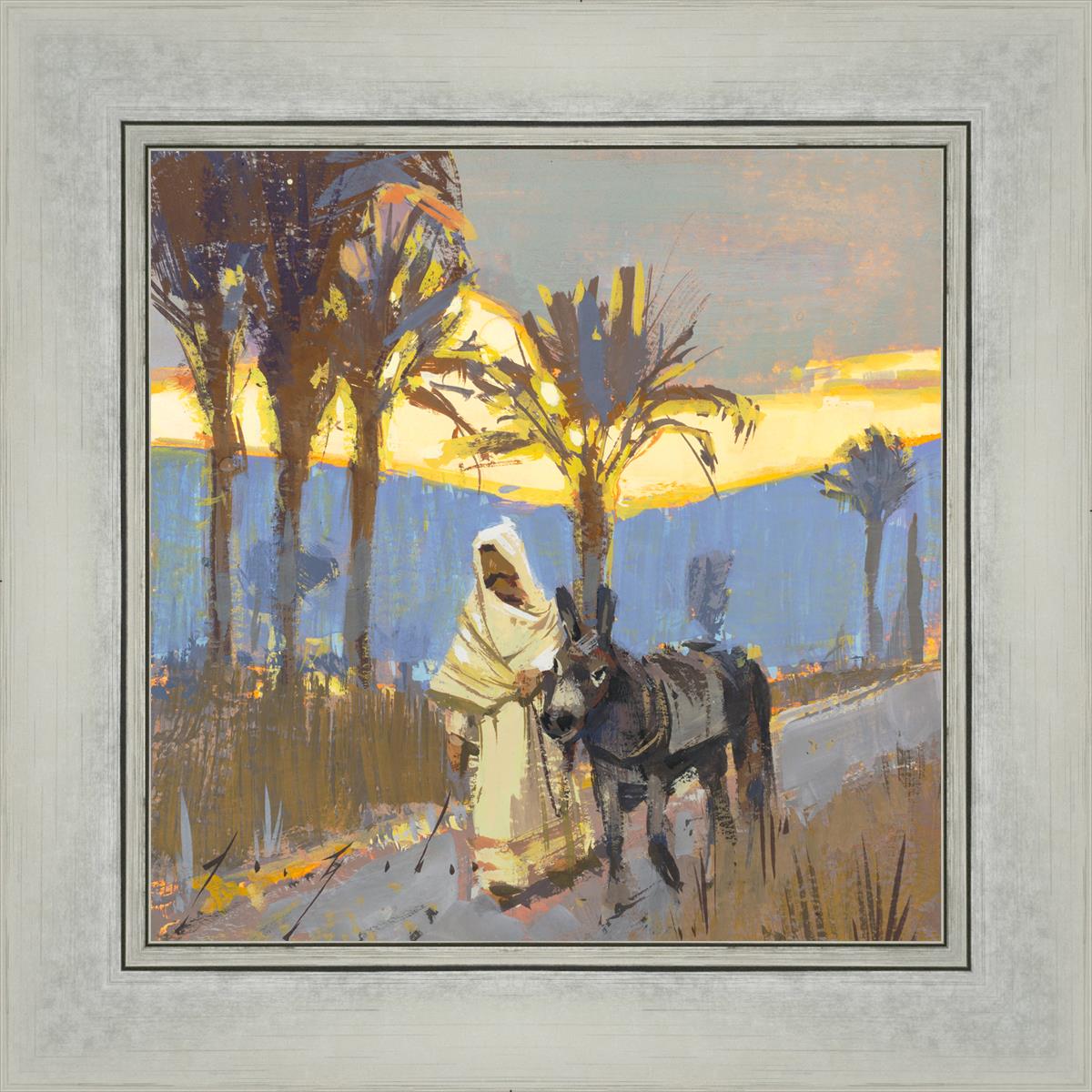 The story of the middle-eastern man selling a donkey is a bit more open ended as far as what is trying to be portrayed. Is this the donkey that was purchased for Christ to ride on as his triumphal entrance on Palm Sunday or is it the donkey and will carry Mary, the mother of Christ, on their arduous journey to Jerusalem? The viewer can decide.