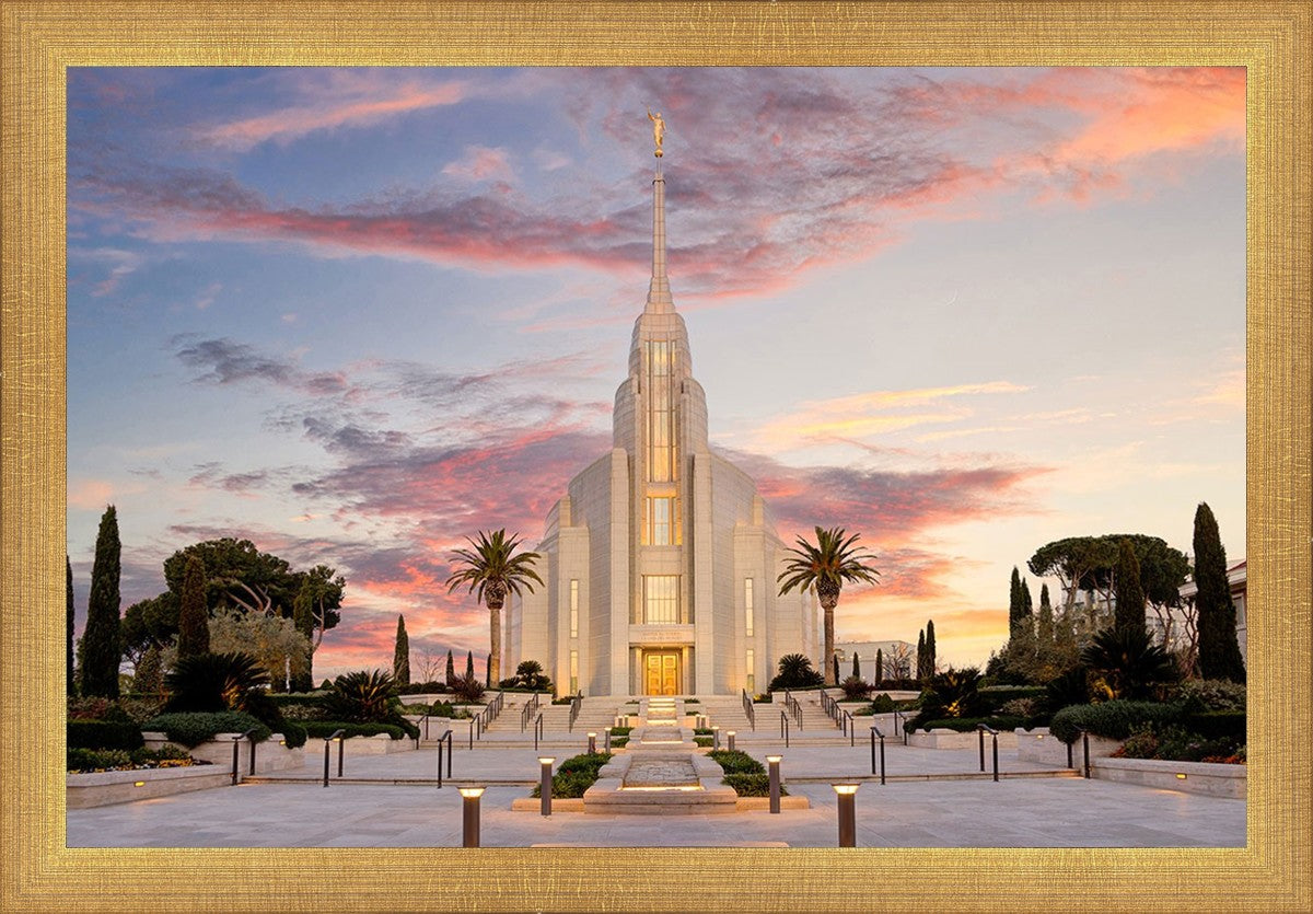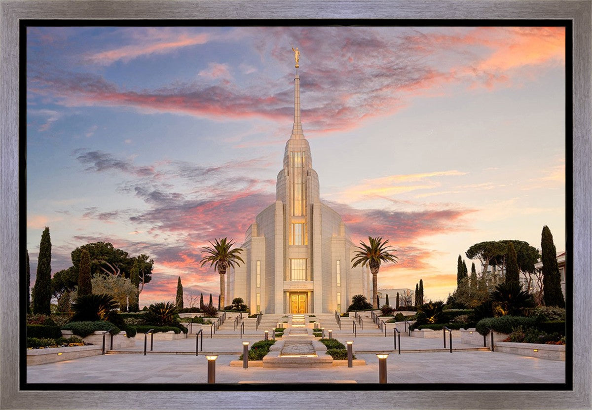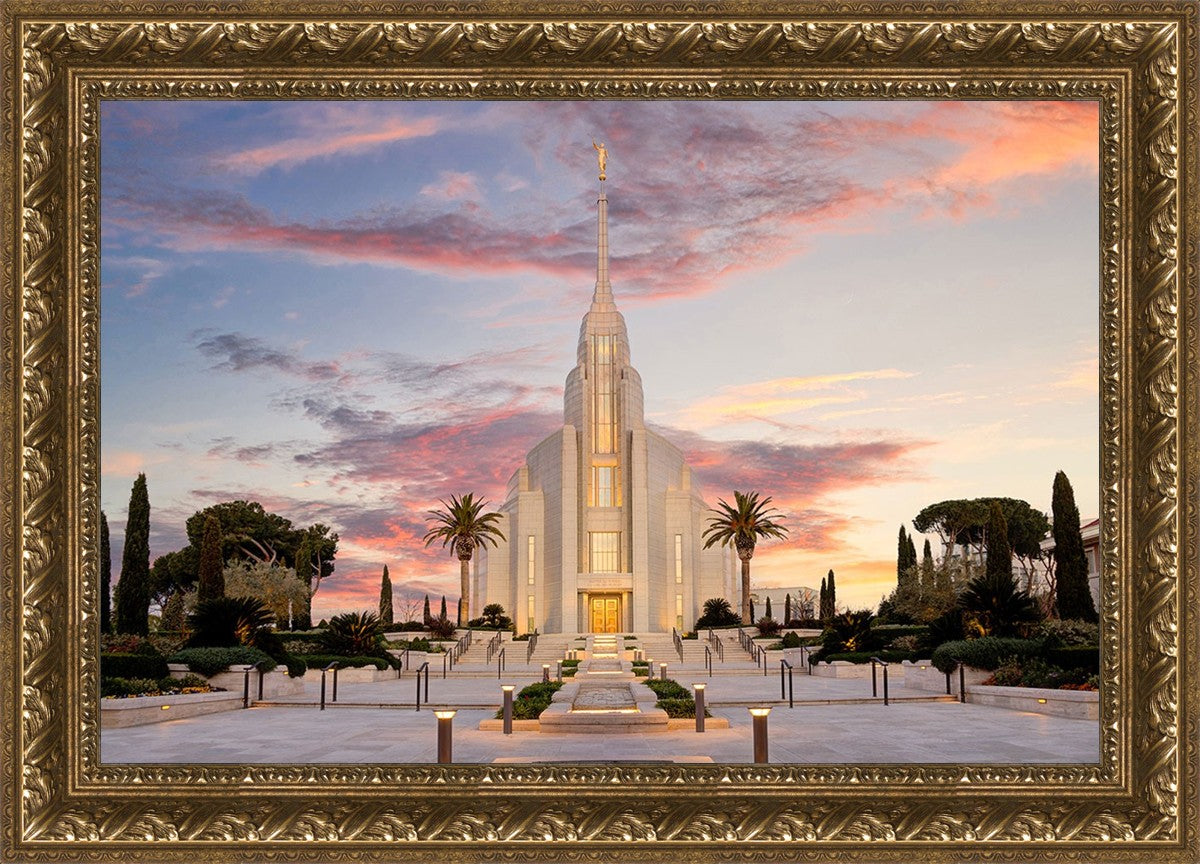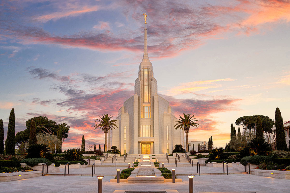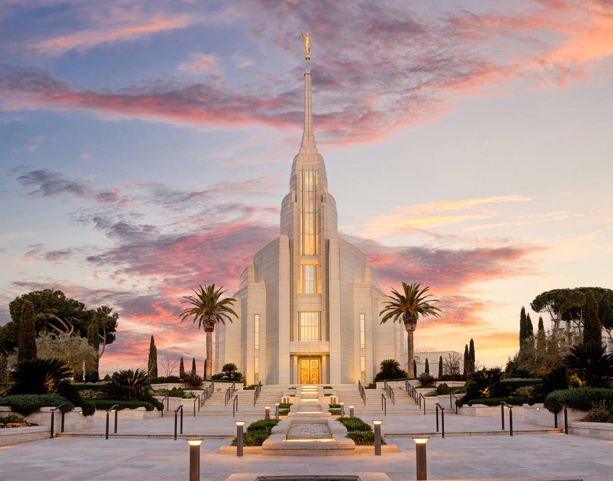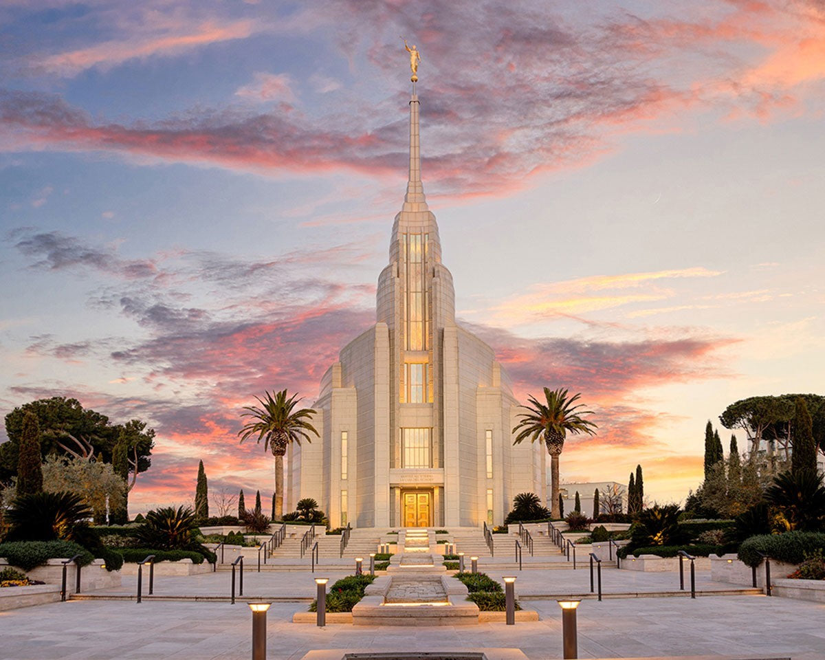 A panormaic view of the new Rome Italy temple taken between the temple and the visitor's center