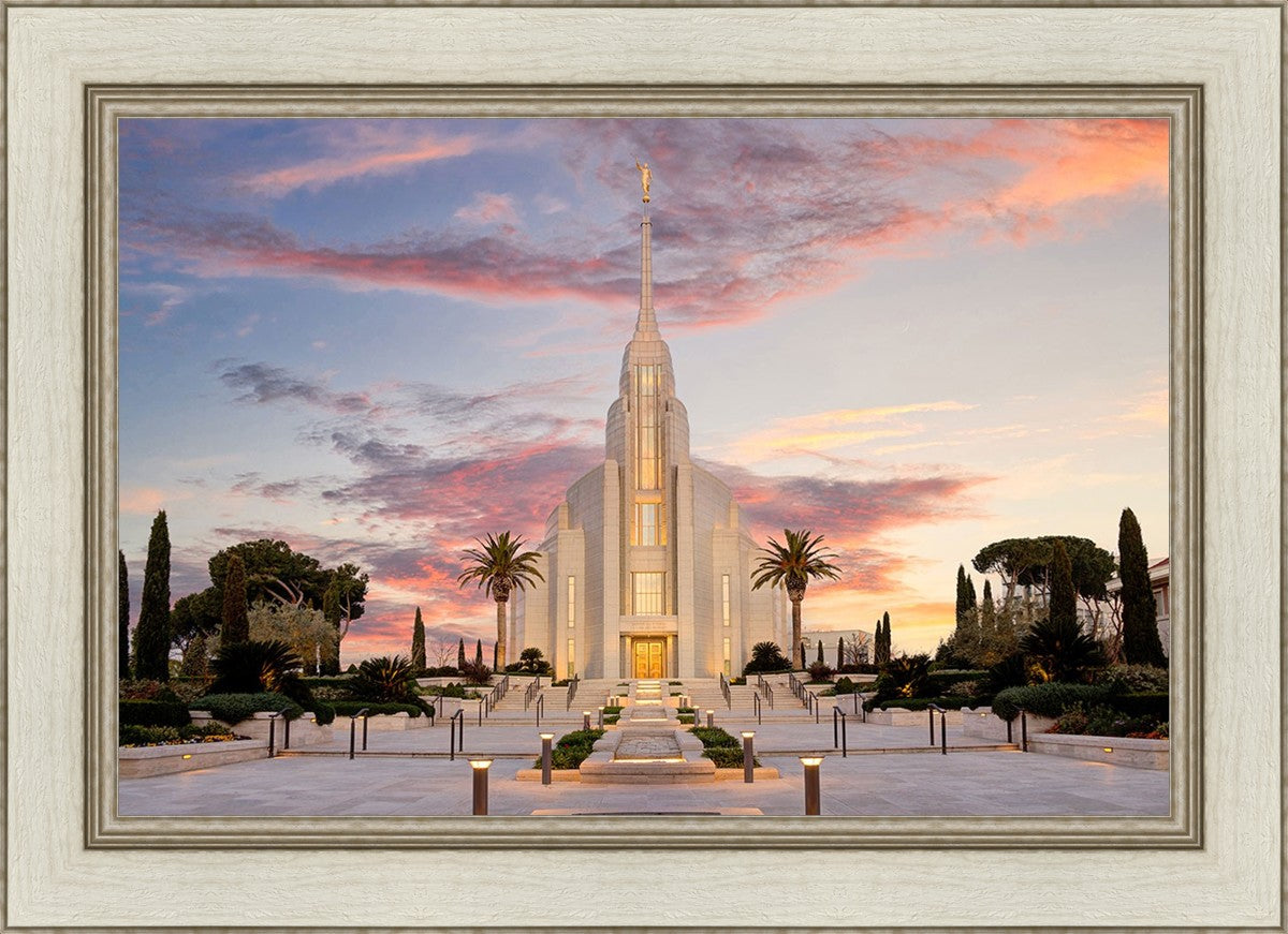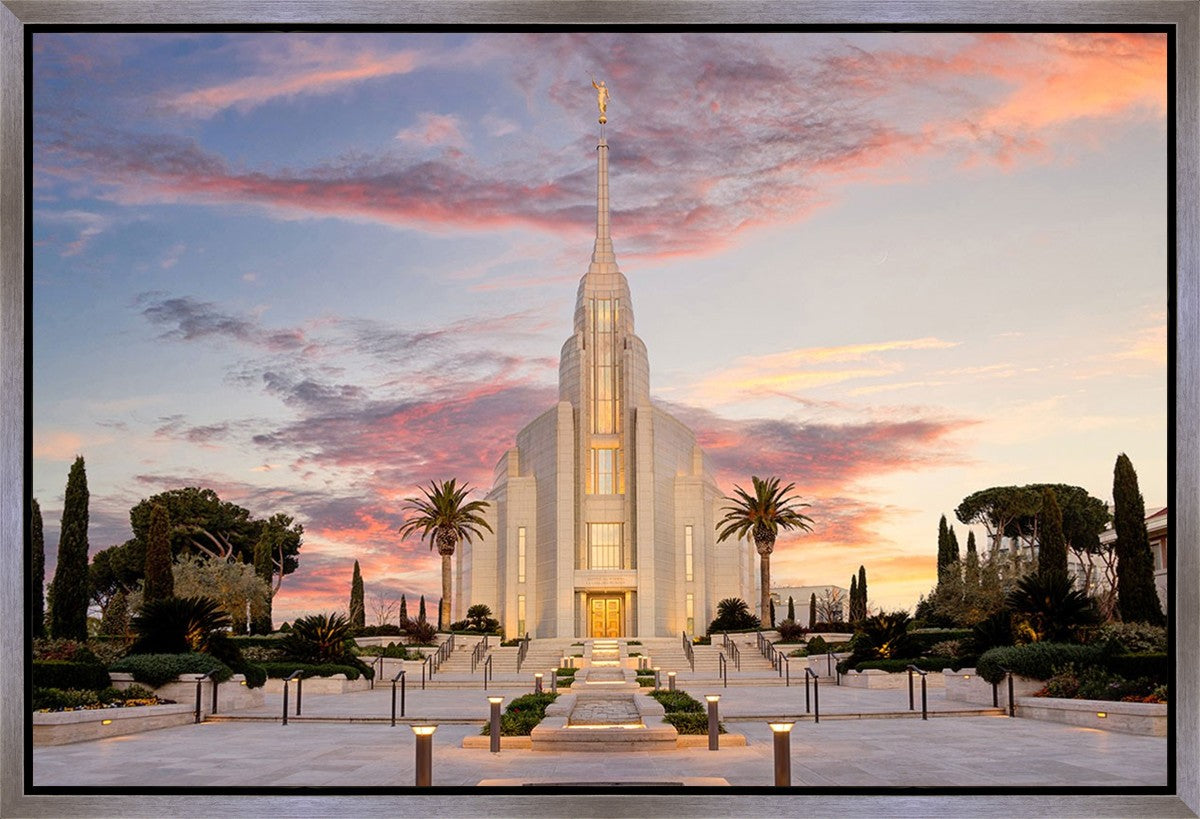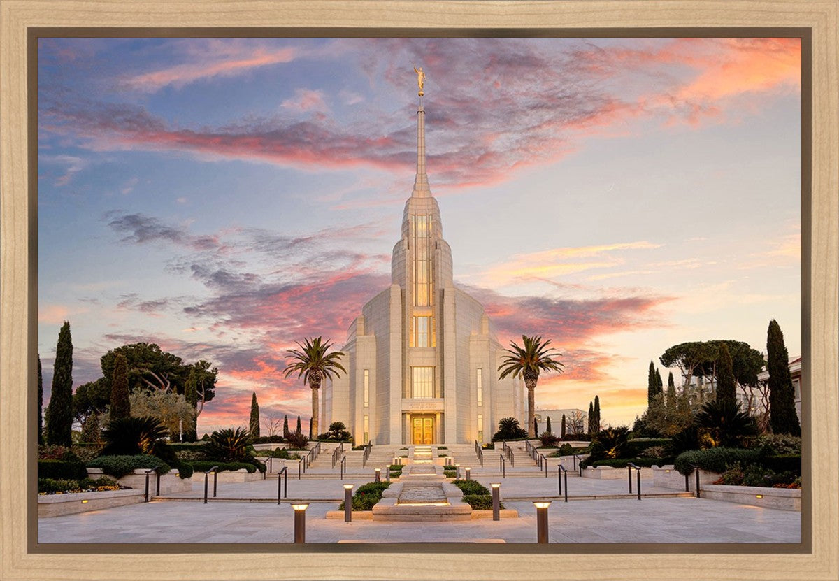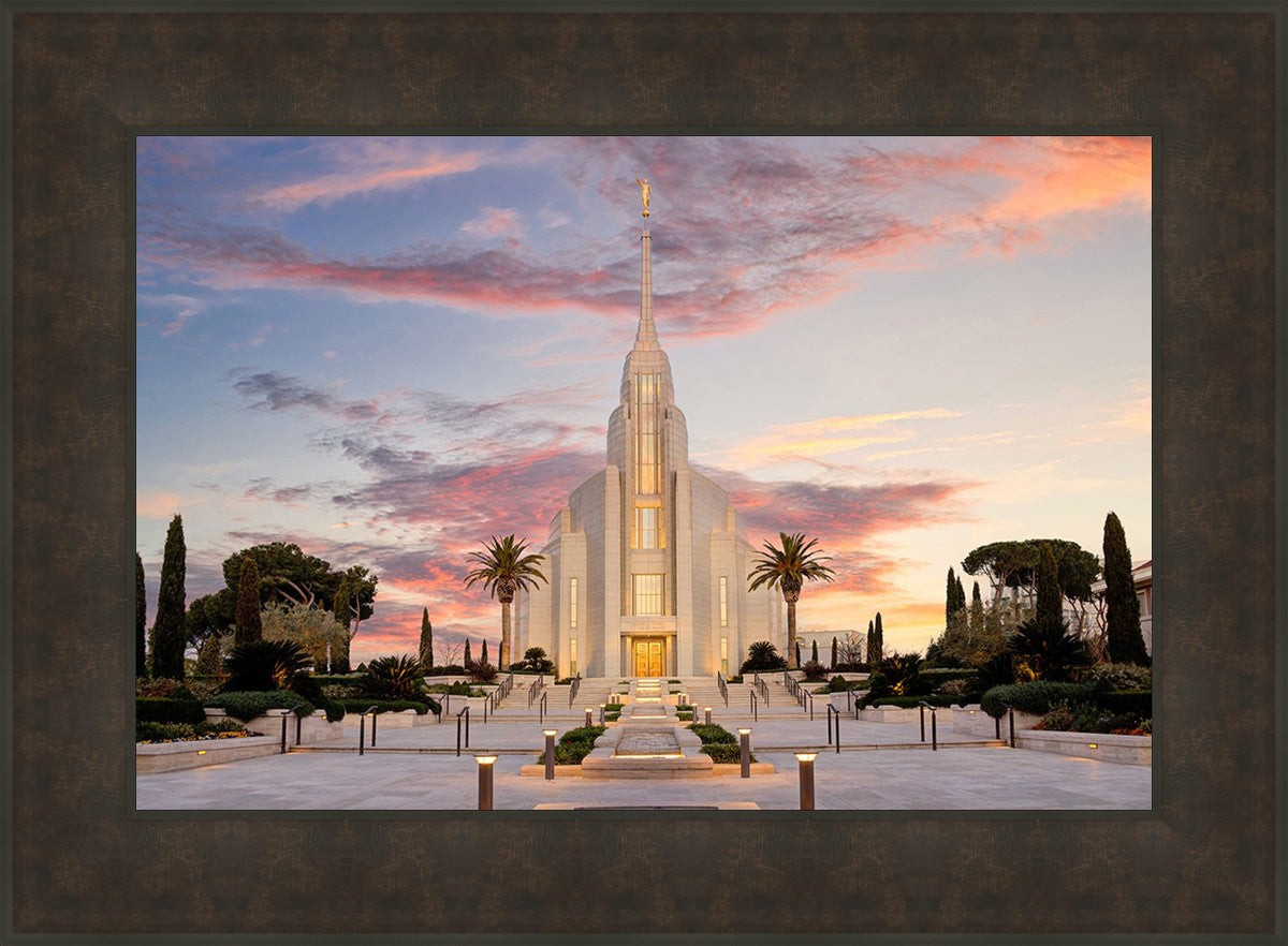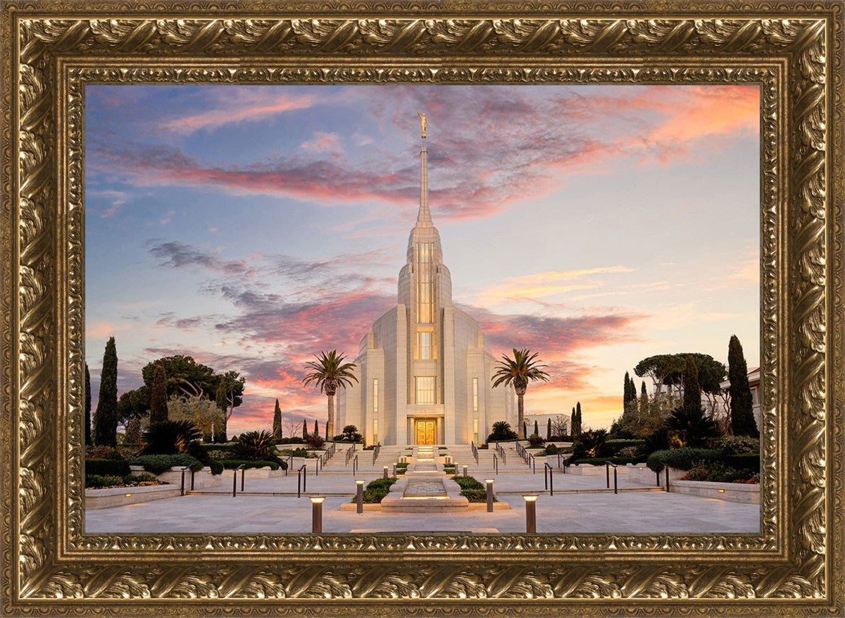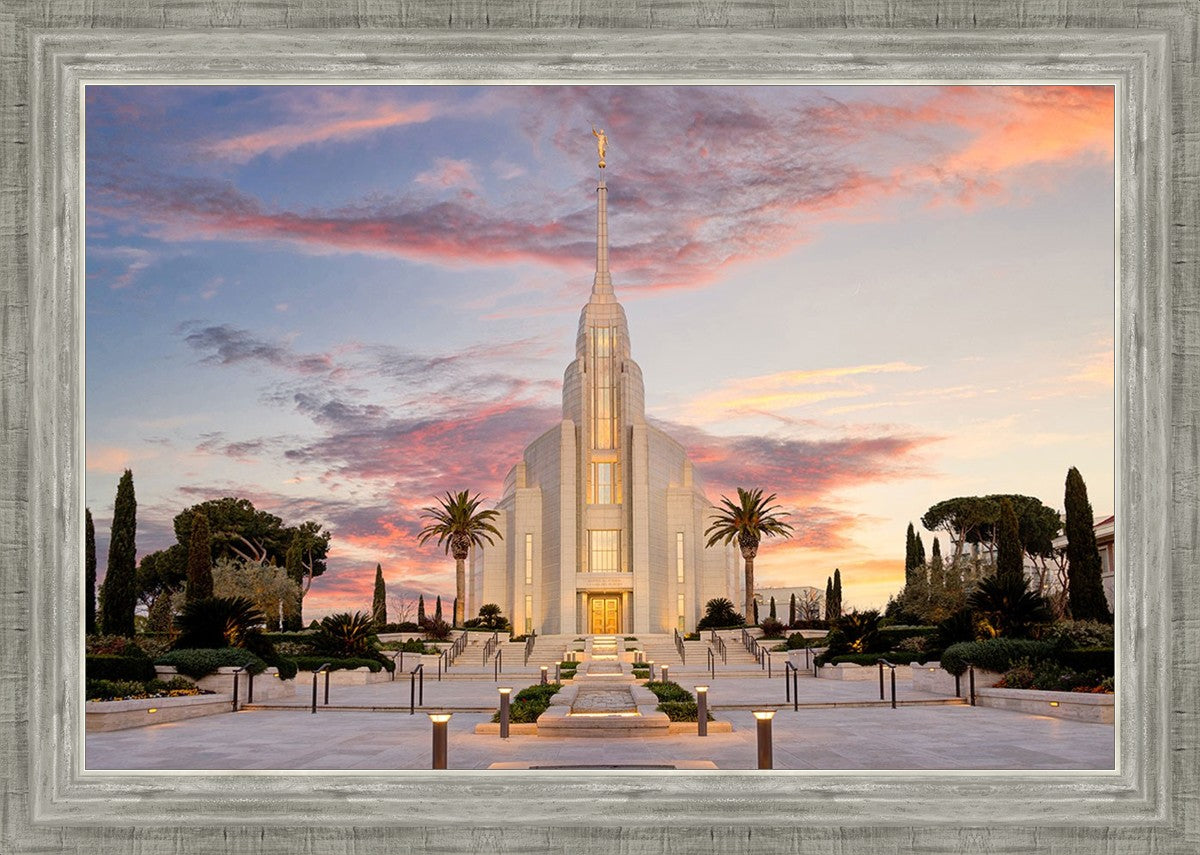 A panormaic view of the new Rome Italy temple taken between the temple and the visitor's center