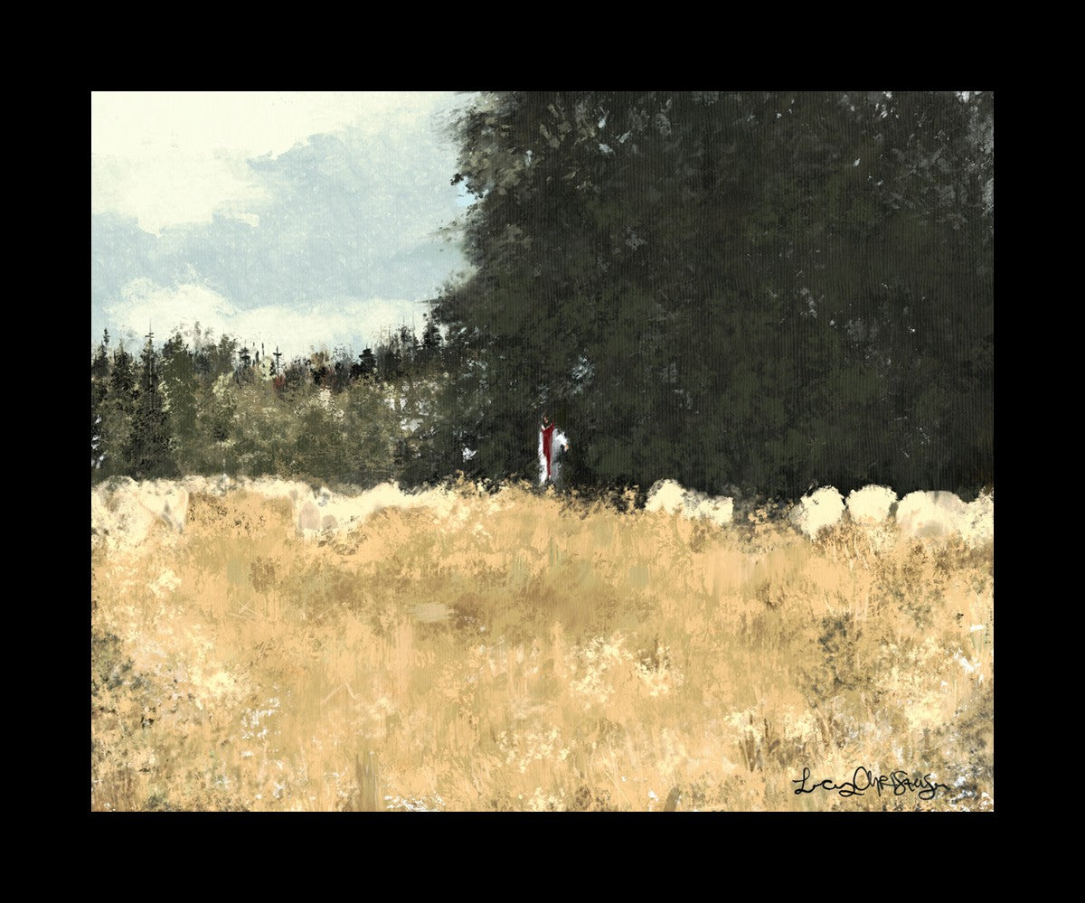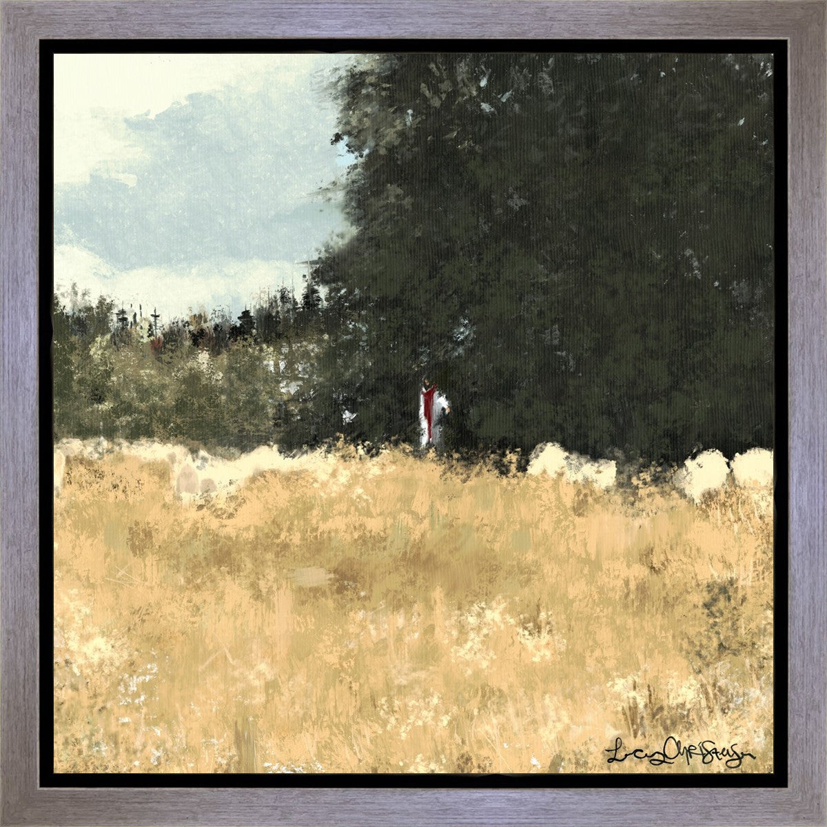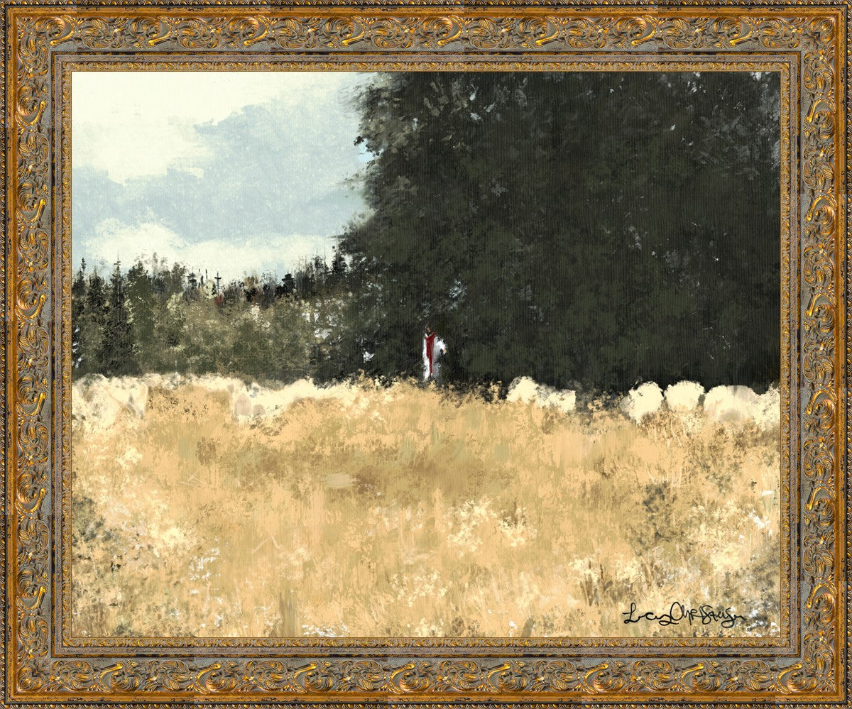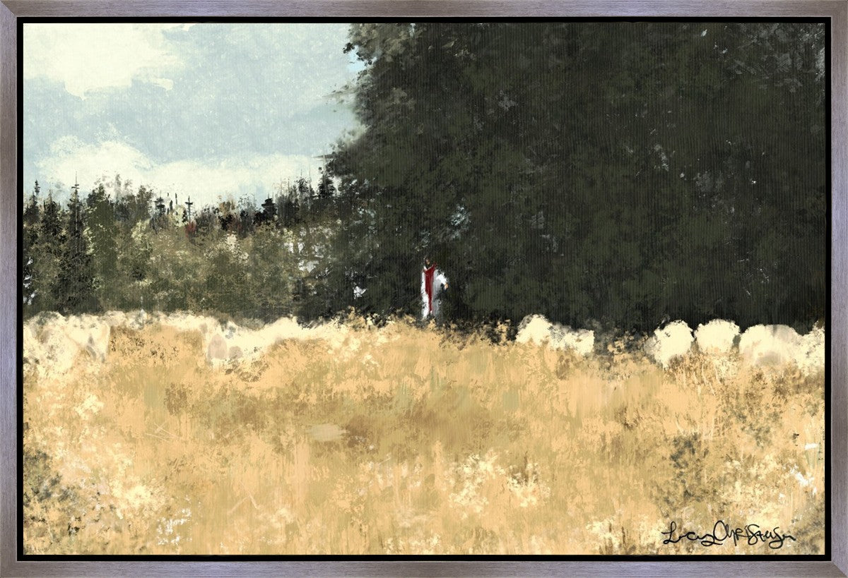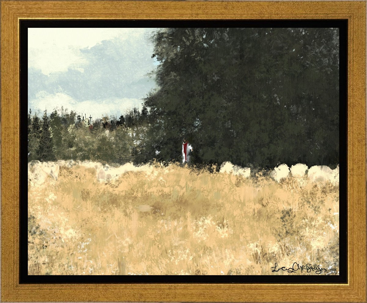 This Painting simply means a lot to me. Again it was something that I let the Spirit guide me on. It seemed as though I always came to this painting when I was trying to figure something out.. most of the time it was me trying to over come Fear about one thing or another. Up until yesterday there was no Christ at all in this painting. I kept wondering why this, its not coming together for me.. I love sheep and nature but Where’s Christ I feel like he should be here. Then I saw him perfectly. It was bone chilling and I covered my mouth even. There he was coming through out of the beautiful dark trees and I could see him perfectly. The whole painting came together with my thoughts I’d been having. Faith over Fear! Christ always triumphs!It was like I opened a door and I felt that happiness and excitement that was waiting.. and the joys I felt seeing Christ in this painting was just the best yet in all my creations. How many times have I simply thought, but where are you? I’ve had complete Faith, what more? And in the nick of time.. There he is. I always feel so bad when I have those moments but they are real.. Just like, Jesus The Christ is real.