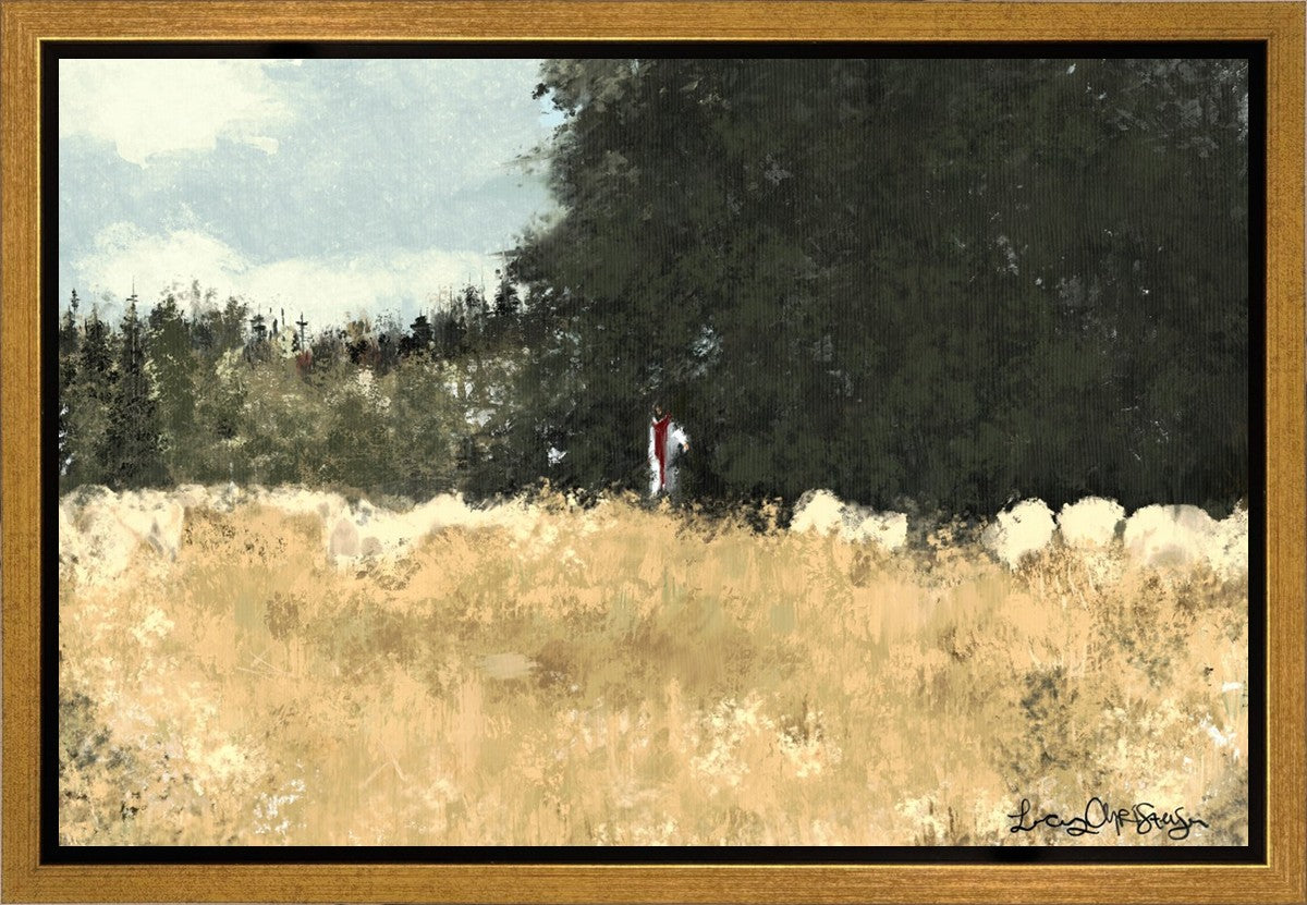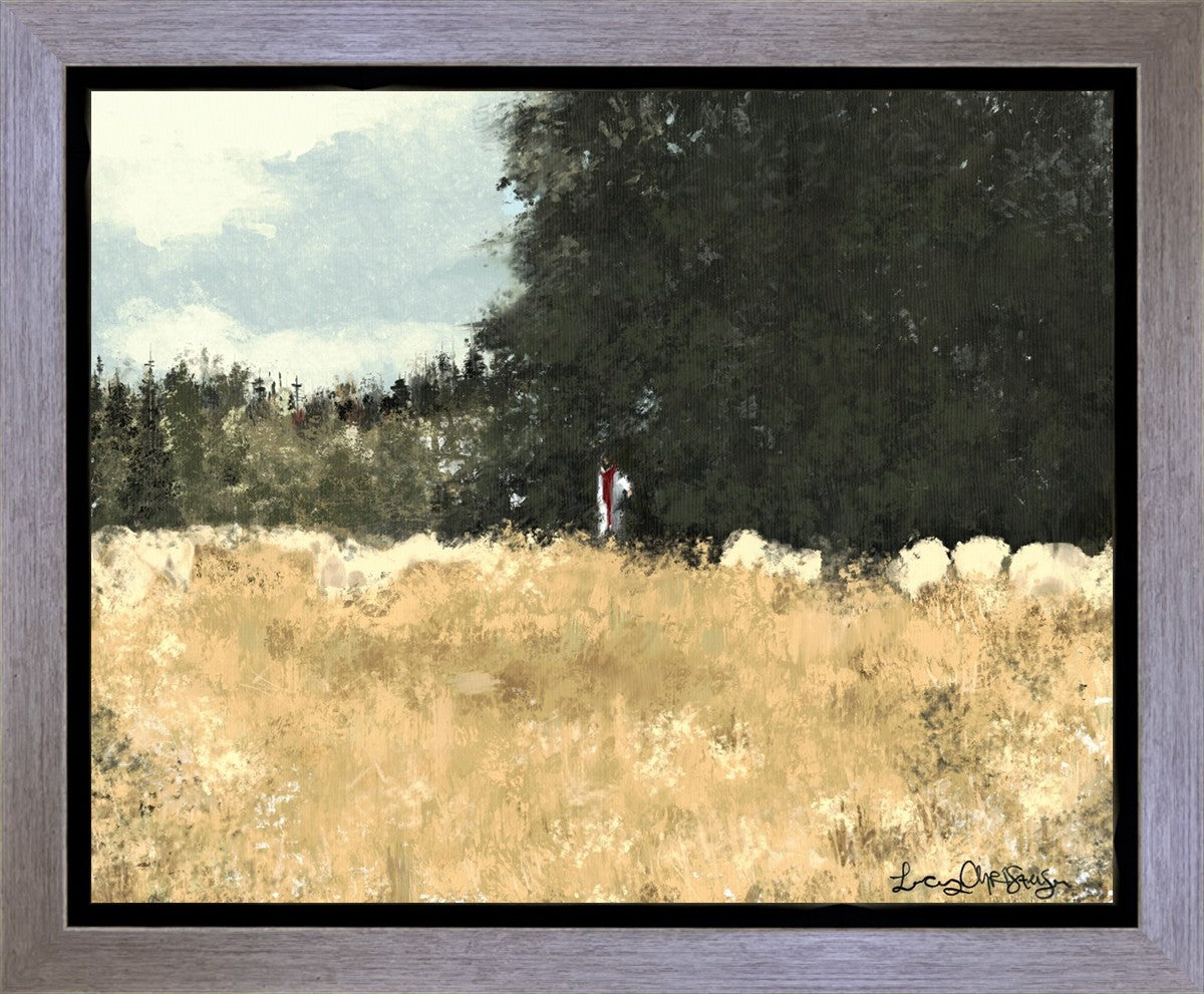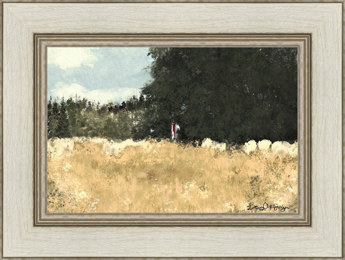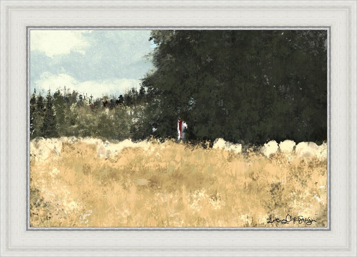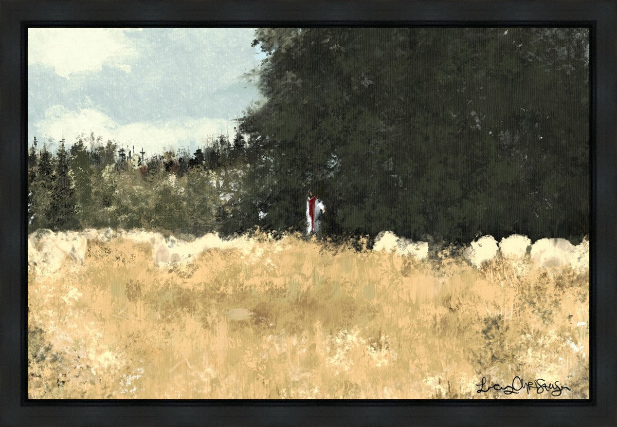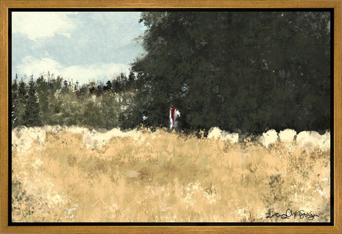This Painting simply means a lot to me. Again it was something that I let the Spirit guide me on. It seemed as though I always came to this painting when I was trying to figure something out.. most of the time it was me trying to over come Fear about one thing or another. Up until yesterday there was no Christ at all in this painting. I kept wondering why this, its not coming together for me.. I love sheep and nature but Where’s Christ I feel like he should be here. Then I saw him perfectly. It was bone chilling and I covered my mouth even. There he was coming through out of the beautiful dark trees and I could see him perfectly. The whole painting came together with my thoughts I’d been having. Faith over Fear! Christ always triumphs!It was like I opened a door and I felt that happiness and excitement that was waiting.. and the joys I felt seeing Christ in this painting was just the best yet in all my creations. How many times have I simply thought, but where are you? I’ve had complete Faith, what more? And in the nick of time.. There he is. I always feel so bad when I have those moments but they are real.. Just like, Jesus The Christ is real.