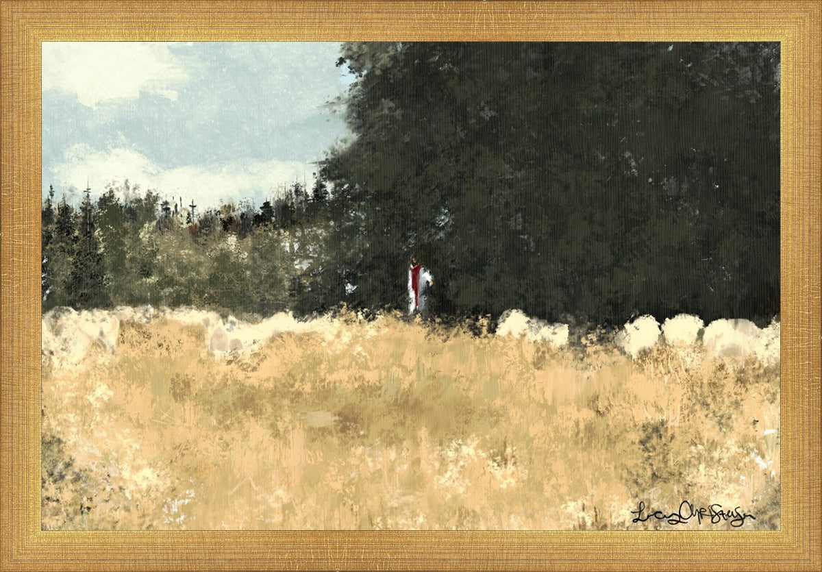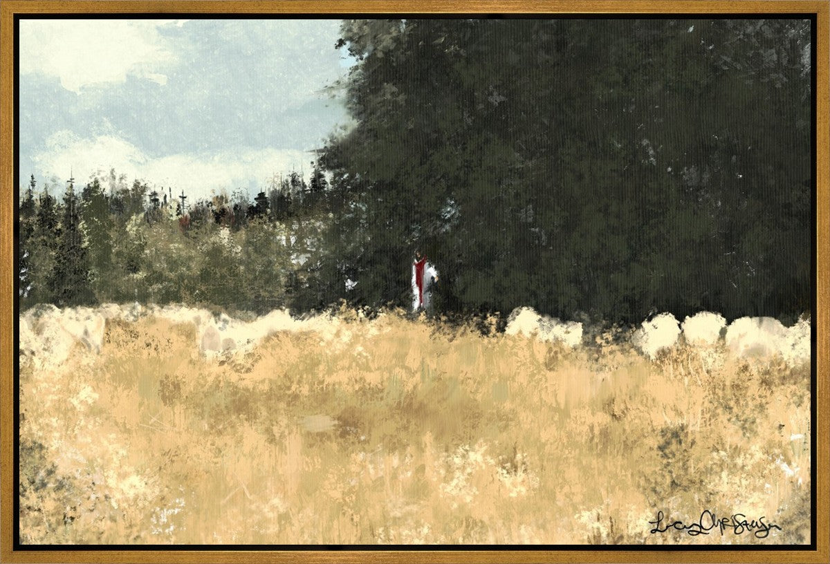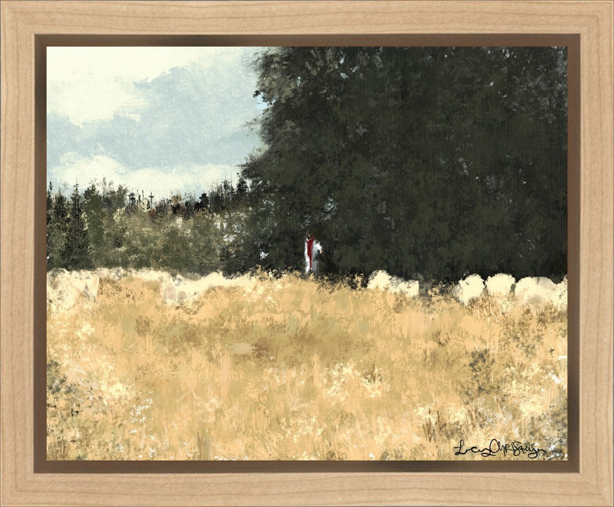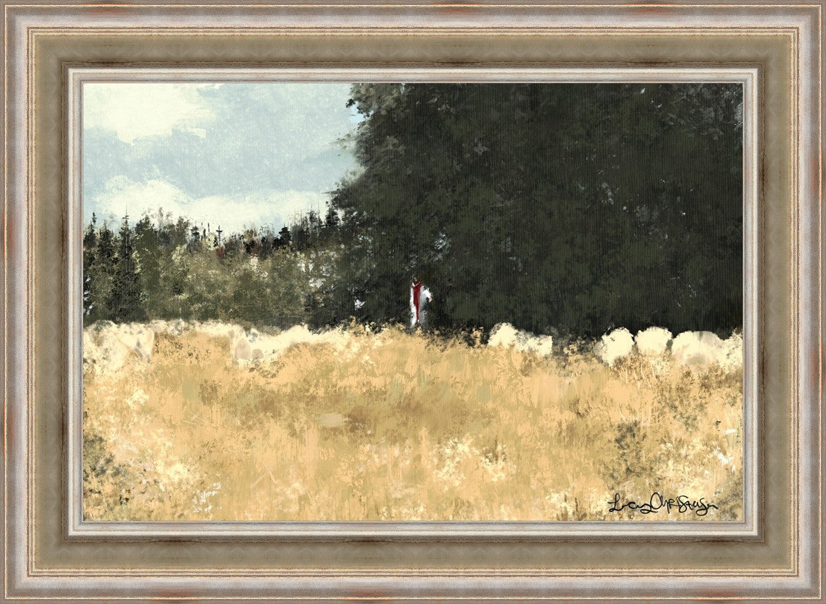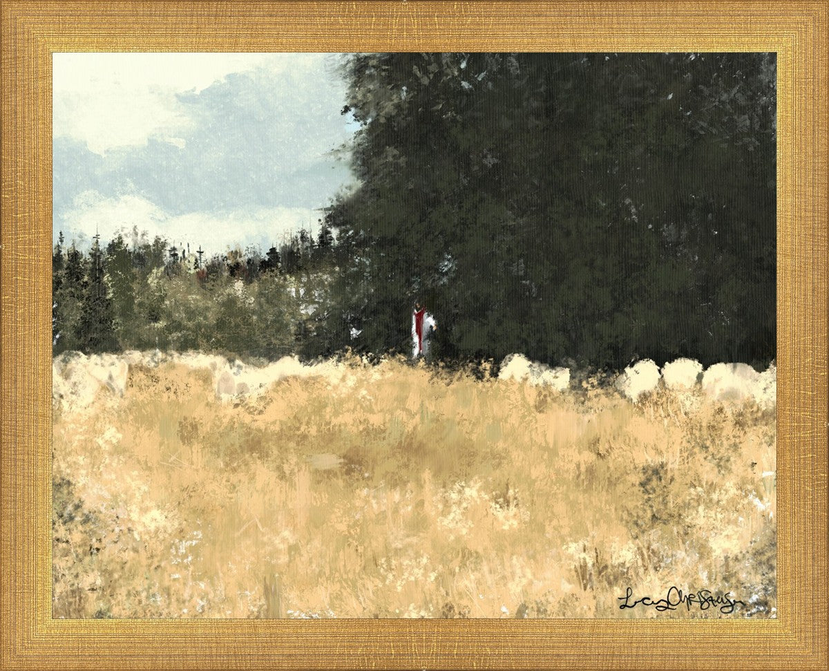 This Painting simply means a lot to me. Again it was something that I let the Spirit guide me on. It seemed as though I always came to this painting when I was trying to figure something out.. most of the time it was me trying to over come Fear about one thing or another. Up until yesterday there was no Christ at all in this painting. I kept wondering why this, its not coming together for me.. I love sheep and nature but Where’s Christ I feel like he should be here. Then I saw him perfectly. It was bone chilling and I covered my mouth even. There he was coming through out of the beautiful dark trees and I could see him perfectly. The whole painting came together with my thoughts I’d been having. Faith over Fear! Christ always triumphs!It was like I opened a door and I felt that happiness and excitement that was waiting.. and the joys I felt seeing Christ in this painting was just the best yet in all my creations. How many times have I simply thought, but where are you? I’ve had complete Faith, what more? And in the nick of time.. There he is. I always feel so bad when I have those moments but they are real.. Just like, Jesus The Christ is real.