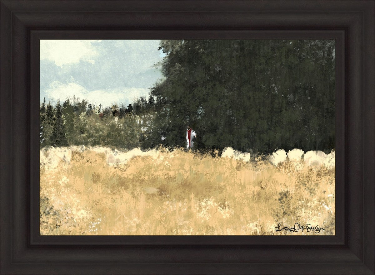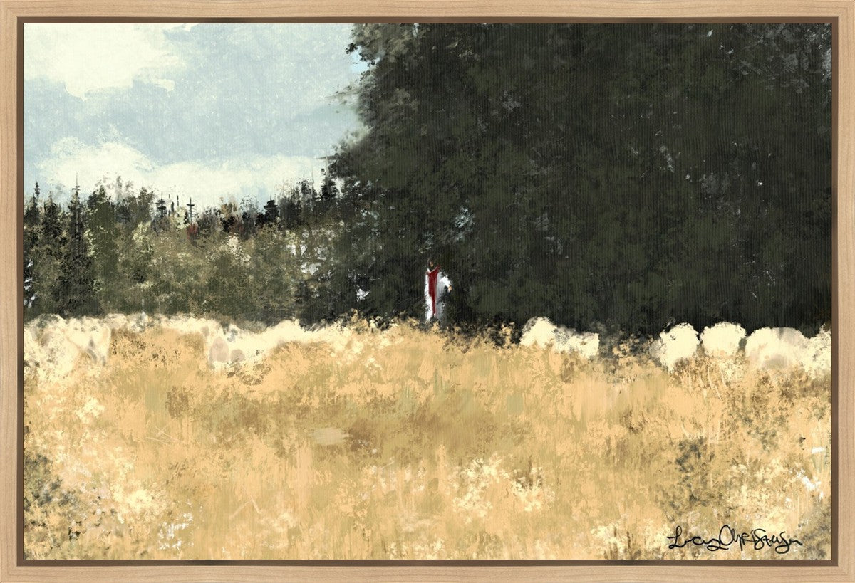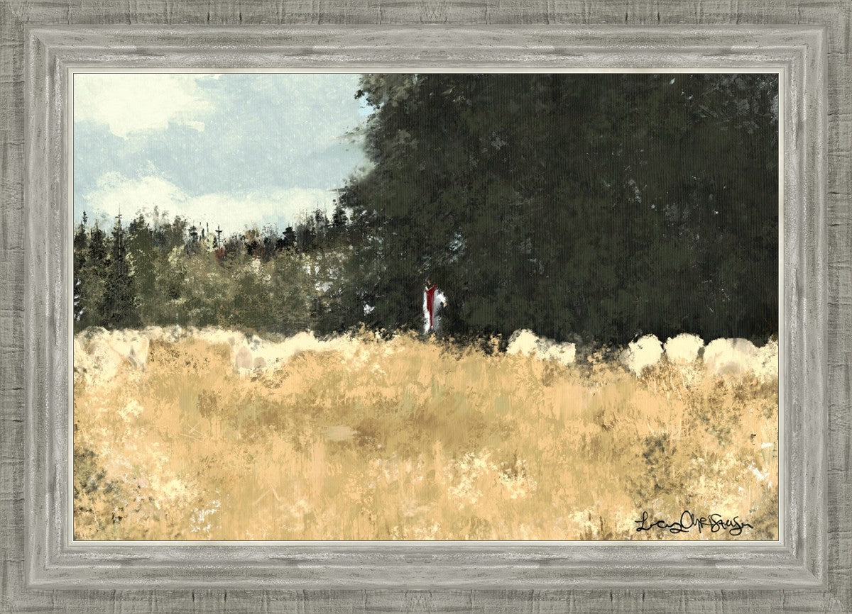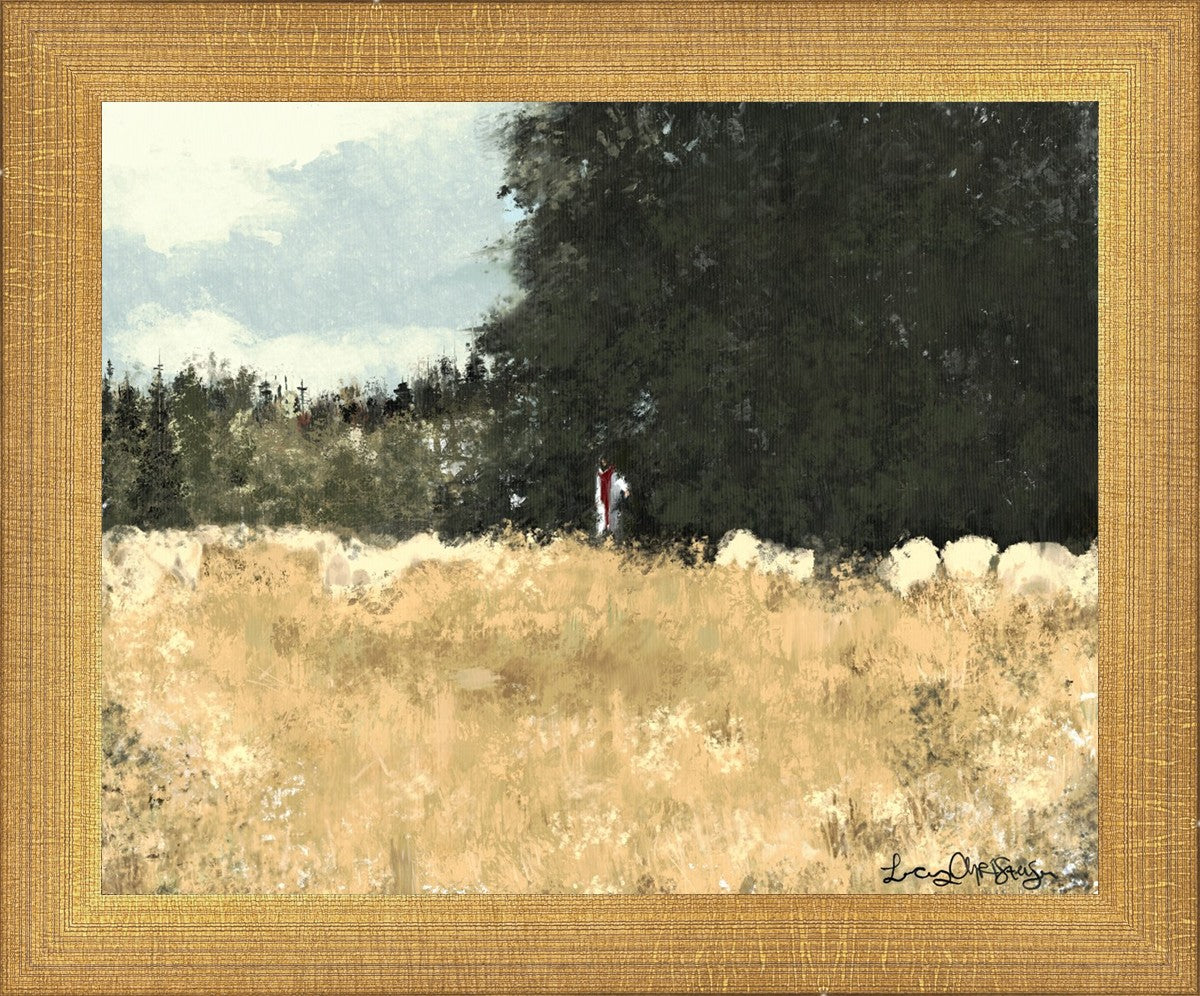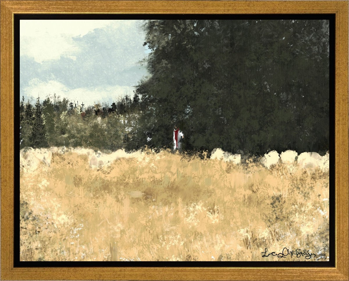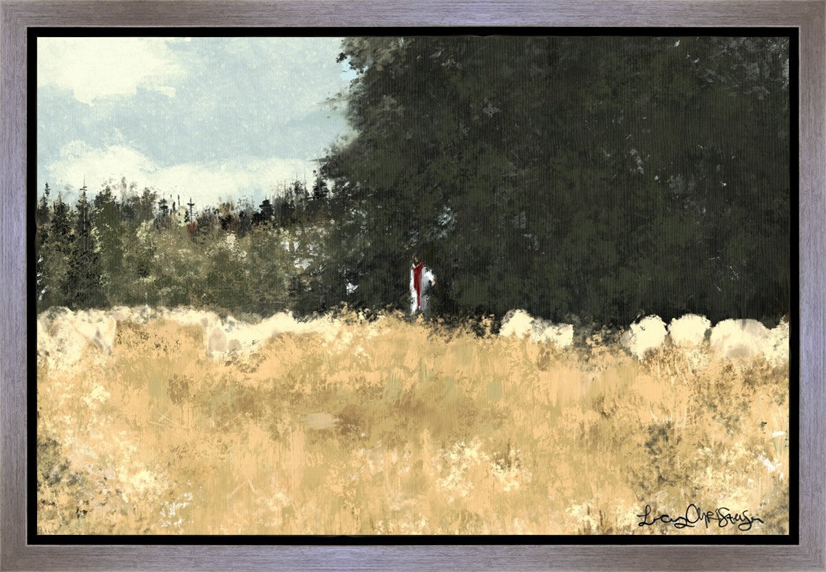 This Painting simply means a lot to me. Again it was something that I let the Spirit guide me on. It seemed as though I always came to this painting when I was trying to figure something out.. most of the time it was me trying to over come Fear about one thing or another. Up until yesterday there was no Christ at all in this painting. I kept wondering why this, its not coming together for me.. I love sheep and nature but Where’s Christ I feel like he should be here. Then I saw him perfectly. It was bone chilling and I covered my mouth even. There he was coming through out of the beautiful dark trees and I could see him perfectly. The whole painting came together with my thoughts I’d been having. Faith over Fear! Christ always triumphs!It was like I opened a door and I felt that happiness and excitement that was waiting.. and the joys I felt seeing Christ in this painting was just the best yet in all my creations. How many times have I simply thought, but where are you? I’ve had complete Faith, what more? And in the nick of time.. There he is. I always feel so bad when I have those moments but they are real.. Just like, Jesus The Christ is real.