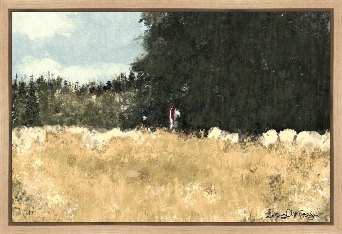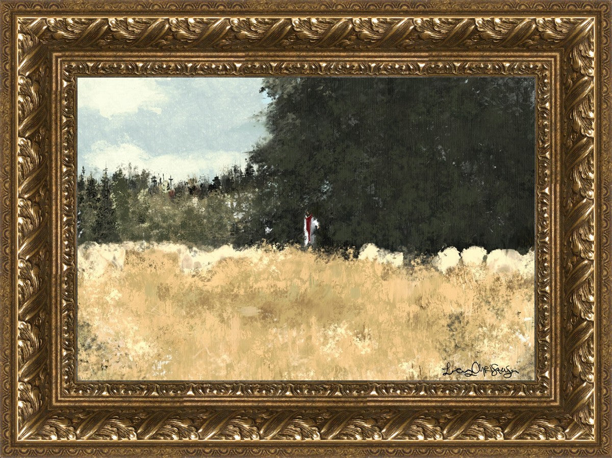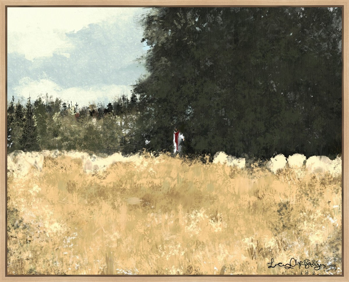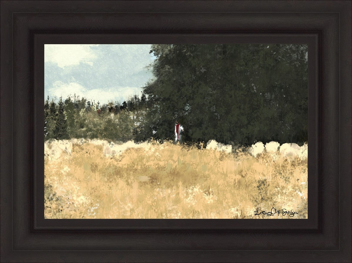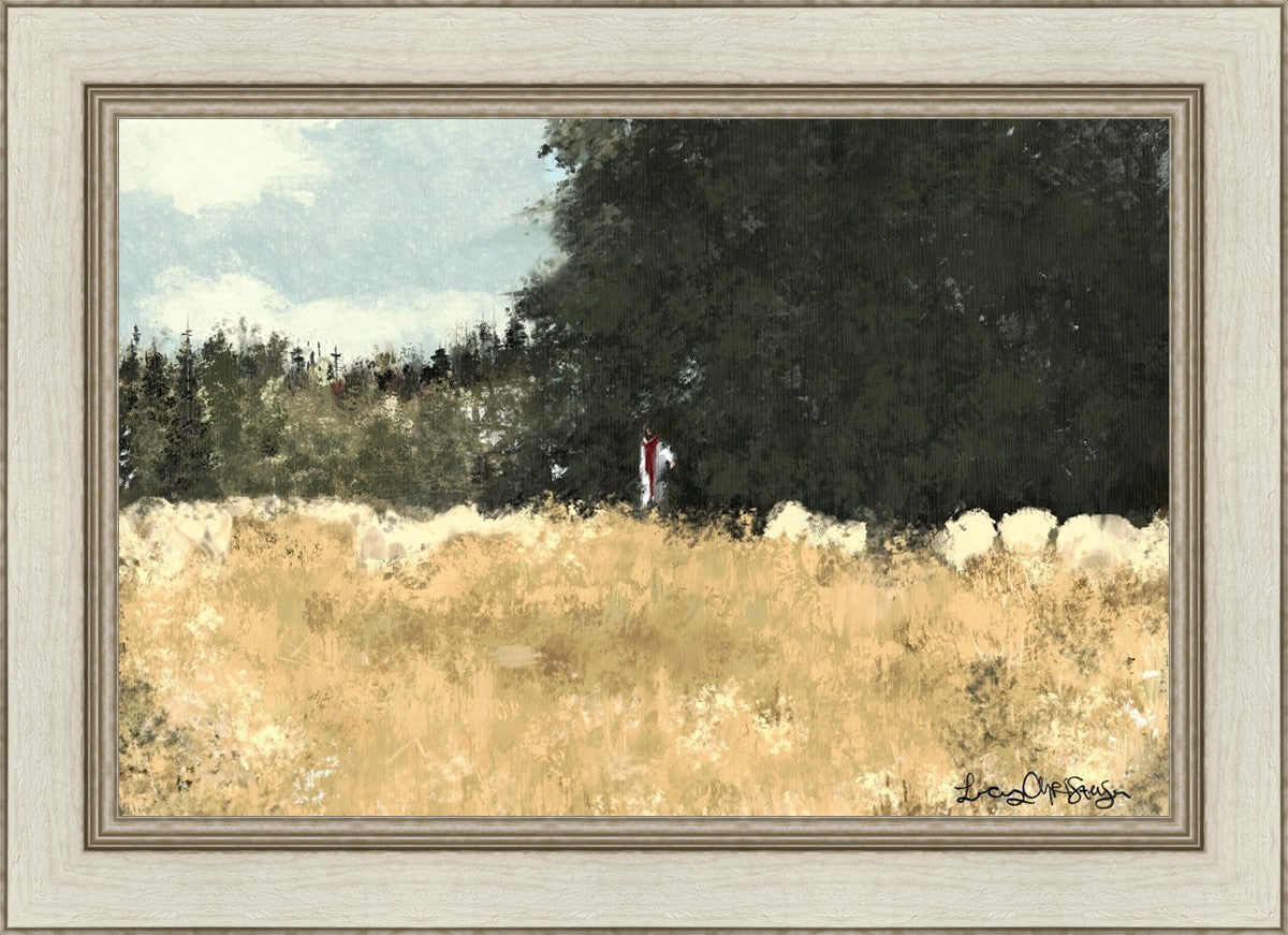 This Painting simply means a lot to me. Again it was something that I let the Spirit guide me on. It seemed as though I always came to this painting when I was trying to figure something out.. most of the time it was me trying to over come Fear about one thing or another. Up until yesterday there was no Christ at all in this painting. I kept wondering why this, its not coming together for me.. I love sheep and nature but Where’s Christ I feel like he should be here. Then I saw him perfectly. It was bone chilling and I covered my mouth even. There he was coming through out of the beautiful dark trees and I could see him perfectly. The whole painting came together with my thoughts I’d been having. Faith over Fear! Christ always triumphs!It was like I opened a door and I felt that happiness and excitement that was waiting.. and the joys I felt seeing Christ in this painting was just the best yet in all my creations. How many times have I simply thought, but where are you? I’ve had complete Faith, what more? And in the nick of time.. There he is. I always feel so bad when I have those moments but they are real.. Just like, Jesus The Christ is real.