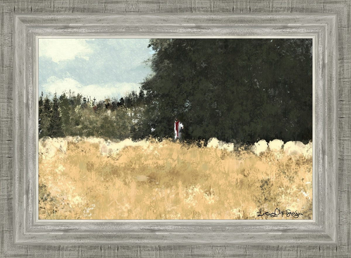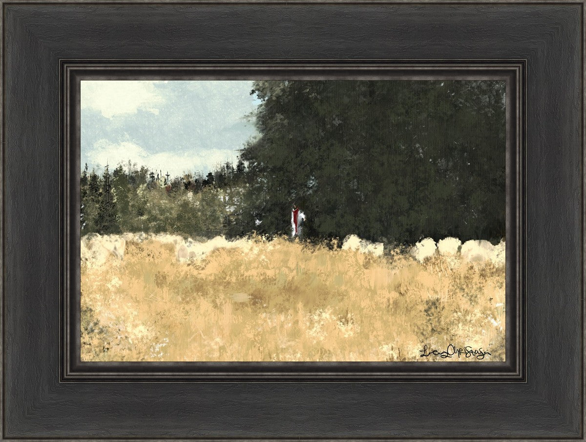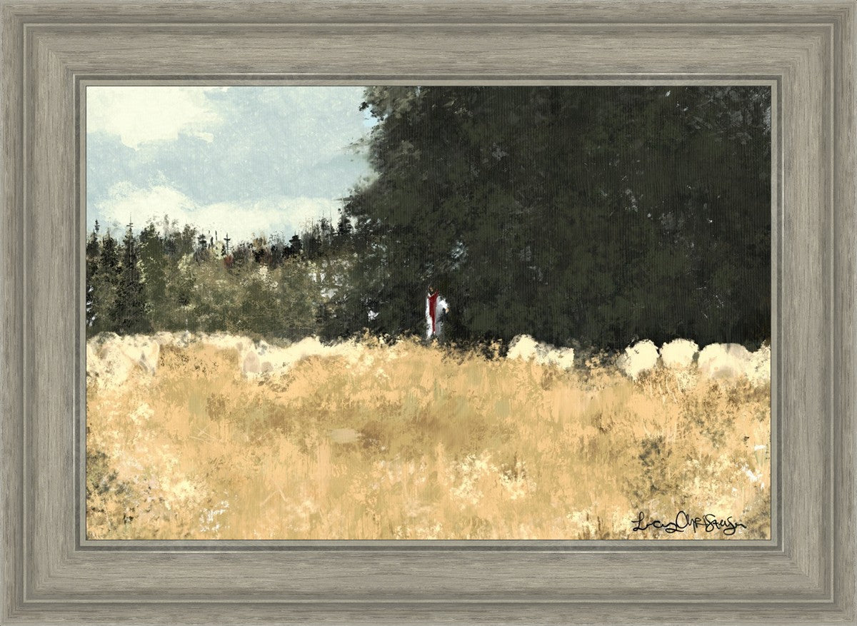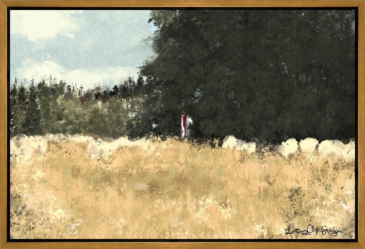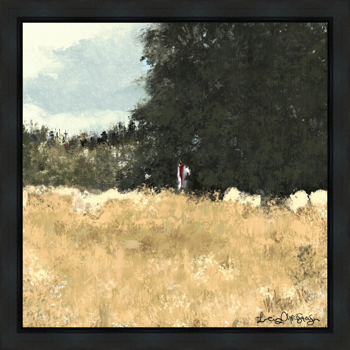 This Painting simply means a lot to me. Again it was something that I let the Spirit guide me on. It seemed as though I always came to this painting when I was trying to figure something out.. most of the time it was me trying to over come Fear about one thing or another. Up until yesterday there was no Christ at all in this painting. I kept wondering why this, its not coming together for me.. I love sheep and nature but Where’s Christ I feel like he should be here. Then I saw him perfectly. It was bone chilling and I covered my mouth even. There he was coming through out of the beautiful dark trees and I could see him perfectly. The whole painting came together with my thoughts I’d been having. Faith over Fear! Christ always triumphs!It was like I opened a door and I felt that happiness and excitement that was waiting.. and the joys I felt seeing Christ in this painting was just the best yet in all my creations. How many times have I simply thought, but where are you? I’ve had complete Faith, what more? And in the nick of time.. There he is. I always feel so bad when I have those moments but they are real.. Just like, Jesus The Christ is real.