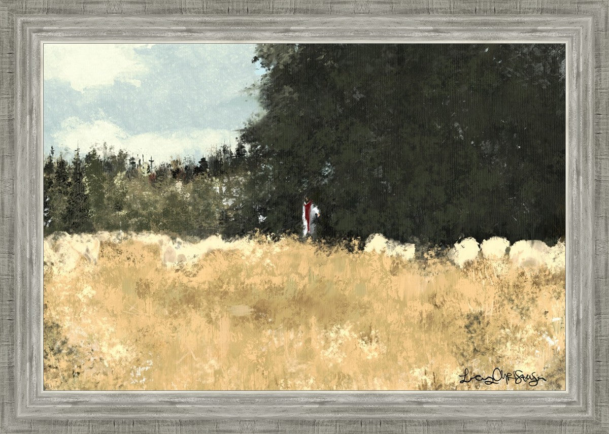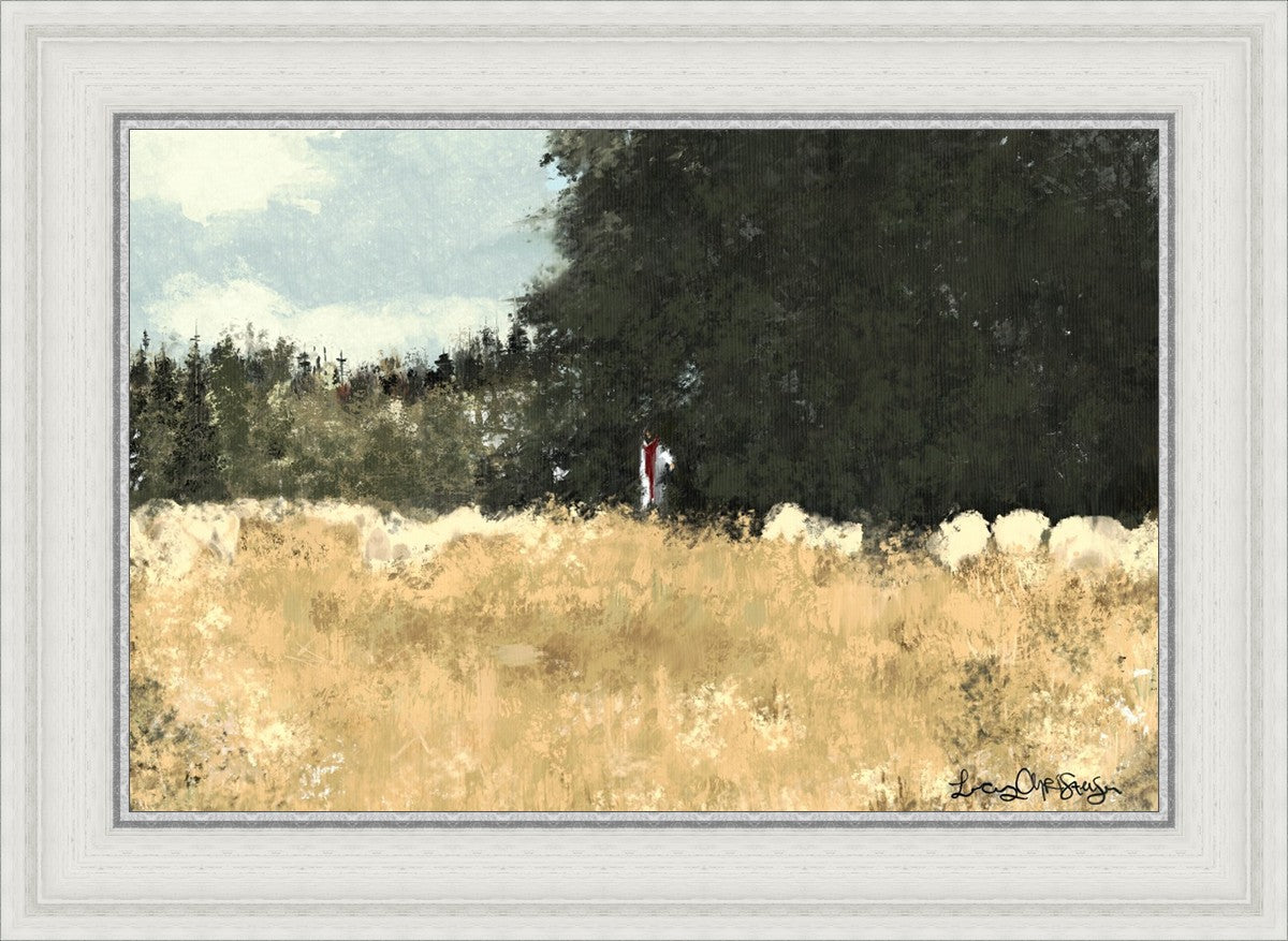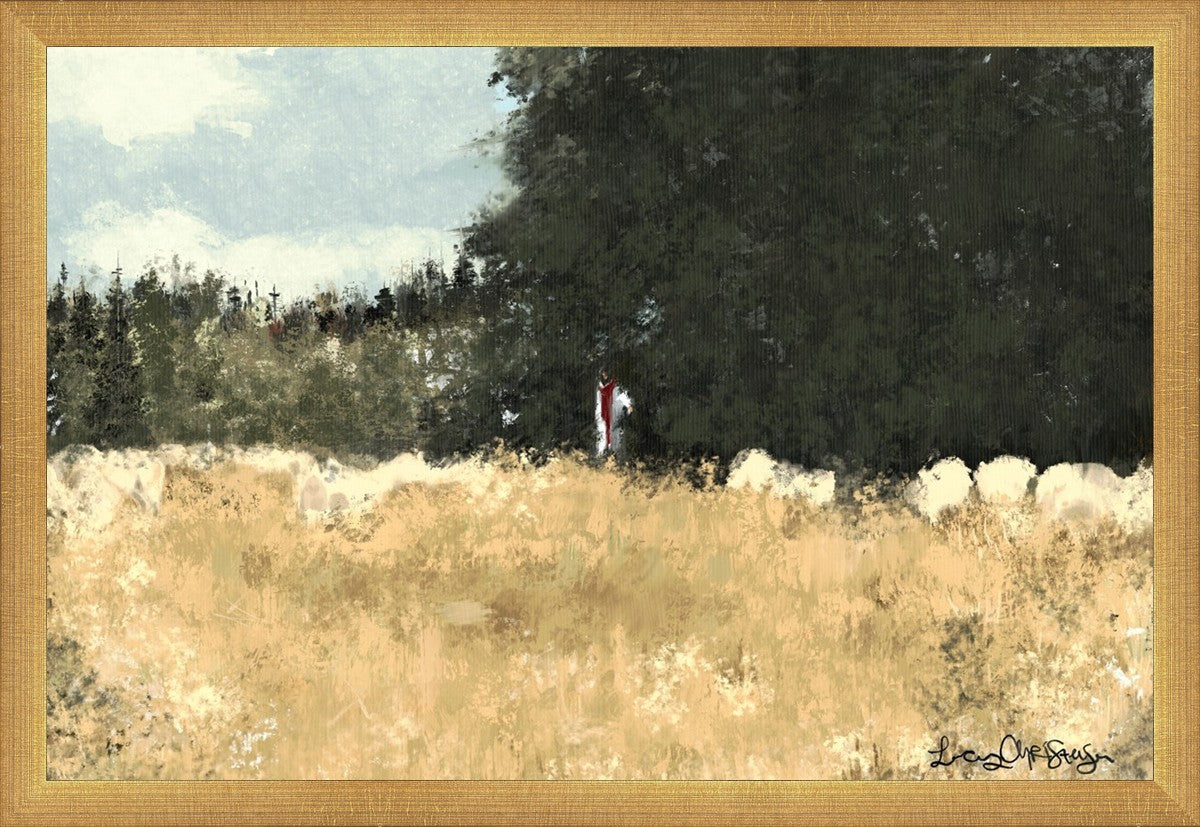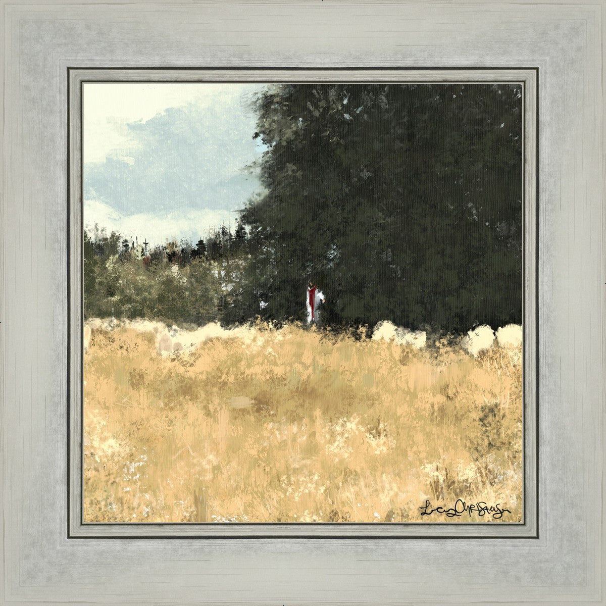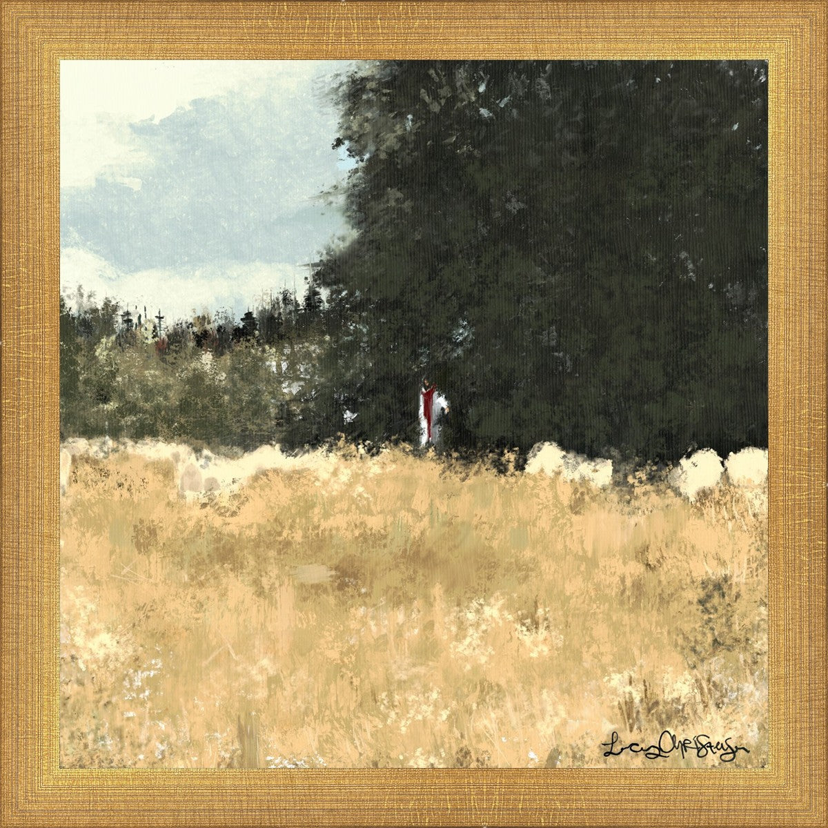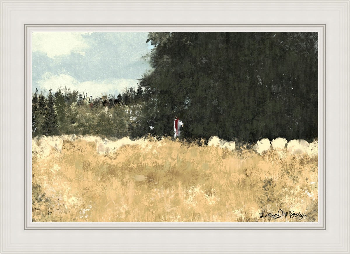 This Painting simply means a lot to me. Again it was something that I let the Spirit guide me on. It seemed as though I always came to this painting when I was trying to figure something out.. most of the time it was me trying to over come Fear about one thing or another. Up until yesterday there was no Christ at all in this painting. I kept wondering why this, its not coming together for me.. I love sheep and nature but Where’s Christ I feel like he should be here. Then I saw him perfectly. It was bone chilling and I covered my mouth even. There he was coming through out of the beautiful dark trees and I could see him perfectly. The whole painting came together with my thoughts I’d been having. Faith over Fear! Christ always triumphs!It was like I opened a door and I felt that happiness and excitement that was waiting.. and the joys I felt seeing Christ in this painting was just the best yet in all my creations. How many times have I simply thought, but where are you? I’ve had complete Faith, what more? And in the nick of time.. There he is. I always feel so bad when I have those moments but they are real.. Just like, Jesus The Christ is real.