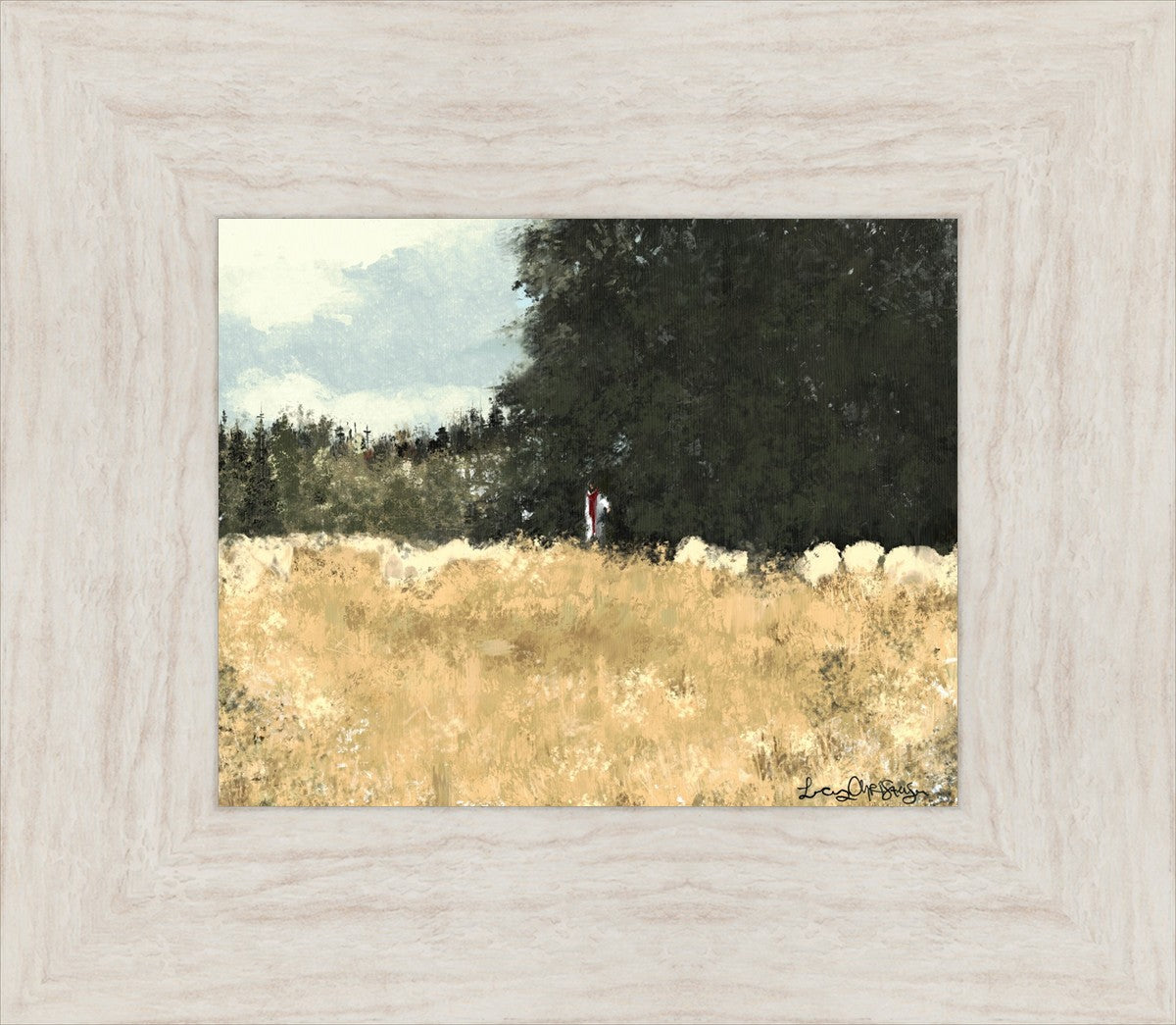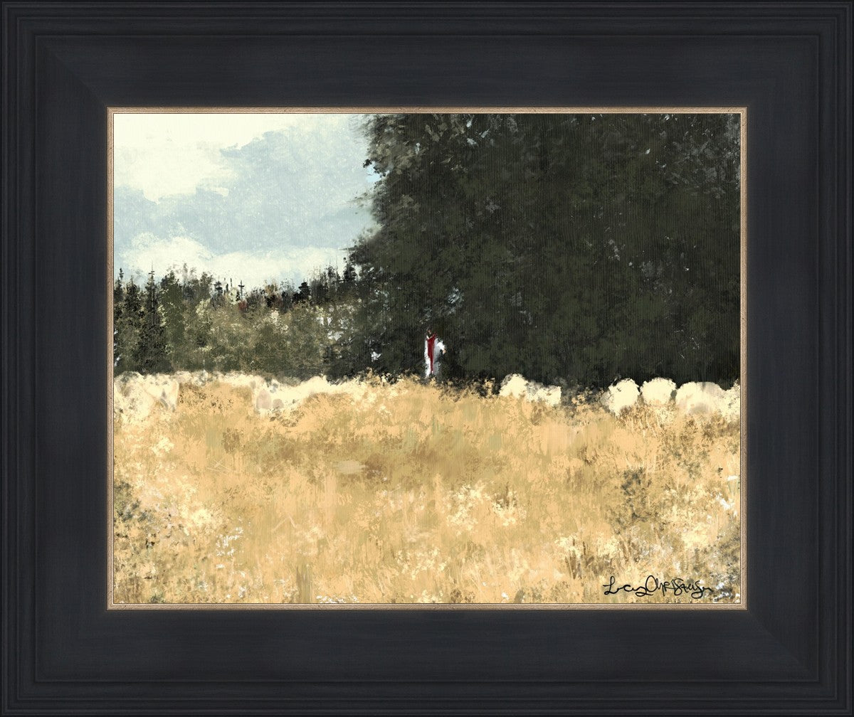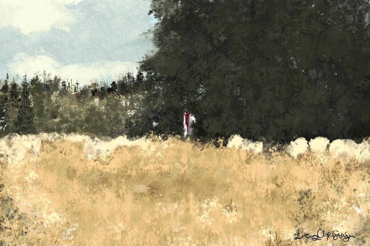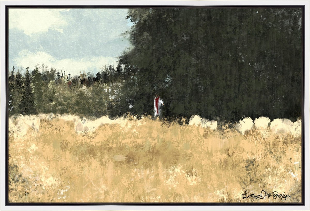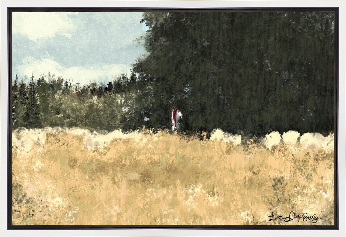 This Painting simply means a lot to me. Again it was something that I let the Spirit guide me on. It seemed as though I always came to this painting when I was trying to figure something out.. most of the time it was me trying to over come Fear about one thing or another. Up until yesterday there was no Christ at all in this painting. I kept wondering why this, its not coming together for me.. I love sheep and nature but Where’s Christ I feel like he should be here. Then I saw him perfectly. It was bone chilling and I covered my mouth even. There he was coming through out of the beautiful dark trees and I could see him perfectly. The whole painting came together with my thoughts I’d been having. Faith over Fear! Christ always triumphs!It was like I opened a door and I felt that happiness and excitement that was waiting.. and the joys I felt seeing Christ in this painting was just the best yet in all my creations. How many times have I simply thought, but where are you? I’ve had complete Faith, what more? And in the nick of time.. There he is. I always feel so bad when I have those moments but they are real.. Just like, Jesus The Christ is real.