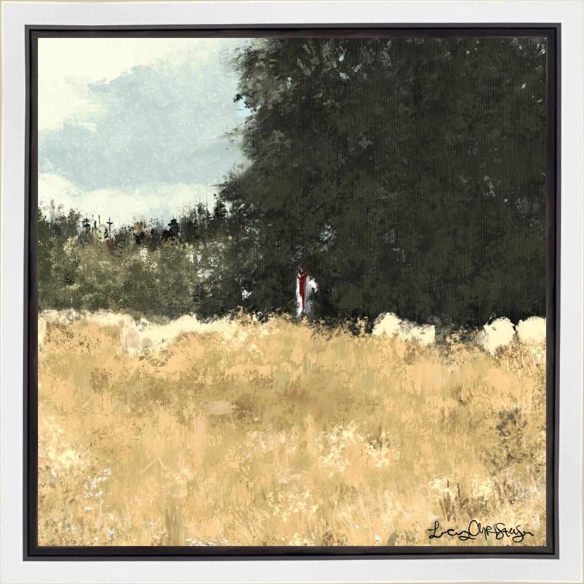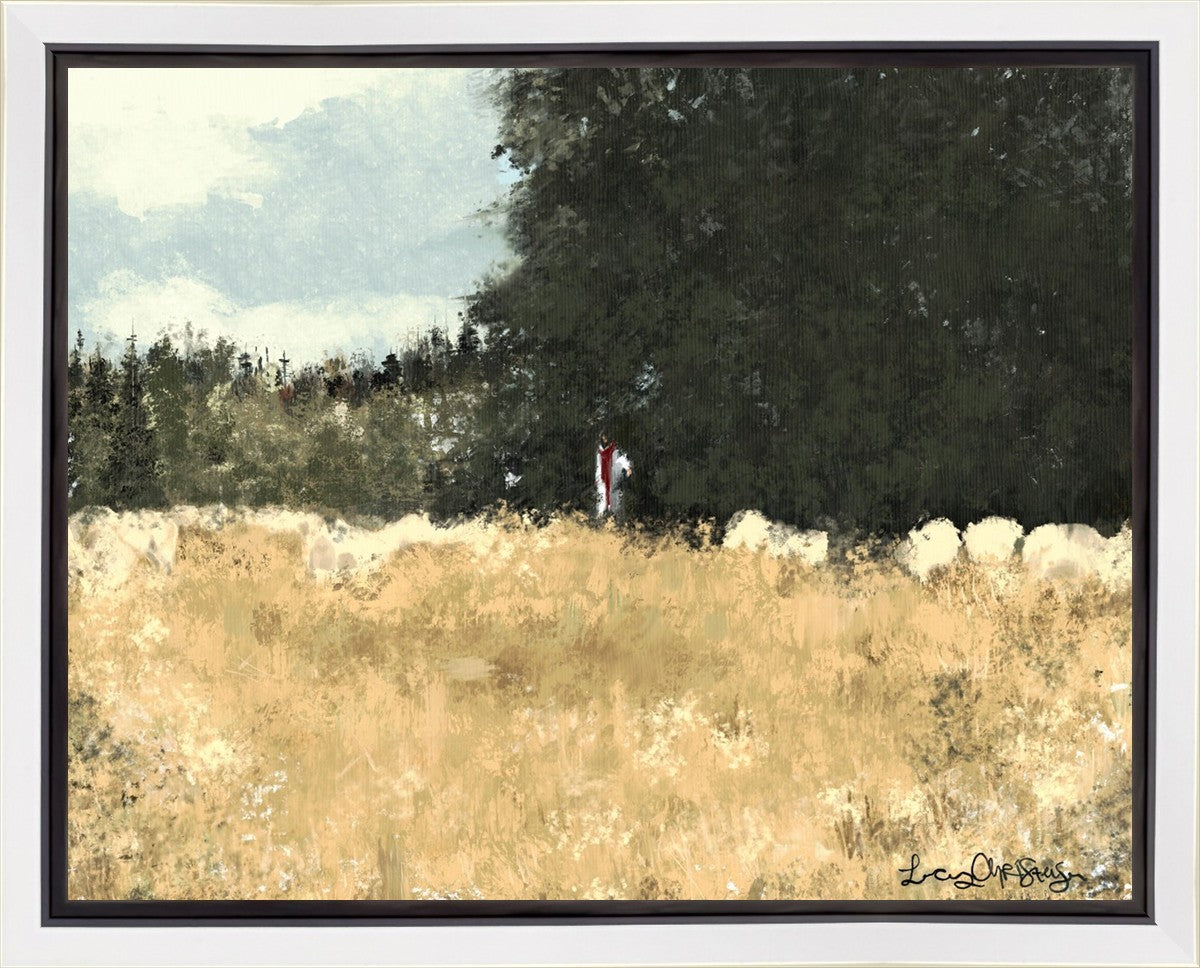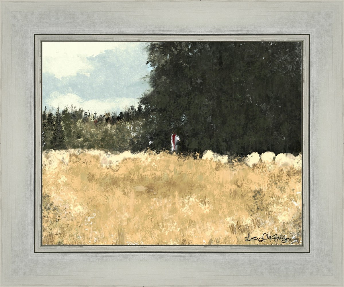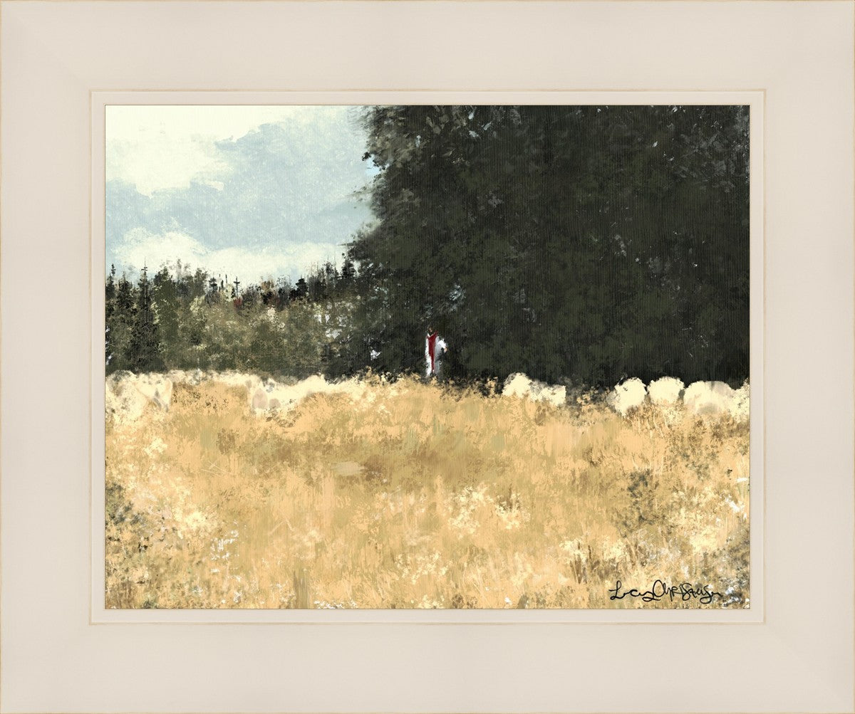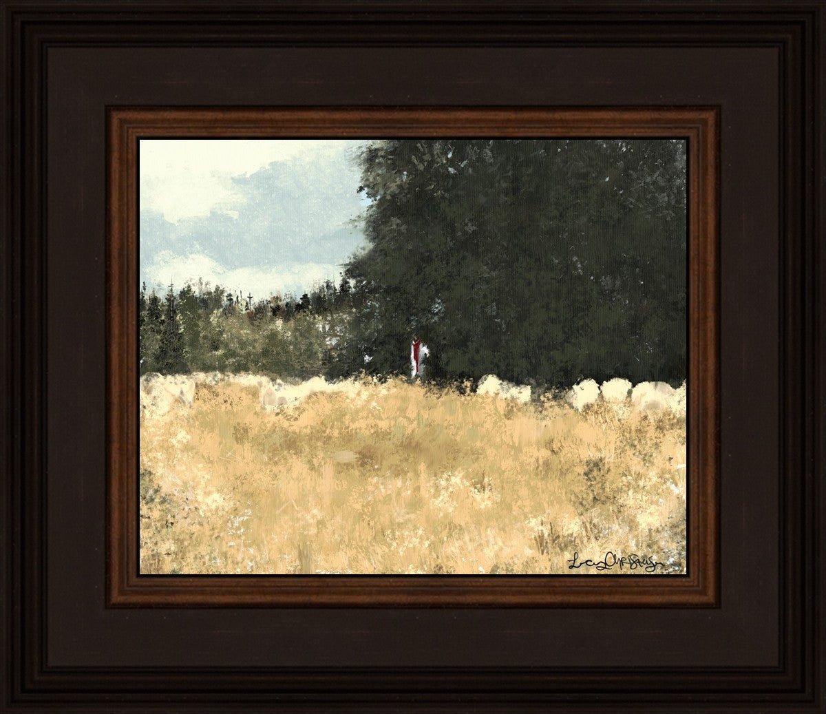 This Painting simply means a lot to me. Again it was something that I let the Spirit guide me on. It seemed as though I always came to this painting when I was trying to figure something out.. most of the time it was me trying to over come Fear about one thing or another. Up until yesterday there was no Christ at all in this painting. I kept wondering why this, its not coming together for me.. I love sheep and nature but Where’s Christ I feel like he should be here. Then I saw him perfectly. It was bone chilling and I covered my mouth even. There he was coming through out of the beautiful dark trees and I could see him perfectly. The whole painting came together with my thoughts I’d been having. Faith over Fear! Christ always triumphs!It was like I opened a door and I felt that happiness and excitement that was waiting.. and the joys I felt seeing Christ in this painting was just the best yet in all my creations. How many times have I simply thought, but where are you? I’ve had complete Faith, what more? And in the nick of time.. There he is. I always feel so bad when I have those moments but they are real.. Just like, Jesus The Christ is real.