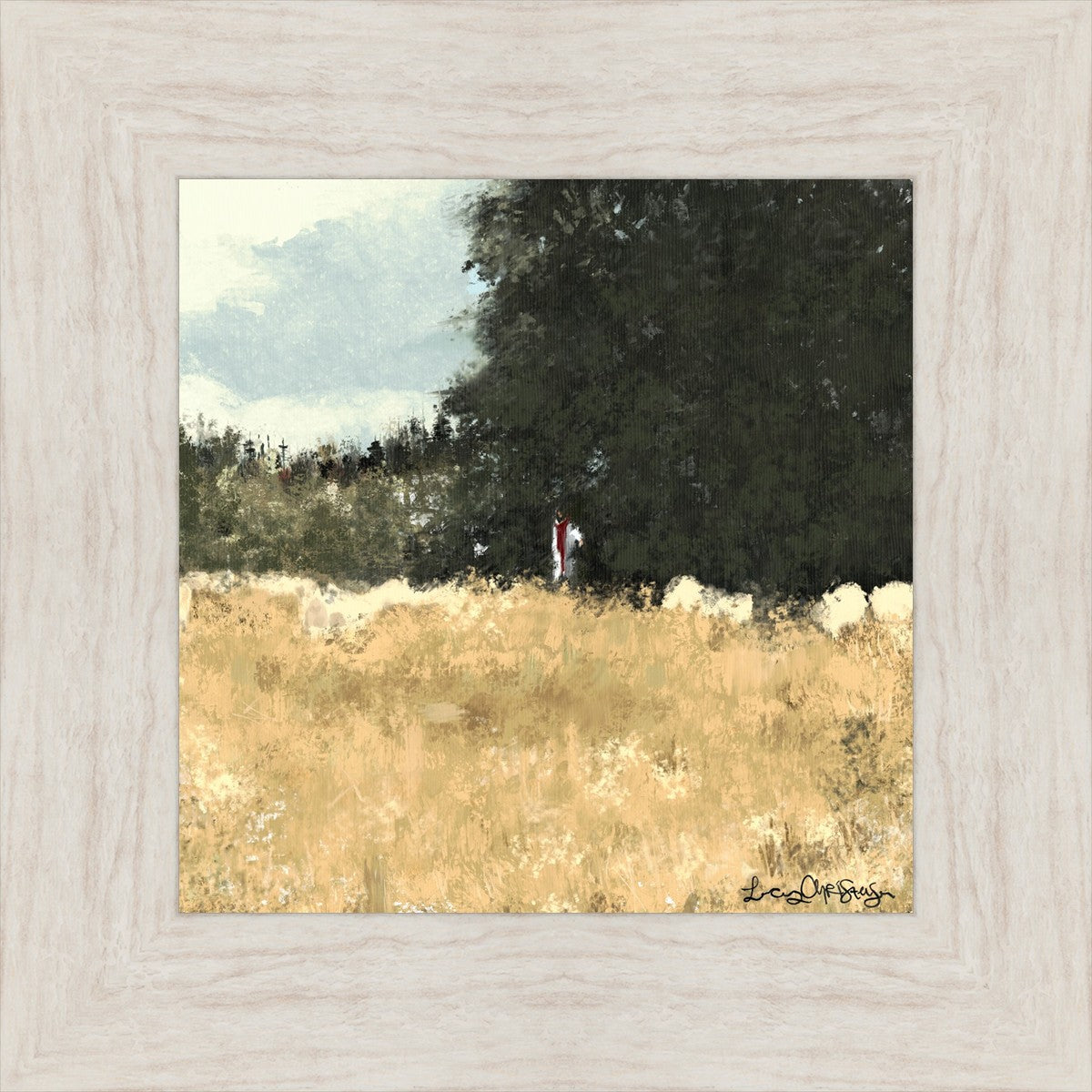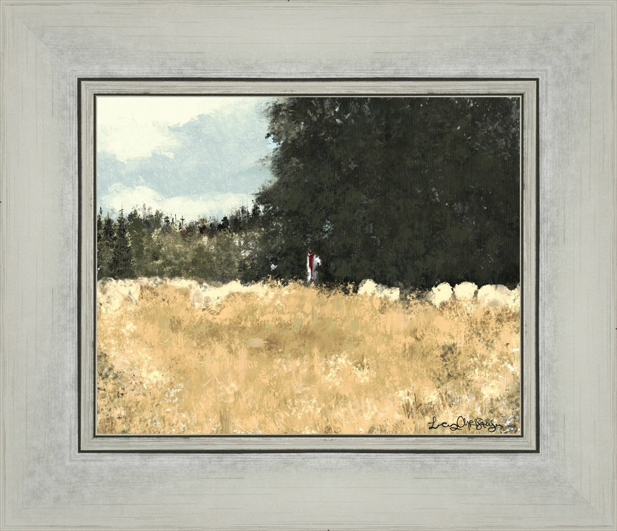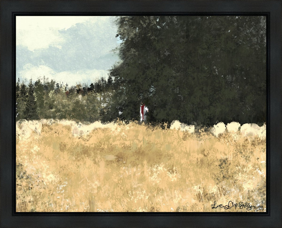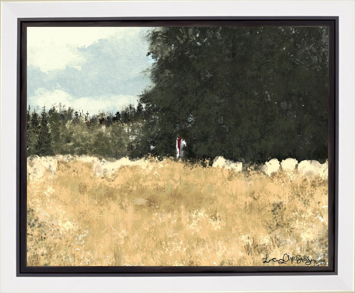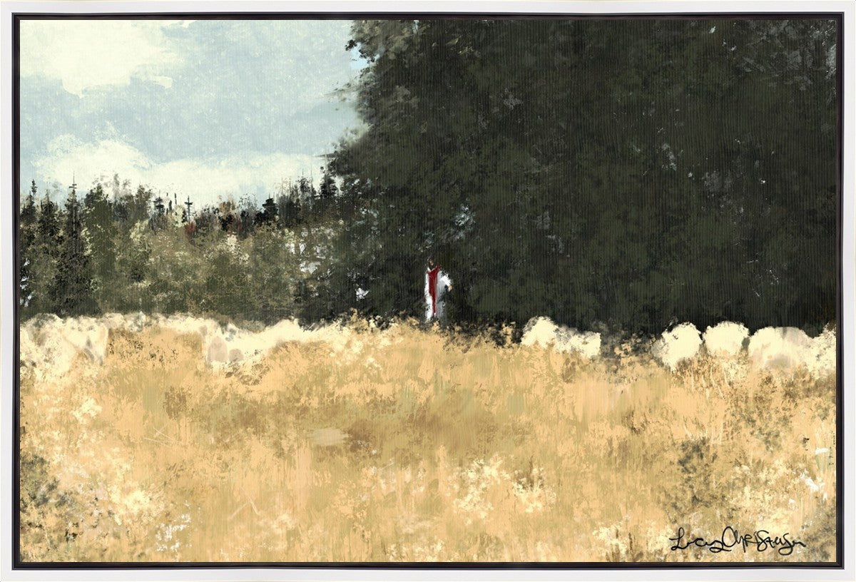 This Painting simply means a lot to me. Again it was something that I let the Spirit guide me on. It seemed as though I always came to this painting when I was trying to figure something out.. most of the time it was me trying to over come Fear about one thing or another. Up until yesterday there was no Christ at all in this painting. I kept wondering why this, its not coming together for me.. I love sheep and nature but Where’s Christ I feel like he should be here. Then I saw him perfectly. It was bone chilling and I covered my mouth even. There he was coming through out of the beautiful dark trees and I could see him perfectly. The whole painting came together with my thoughts I’d been having. Faith over Fear! Christ always triumphs!It was like I opened a door and I felt that happiness and excitement that was waiting.. and the joys I felt seeing Christ in this painting was just the best yet in all my creations. How many times have I simply thought, but where are you? I’ve had complete Faith, what more? And in the nick of time.. There he is. I always feel so bad when I have those moments but they are real.. Just like, Jesus The Christ is real.
