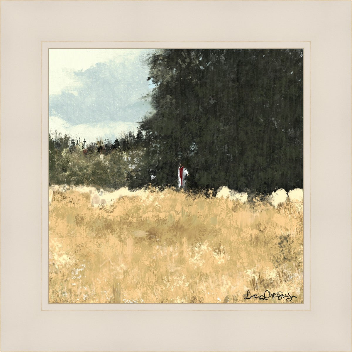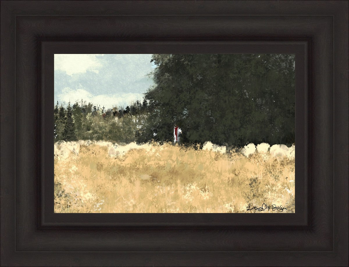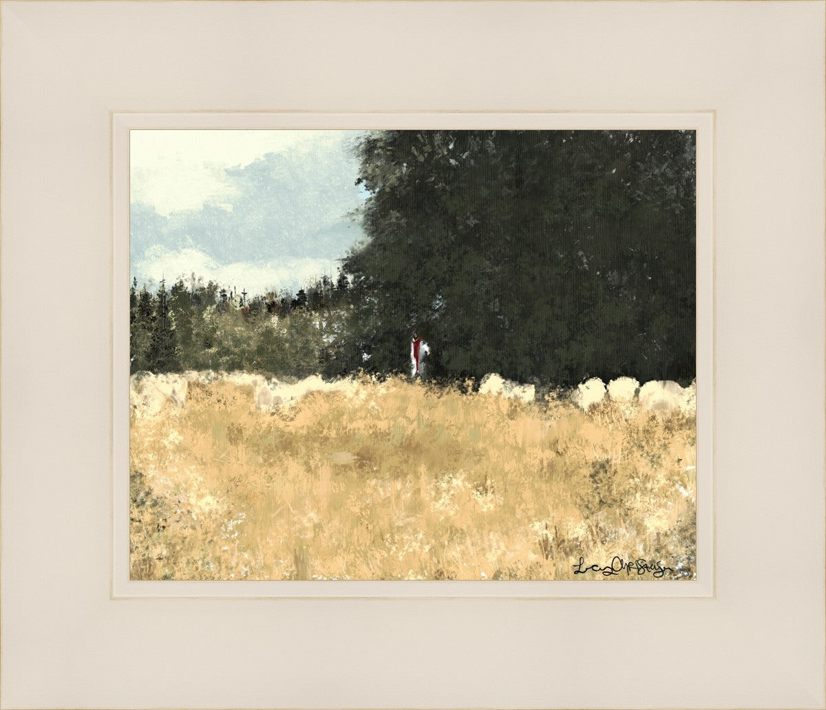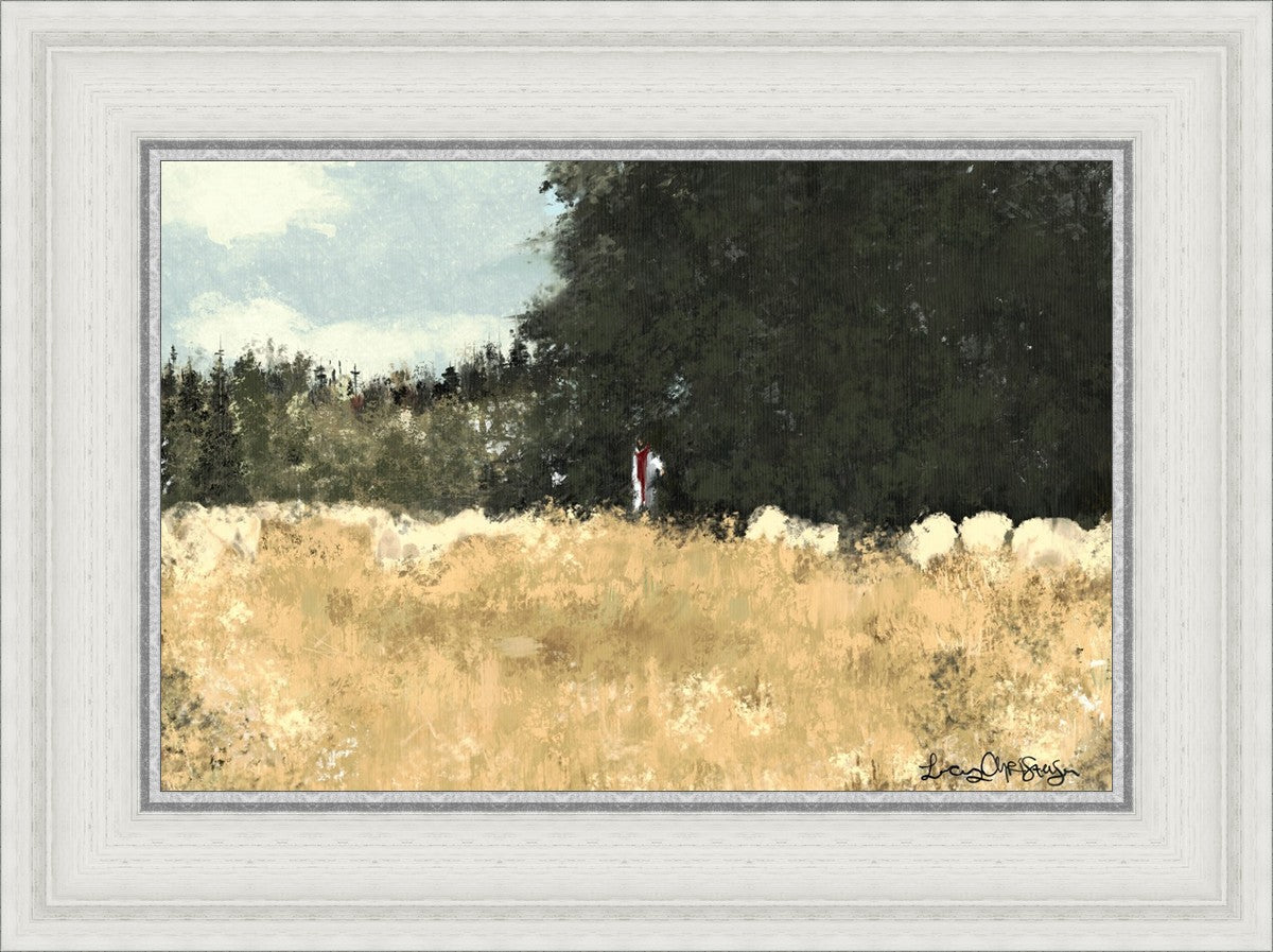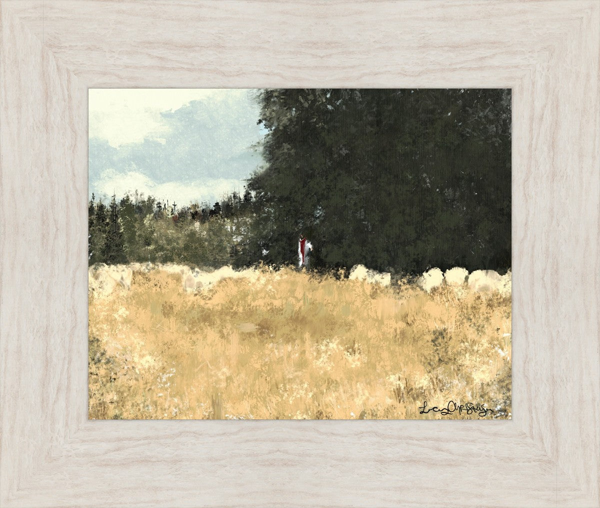 This Painting simply means a lot to me. Again it was something that I let the Spirit guide me on. It seemed as though I always came to this painting when I was trying to figure something out.. most of the time it was me trying to over come Fear about one thing or another. Up until yesterday there was no Christ at all in this painting. I kept wondering why this, its not coming together for me.. I love sheep and nature but Where’s Christ I feel like he should be here. Then I saw him perfectly. It was bone chilling and I covered my mouth even. There he was coming through out of the beautiful dark trees and I could see him perfectly. The whole painting came together with my thoughts I’d been having. Faith over Fear! Christ always triumphs!It was like I opened a door and I felt that happiness and excitement that was waiting.. and the joys I felt seeing Christ in this painting was just the best yet in all my creations. How many times have I simply thought, but where are you? I’ve had complete Faith, what more? And in the nick of time.. There he is. I always feel so bad when I have those moments but they are real.. Just like, Jesus The Christ is real.