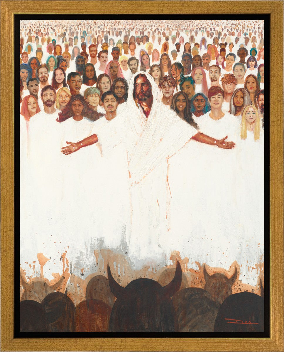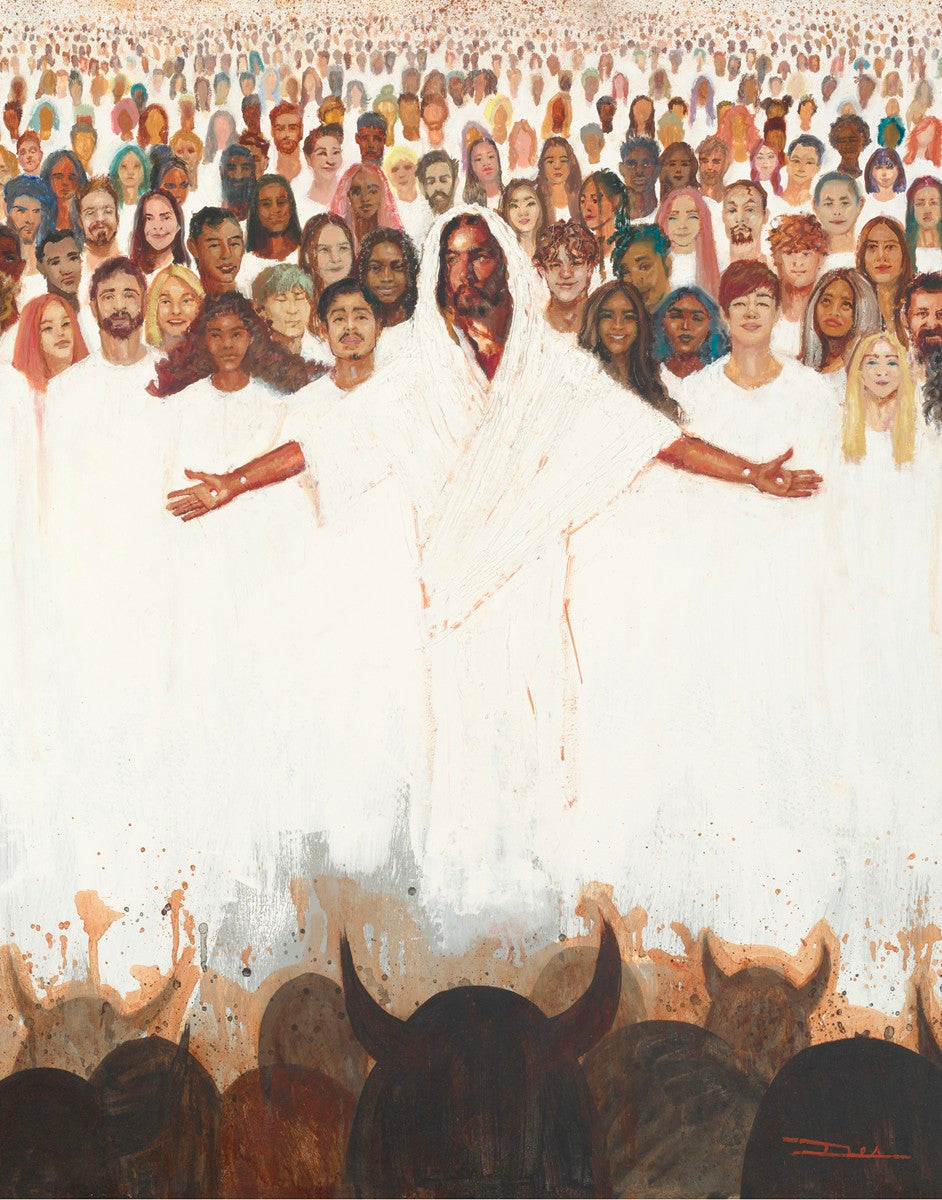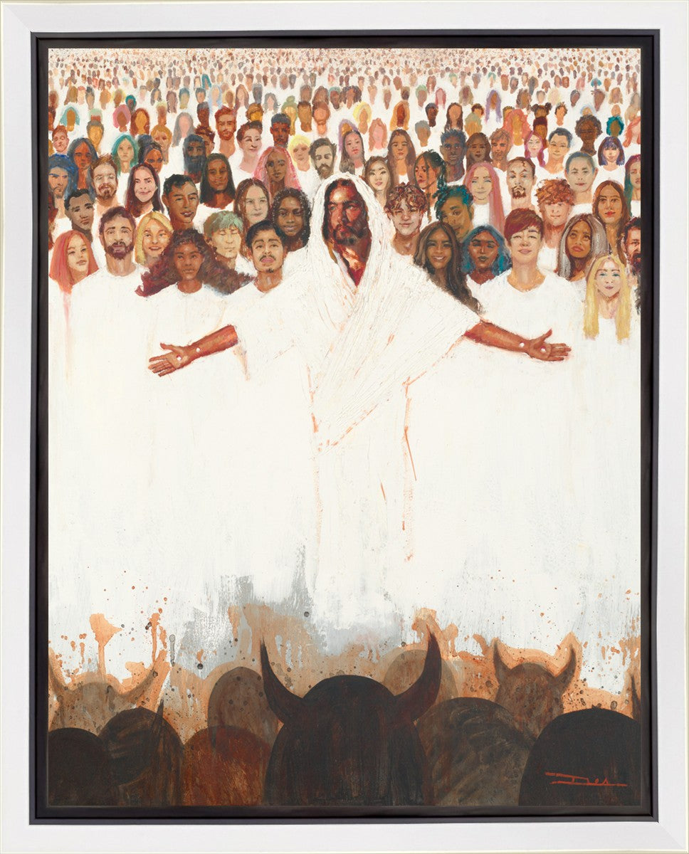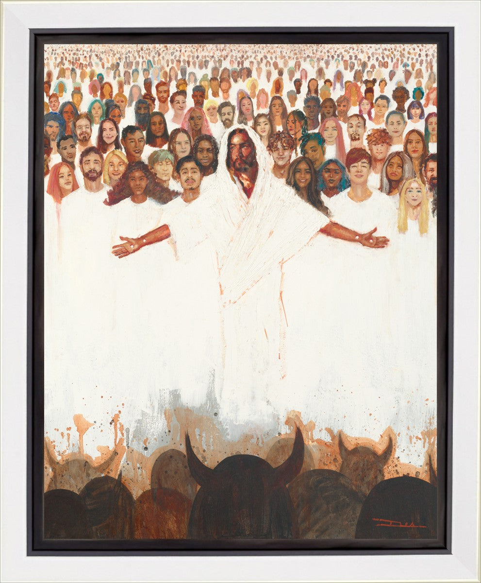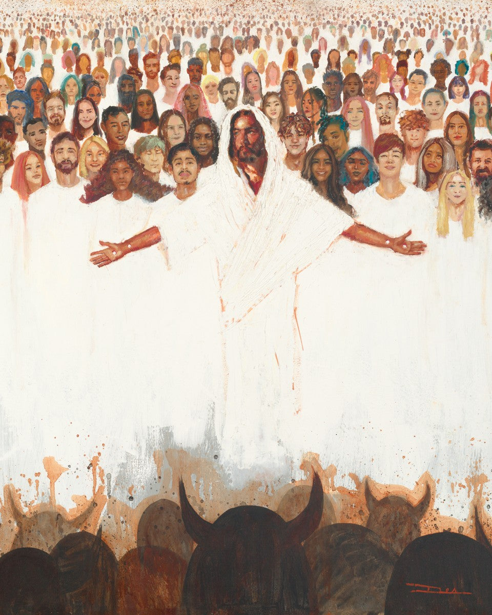 This painting was inspired during a time when I was battling my inner demons more than normal. It was a tender mercy to have this image come to mind along with the scripture "Fear not, they that be with us are more than they that be with them" (2 Kings 6:16)".