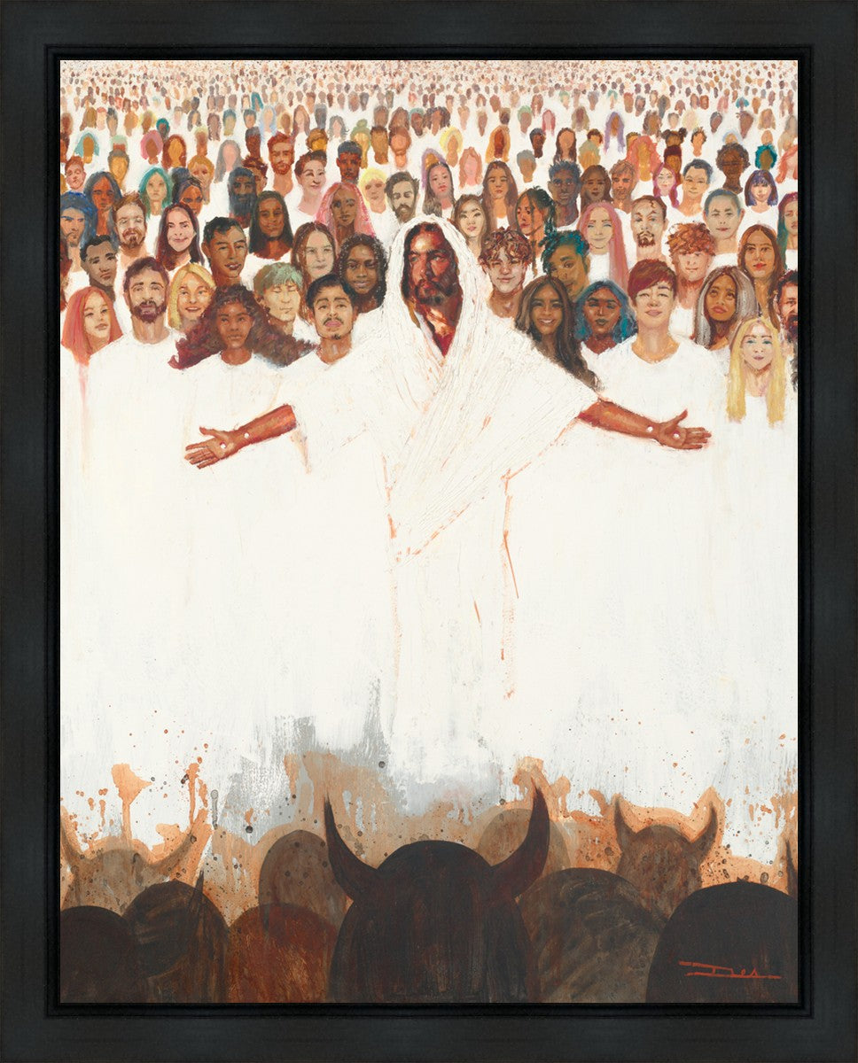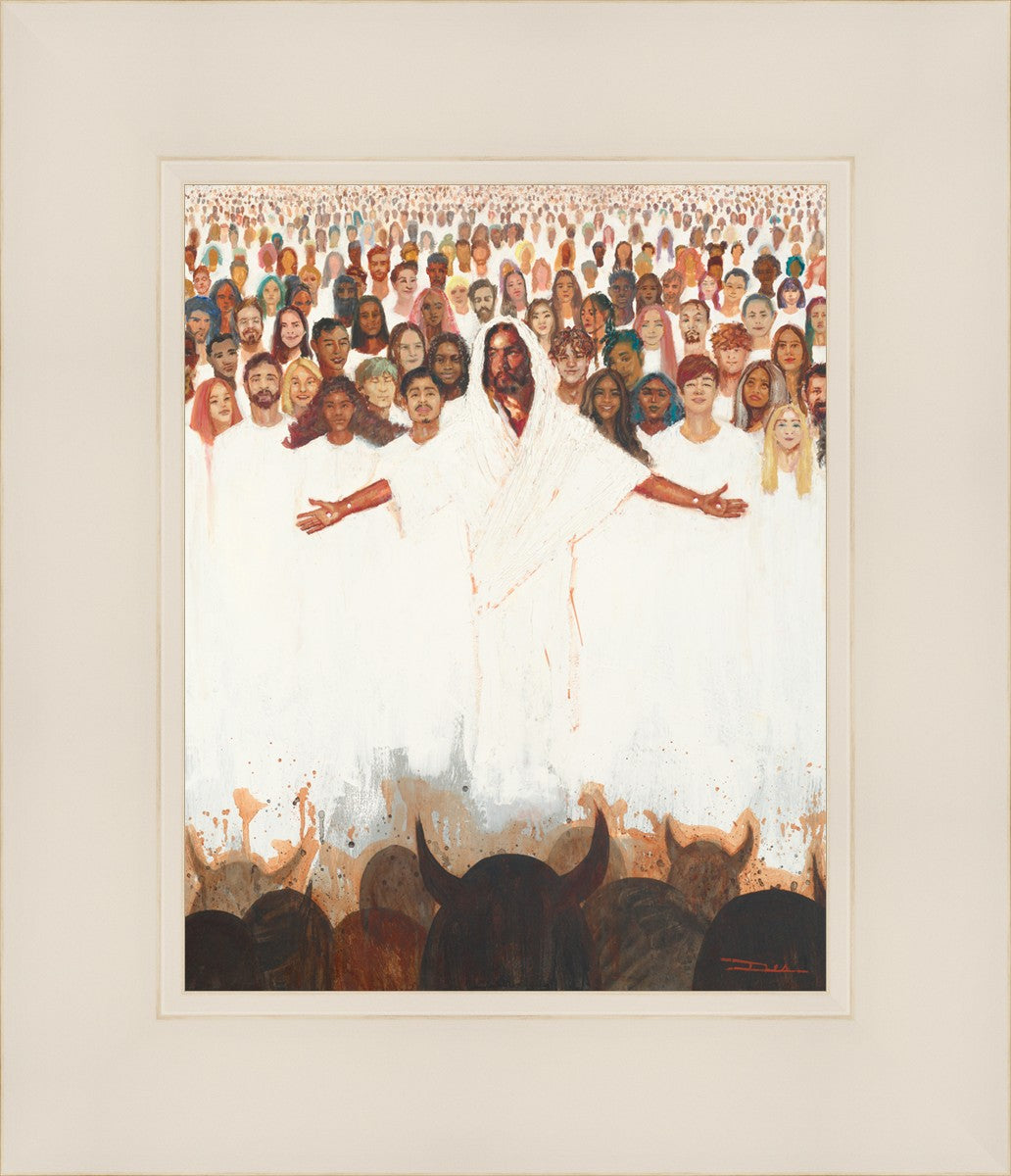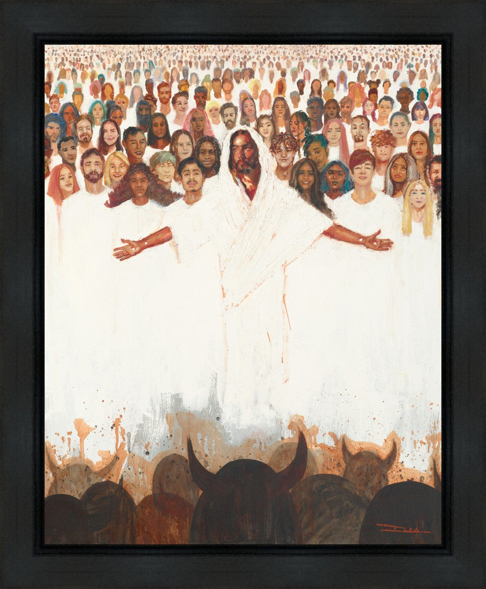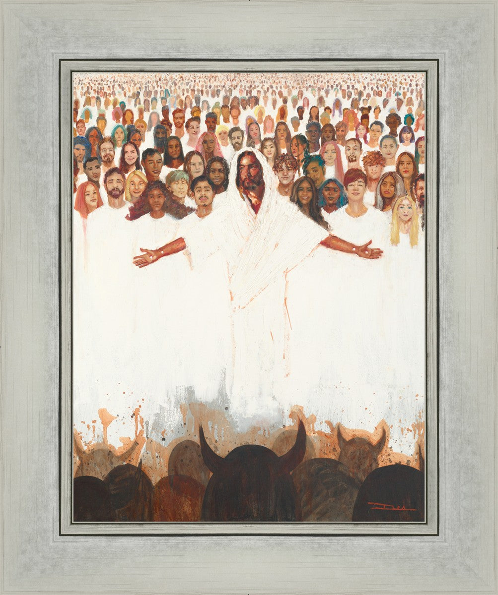 This painting was inspired during a time when I was battling my inner demons more than normal. It was a tender mercy to have this image come to mind along with the scripture "Fear not, they that be with us are more than they that be with them" (2 Kings 6:16)".