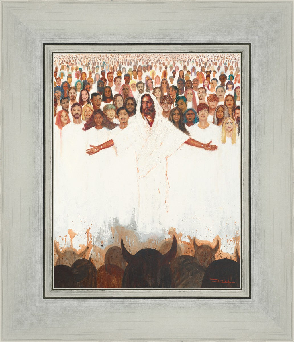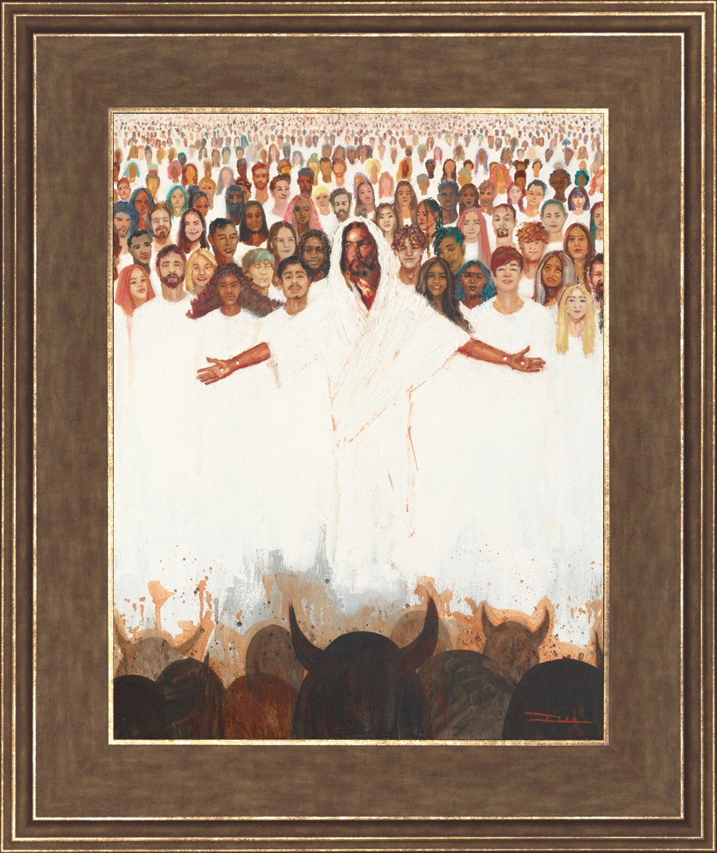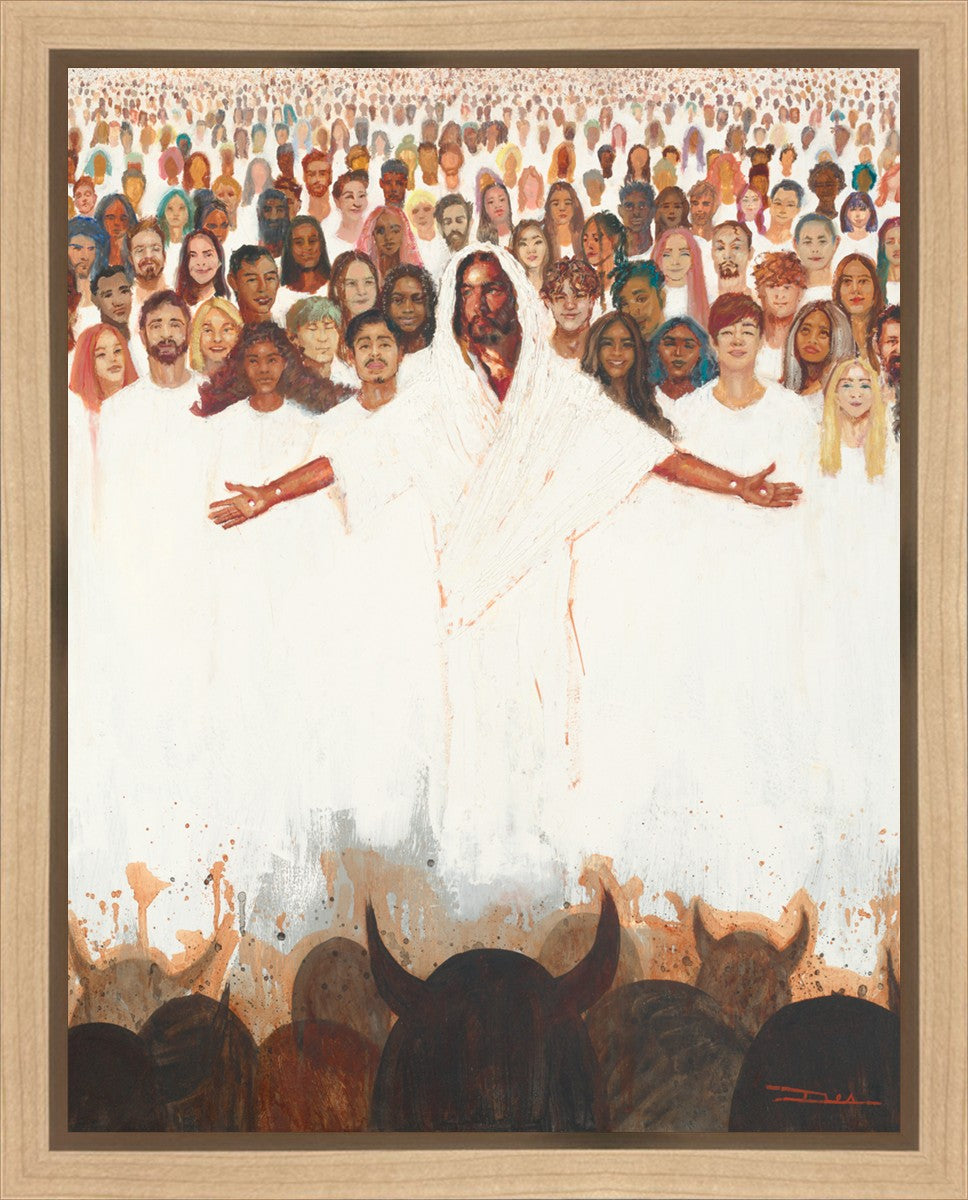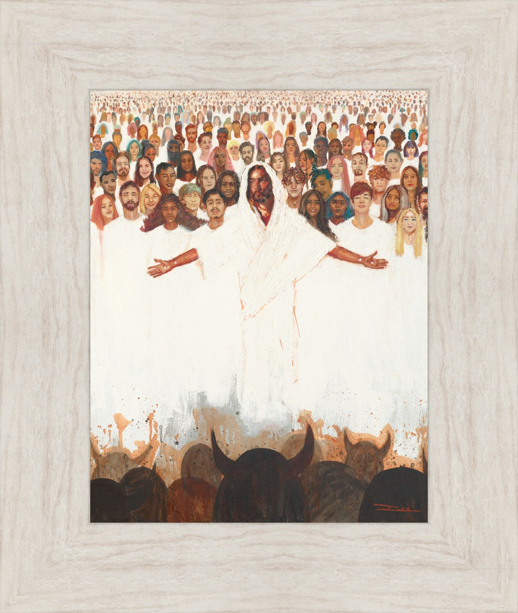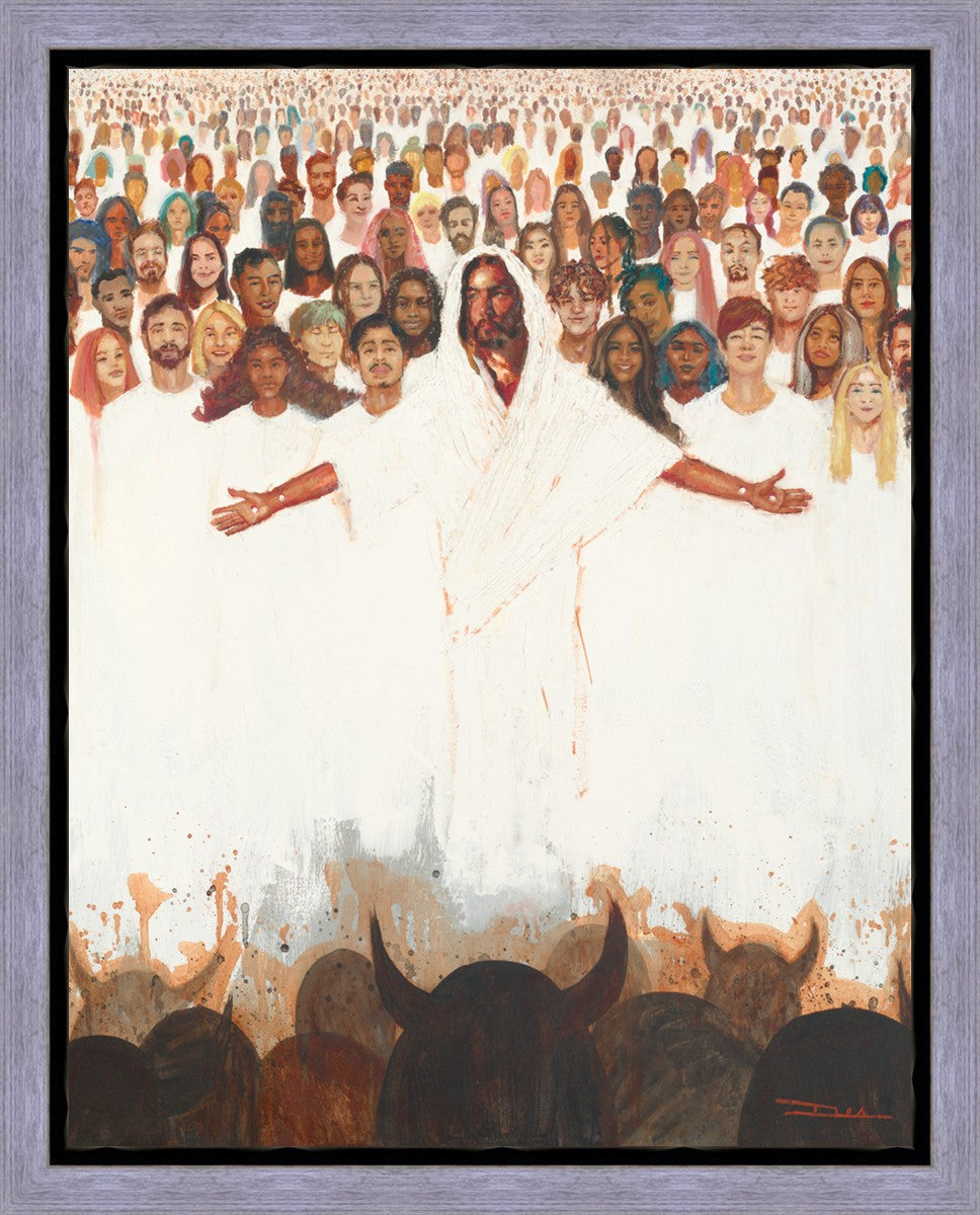 This painting was inspired during a time when I was battling my inner demons more than normal. It was a tender mercy to have this image come to mind along with the scripture "Fear not, they that be with us are more than they that be with them" (2 Kings 6:16)".