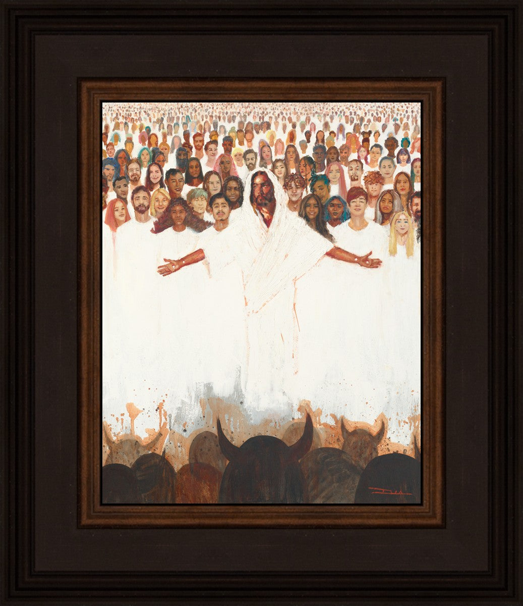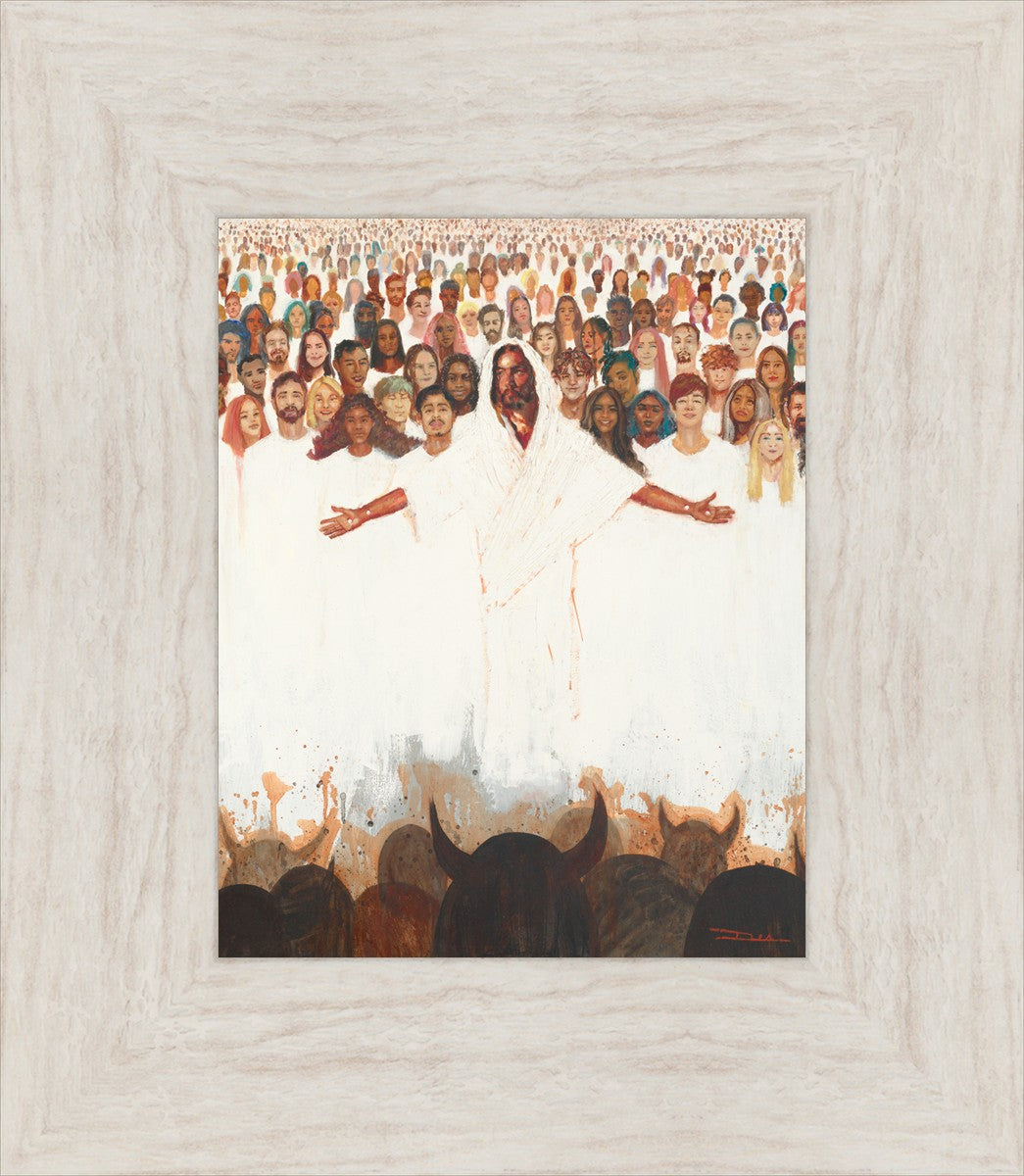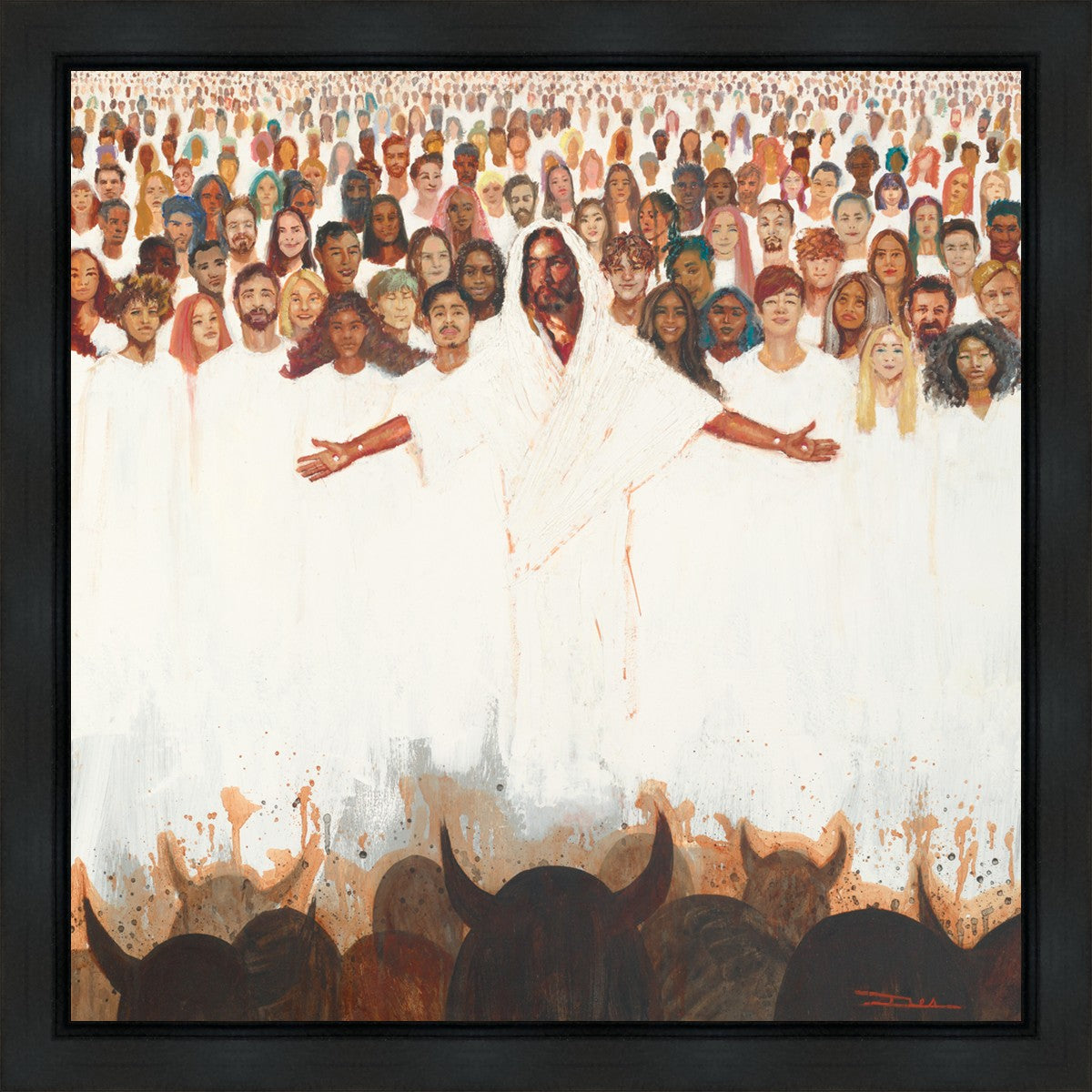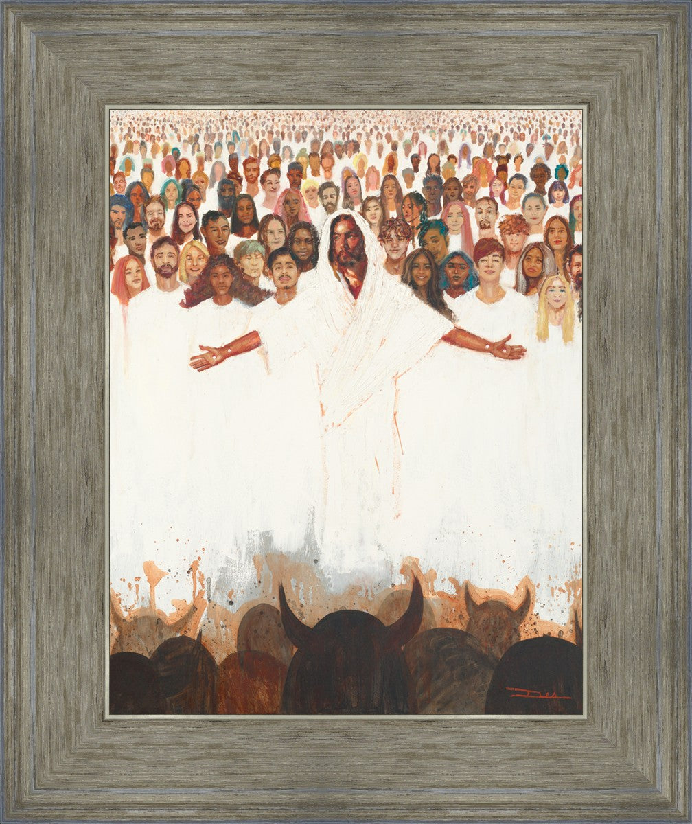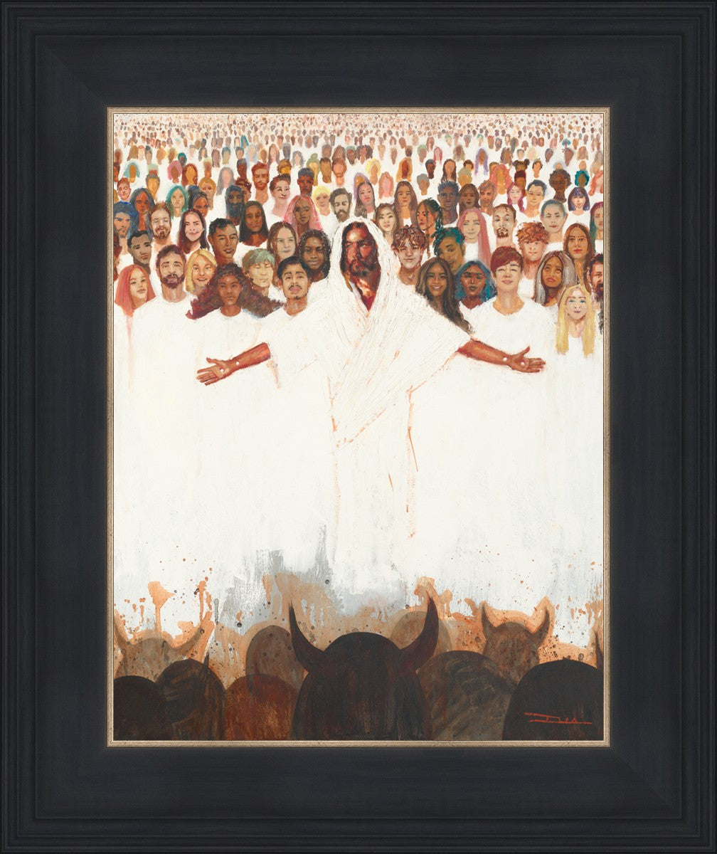 This painting was inspired during a time when I was battling my inner demons more than normal. It was a tender mercy to have this image come to mind along with the scripture "Fear not, they that be with us are more than they that be with them" (2 Kings 6:16)".