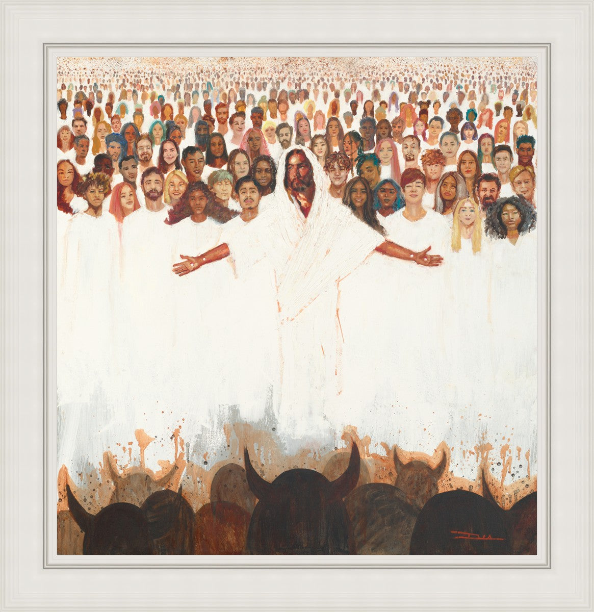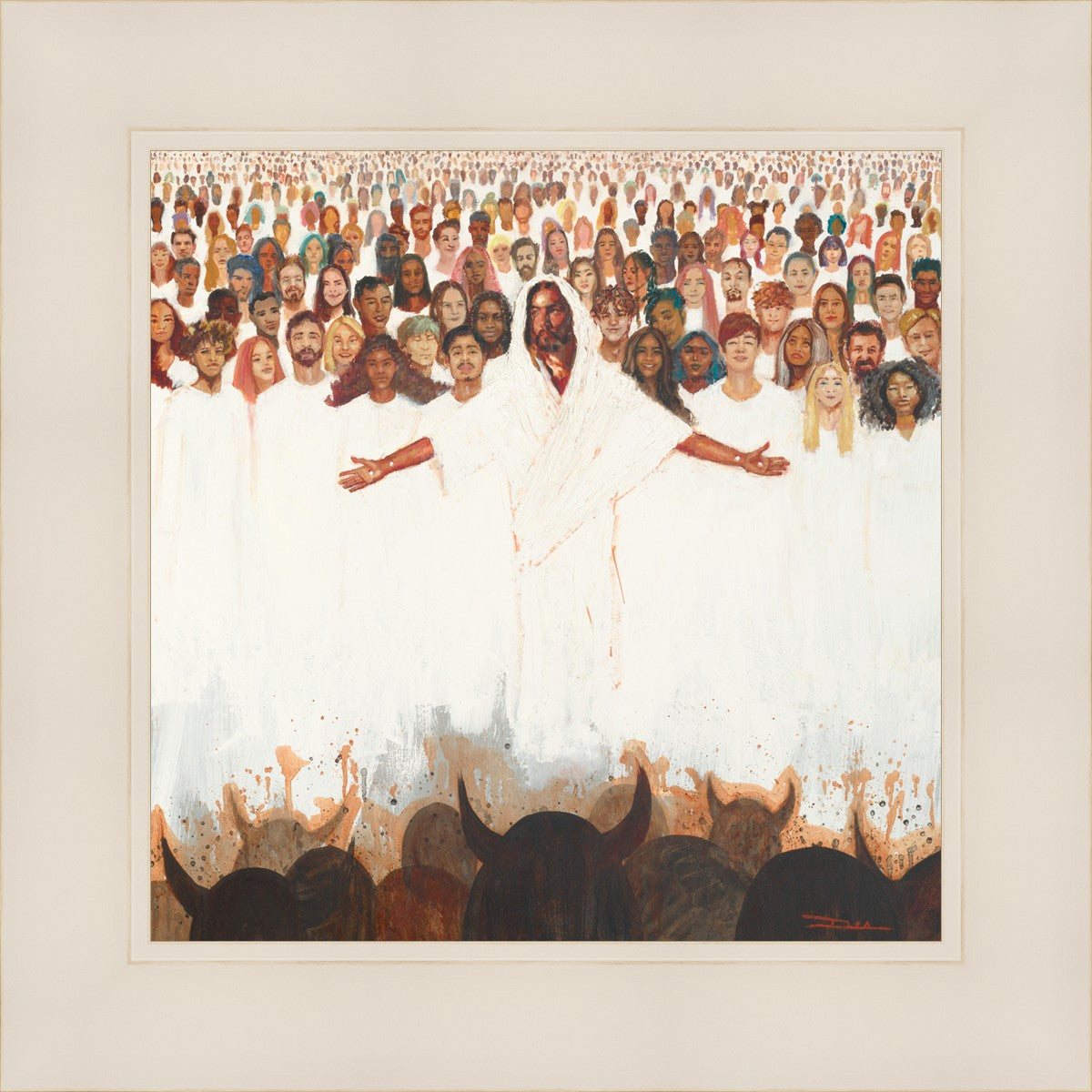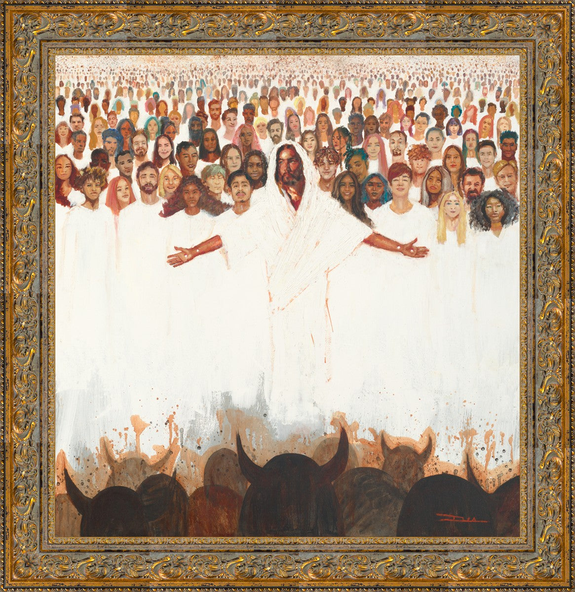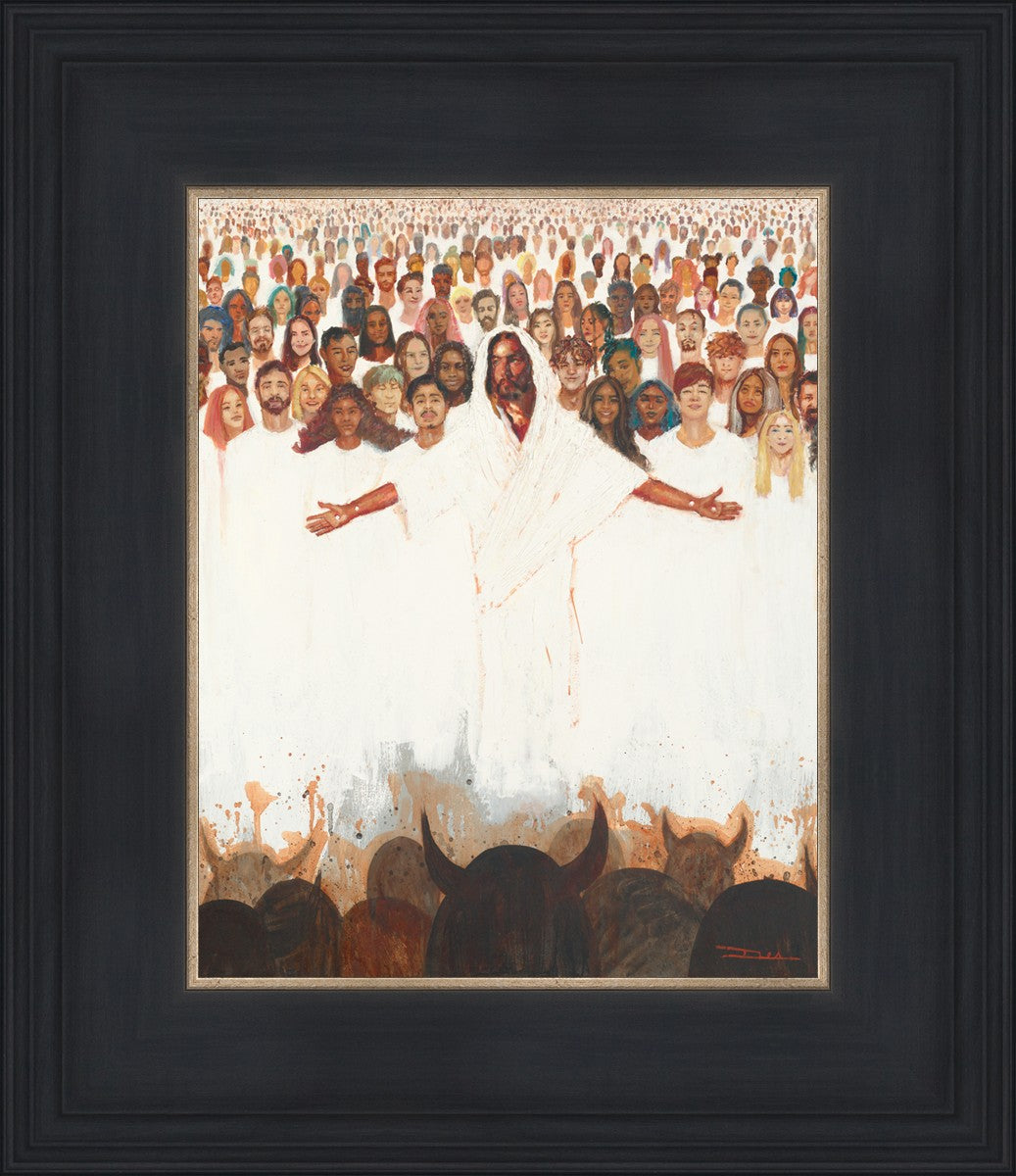 This painting was inspired during a time when I was battling my inner demons more than normal. It was a tender mercy to have this image come to mind along with the scripture "Fear not, they that be with us are more than they that be with them" (2 Kings 6:16)".