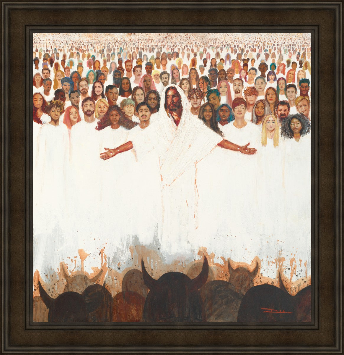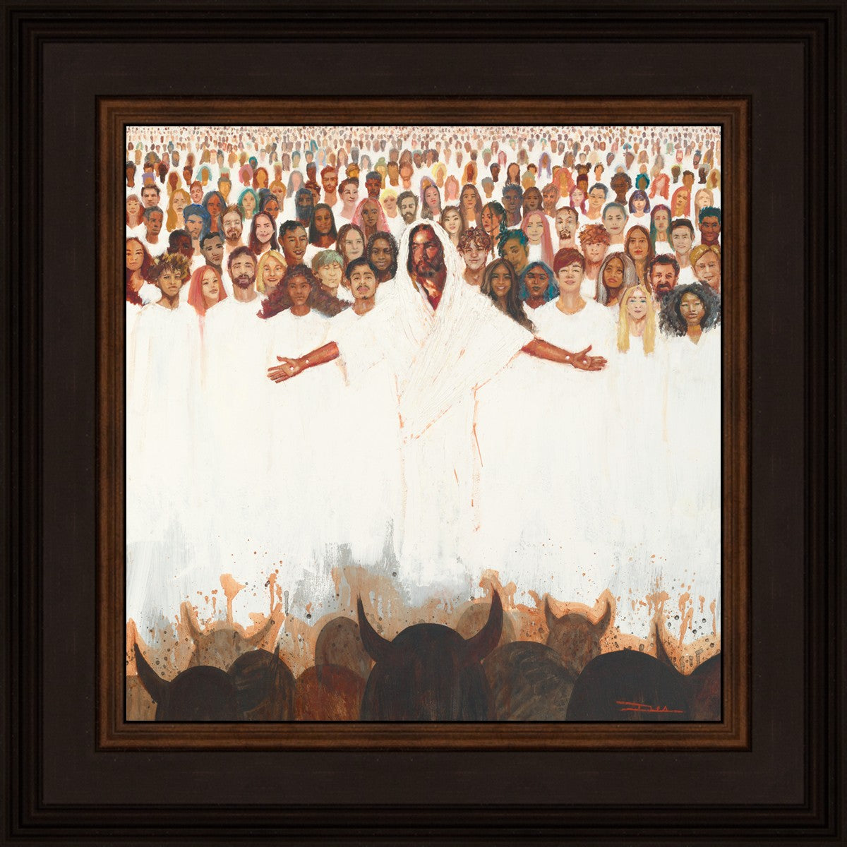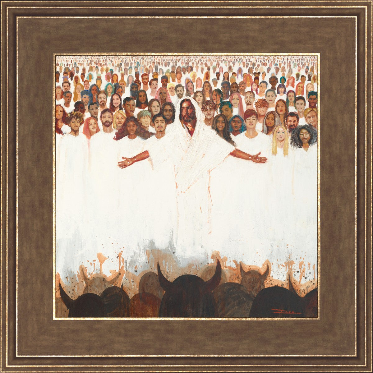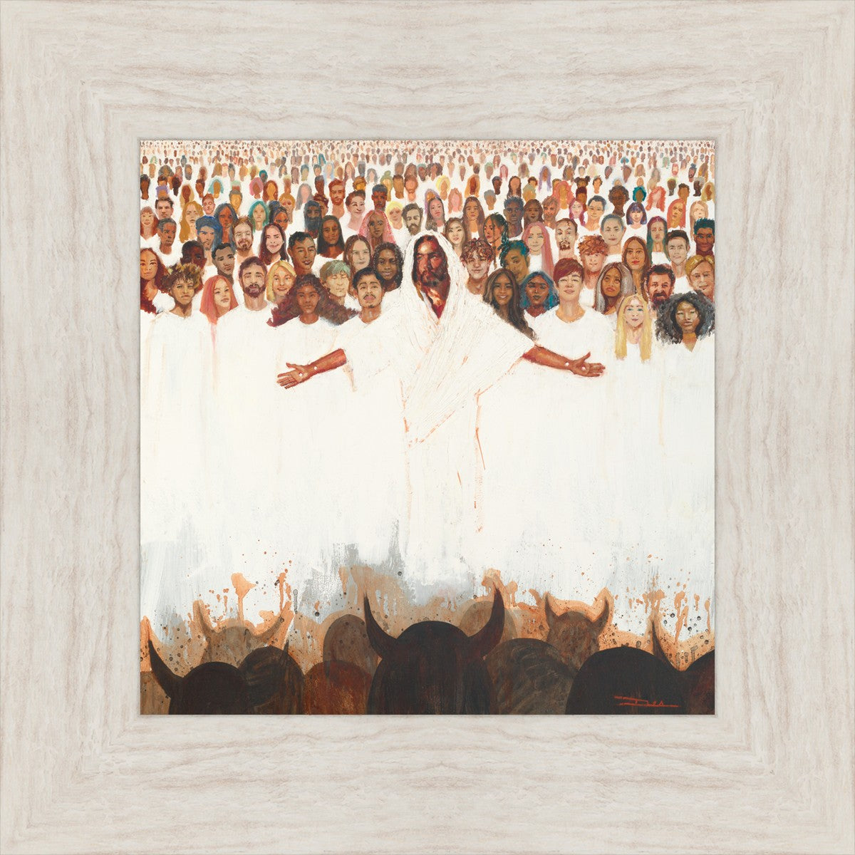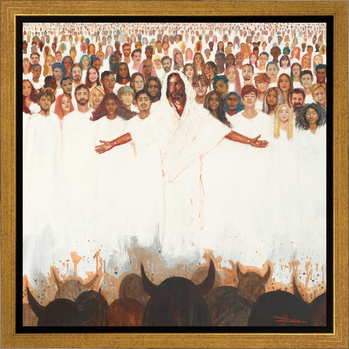 This painting was inspired during a time when I was battling my inner demons more than normal. It was a tender mercy to have this image come to mind along with the scripture "Fear not, they that be with us are more than they that be with them" (2 Kings 6:16)".