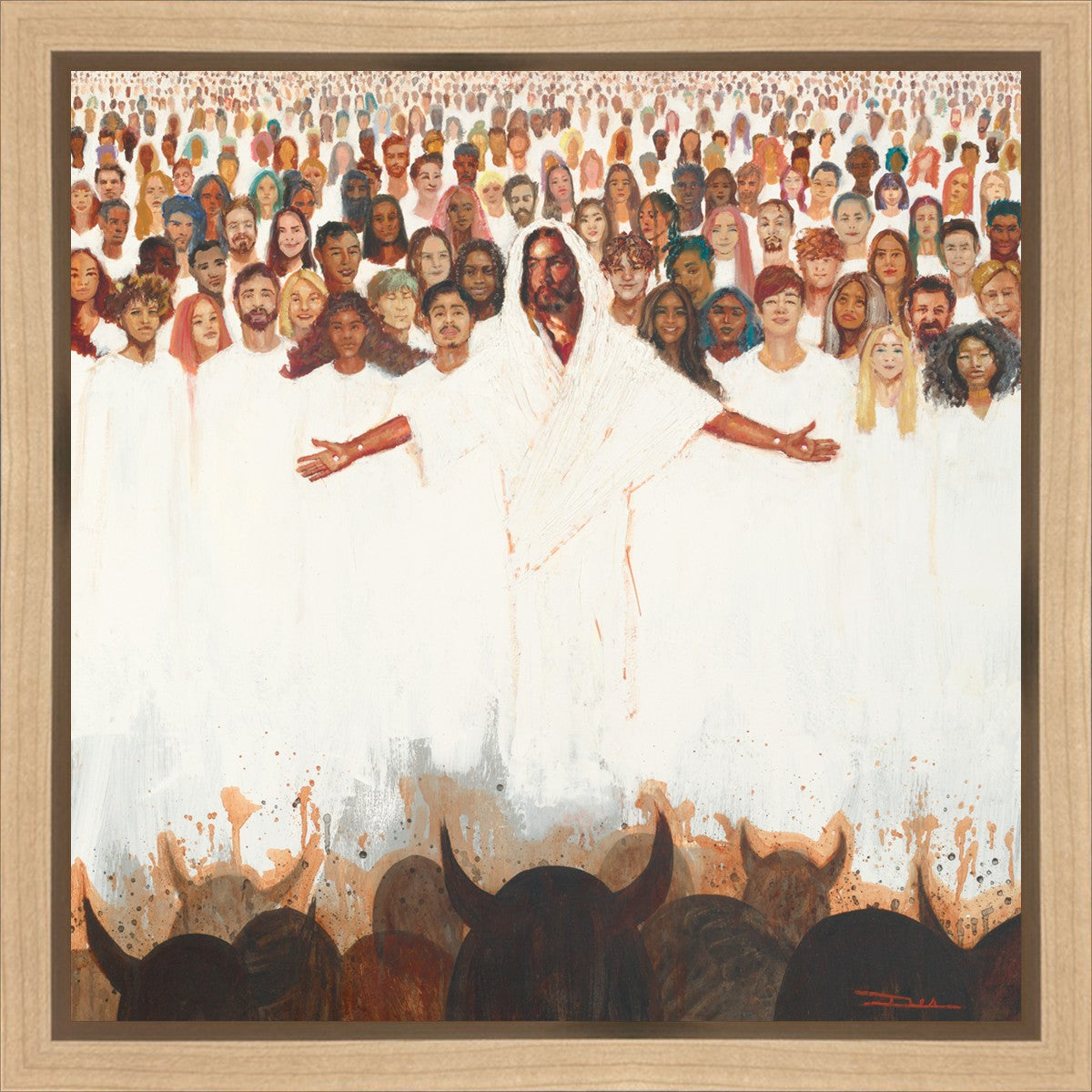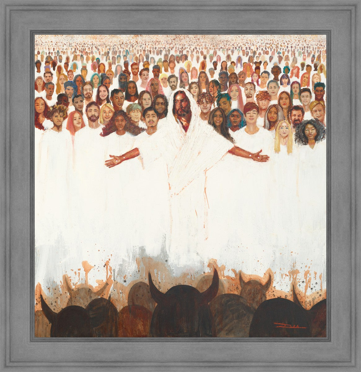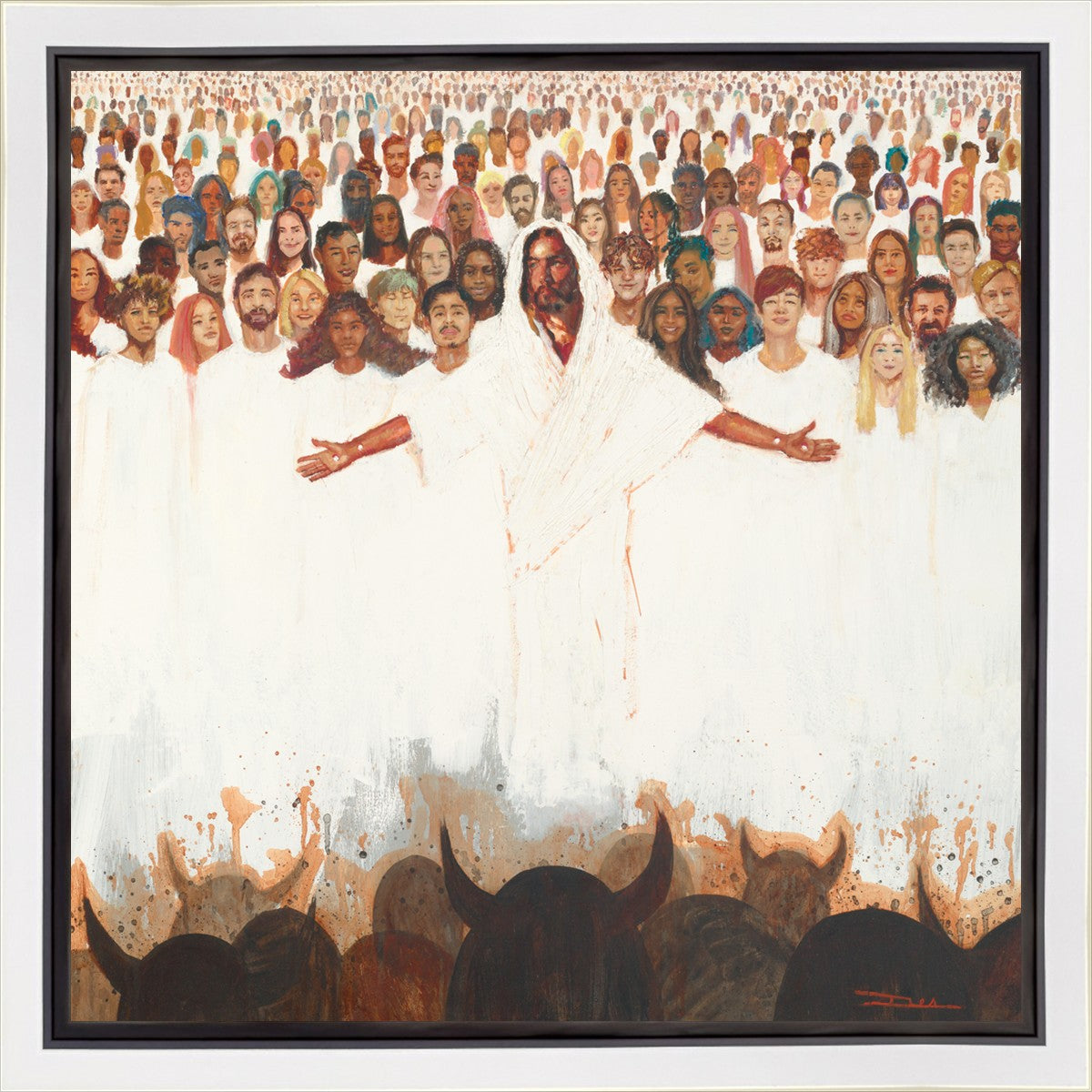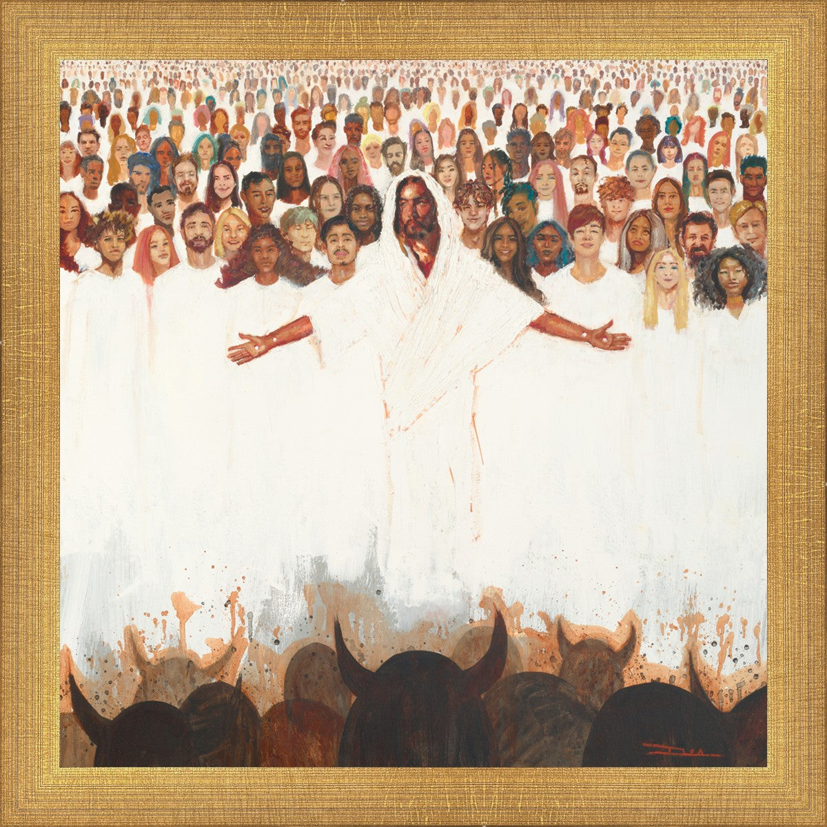 This painting was inspired during a time when I was battling my inner demons more than normal. It was a tender mercy to have this image come to mind along with the scripture "Fear not, they that be with us are more than they that be with them" (2 Kings 6:16)".
