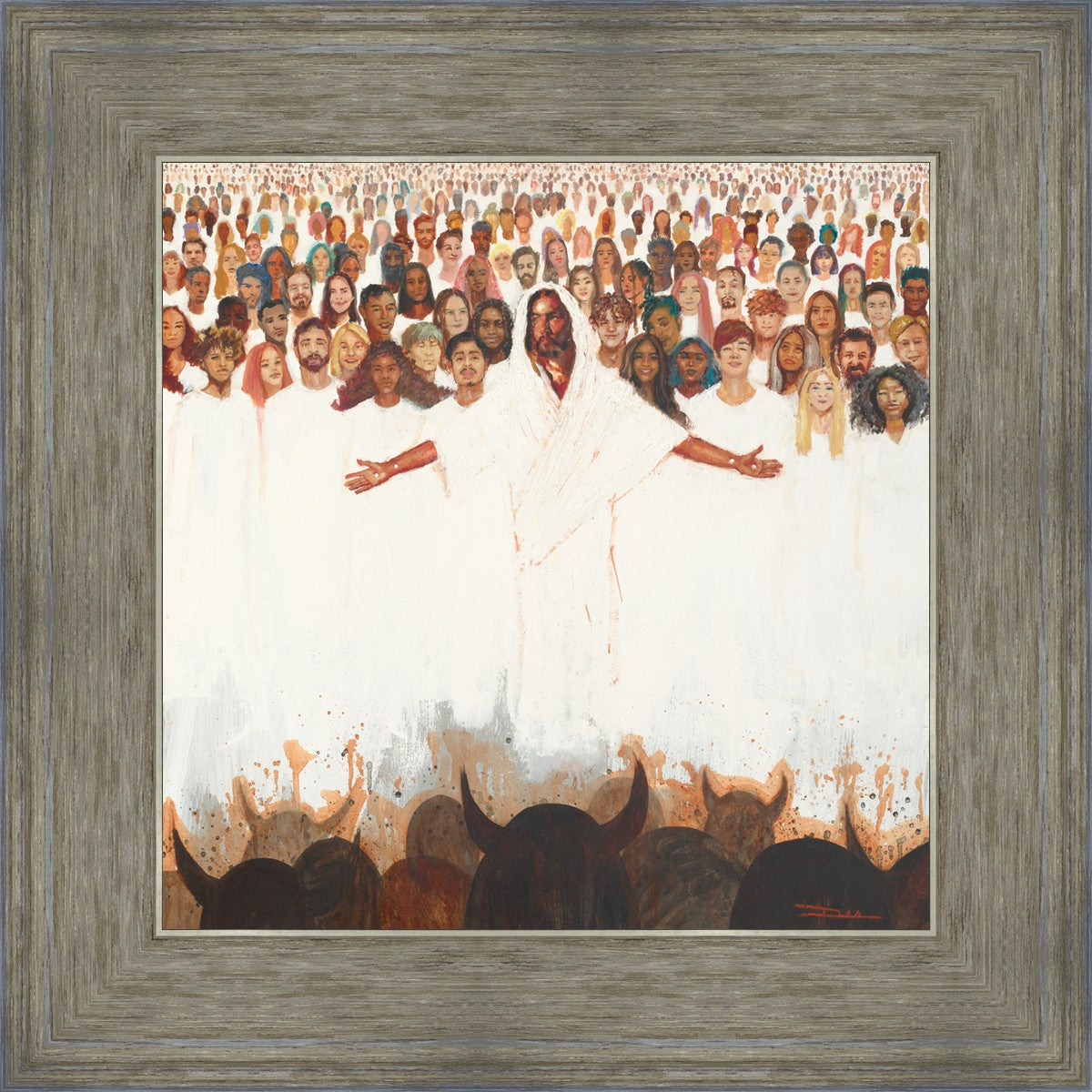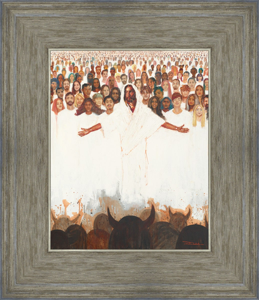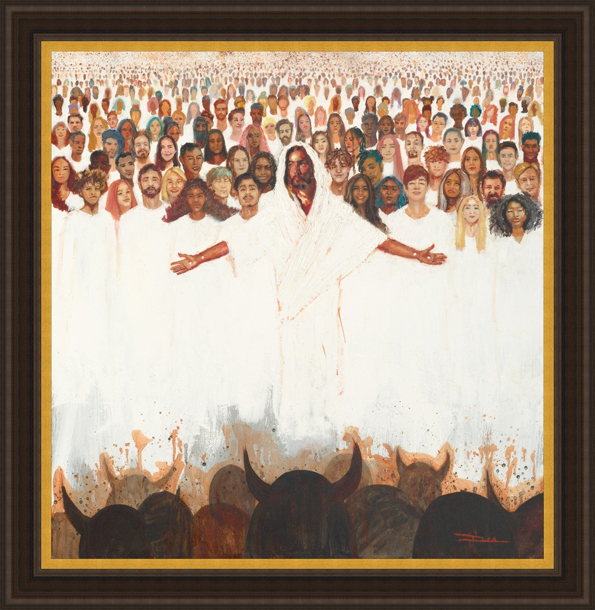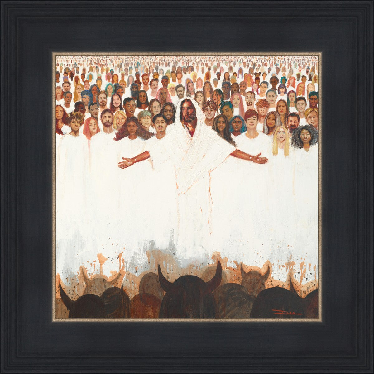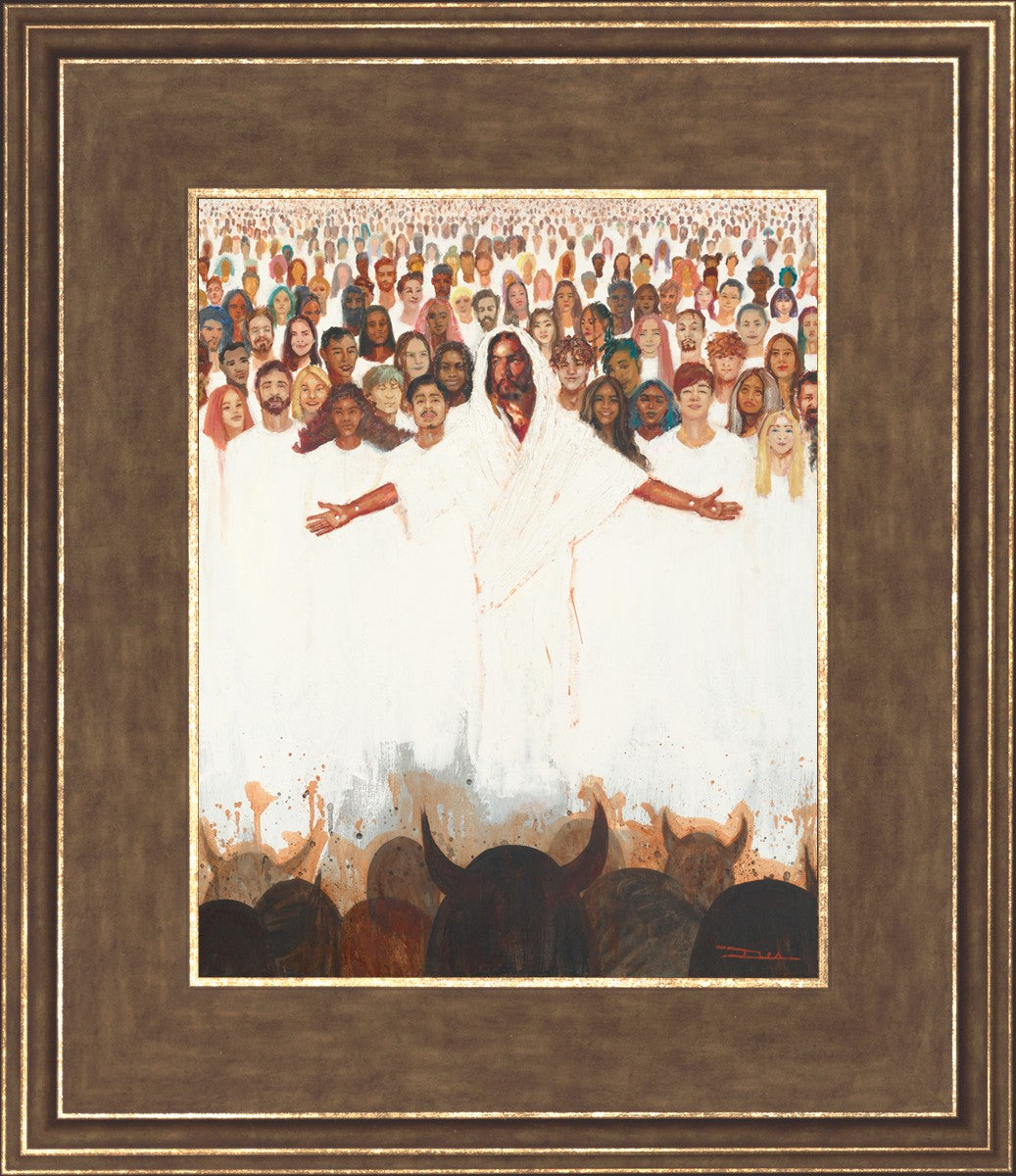 This painting was inspired during a time when I was battling my inner demons more than normal. It was a tender mercy to have this image come to mind along with the scripture "Fear not, they that be with us are more than they that be with them" (2 Kings 6:16)".
