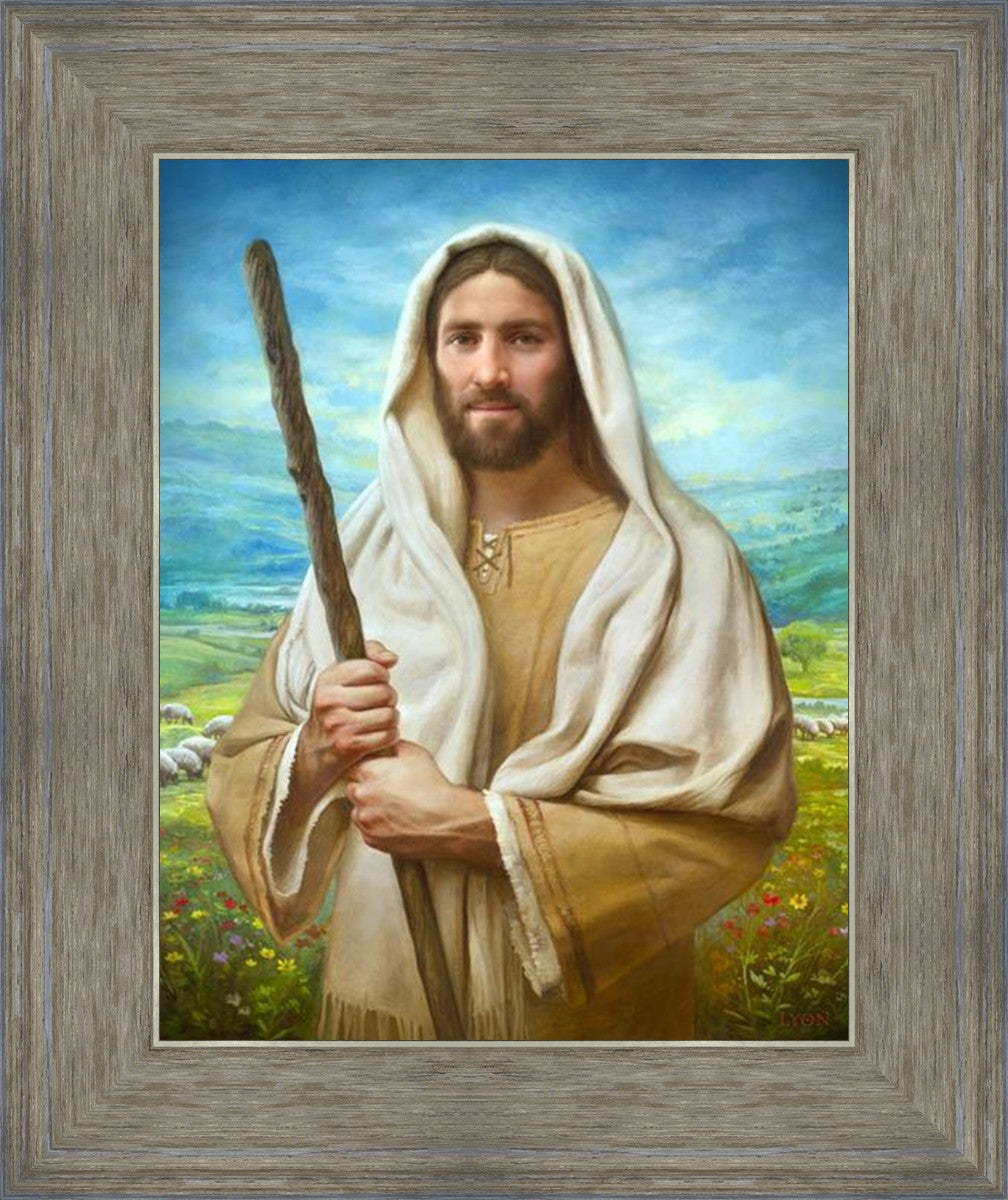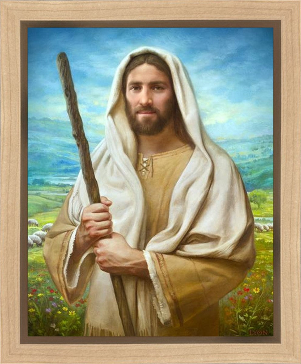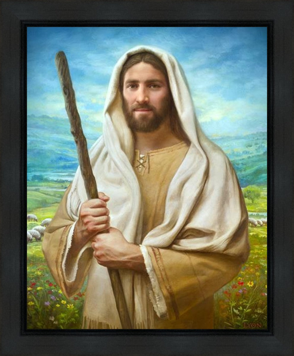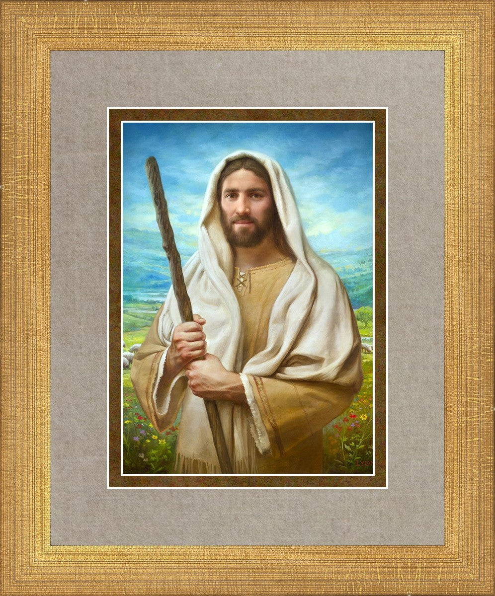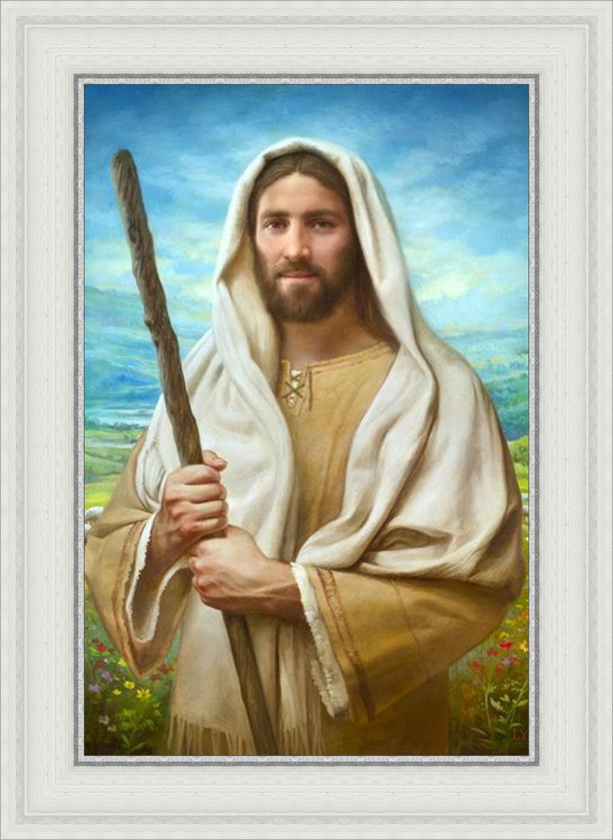 John 21:17 …Lovest thou me? And he said unto him, Lord, thou knowest all things; thou knowest that I love thee. Jesus saith unto him, Feed my sheep. **** In this painting, Christ is depicted in the role of the Good Shepherd. He holds firmly to the rod, representing the law of His Father. It symbolizes the commandments and teachings that help to keep us, His flock, safe. Christ’s countenance expresses the mercy of the Atonement and the path back to our Father. If we should stray from the safety of His flock in this life, we know that our Shepherd will find us if we call out to Him. We have also been given the charge, like Peter, to help our Savior in the work of bringing salvation to His flock, to feed His sheep. We will have the chance to bring nourishment to those who come across our way if we are willing to serve.