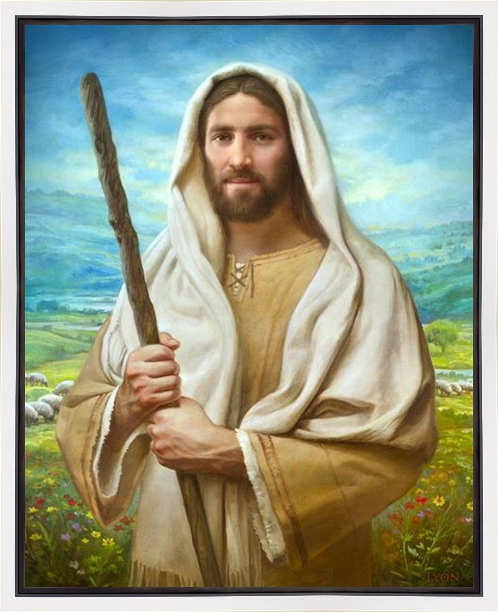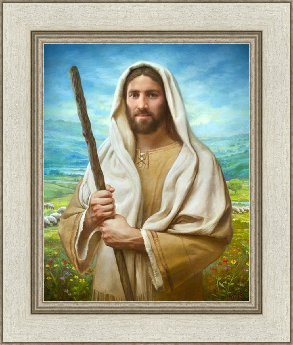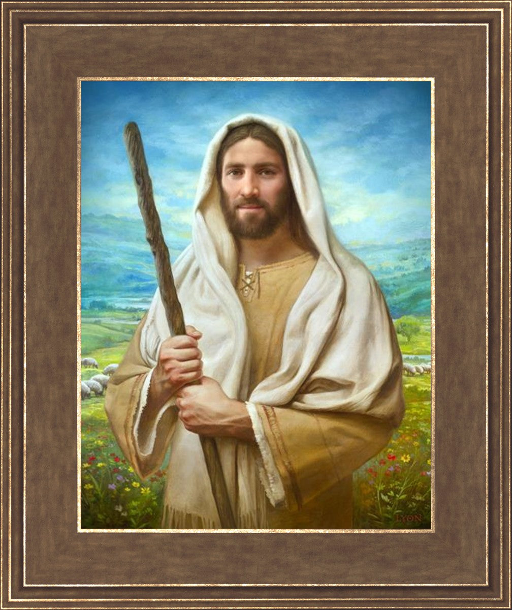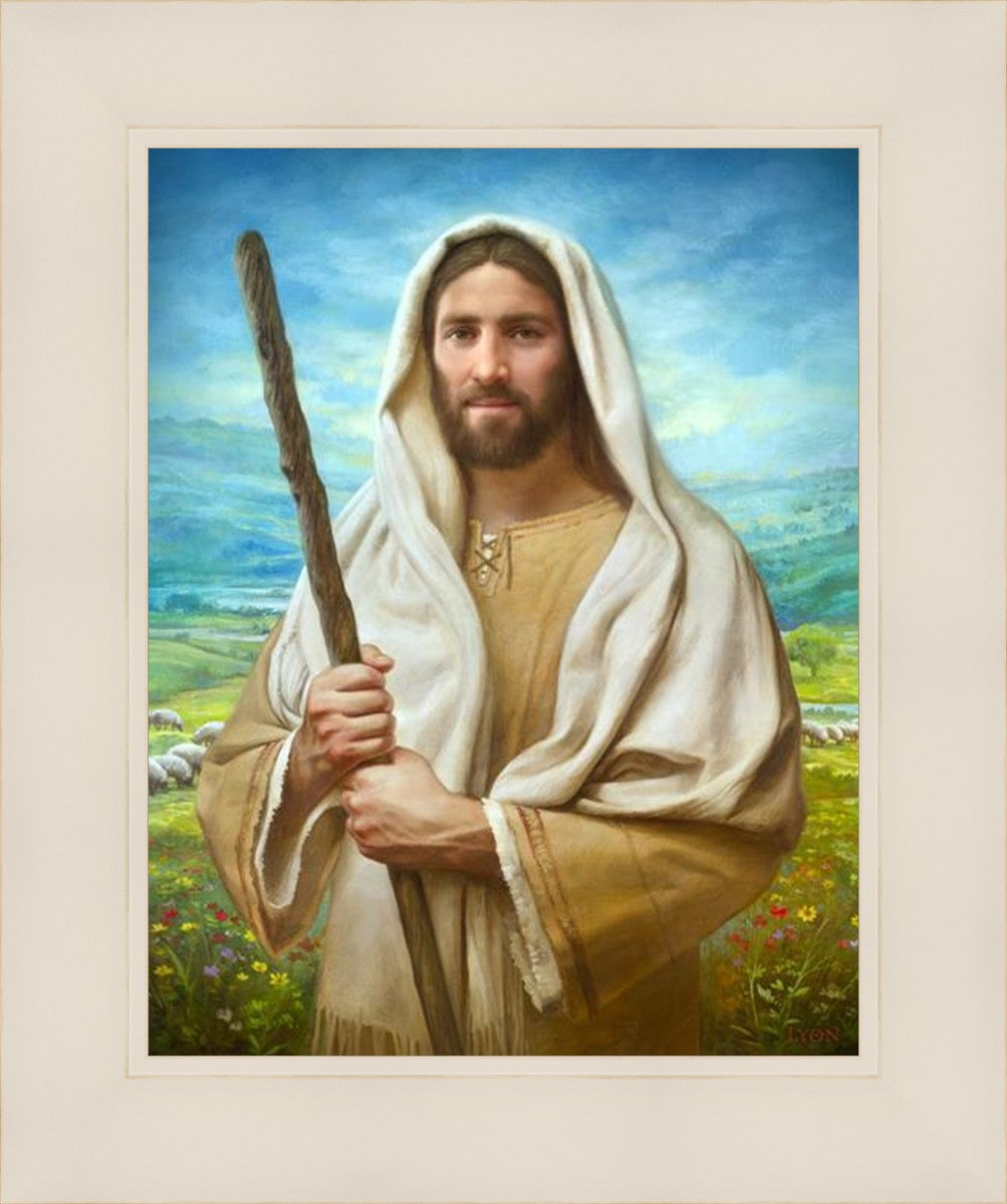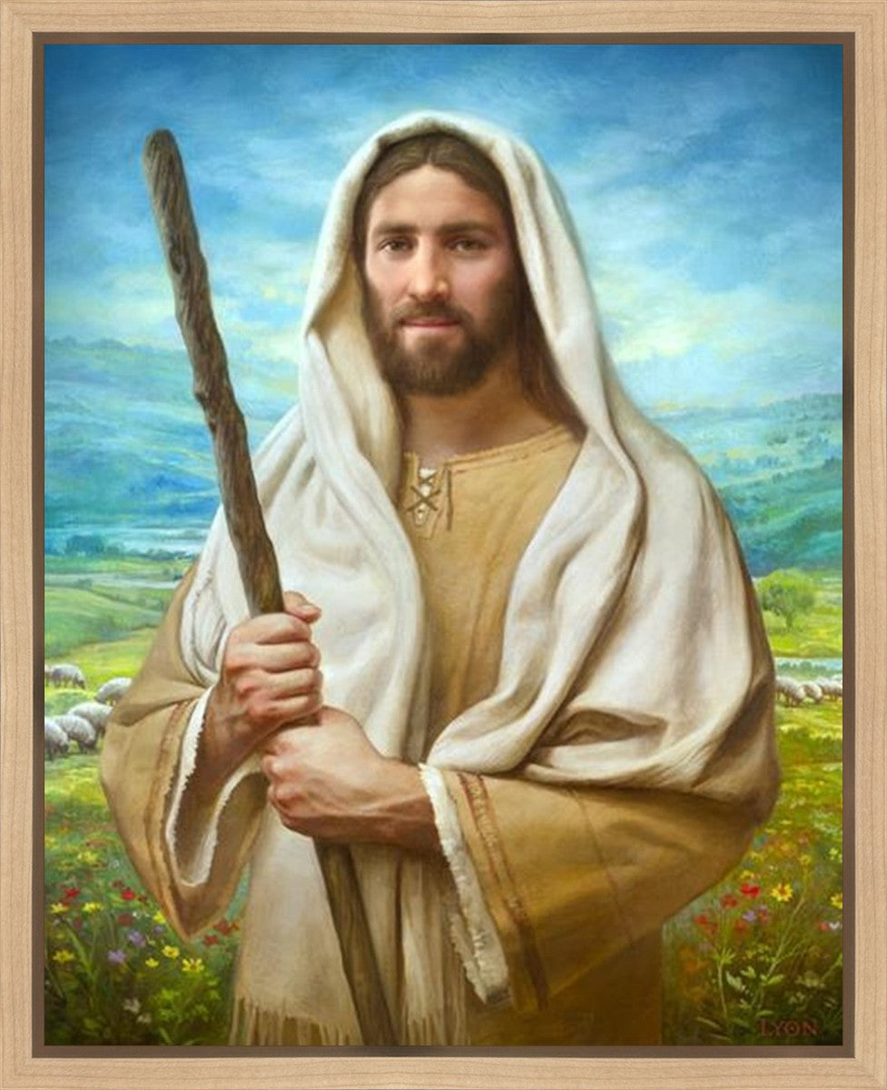 John 21:17 …Lovest thou me? And he said unto him, Lord, thou knowest all things; thou knowest that I love thee. Jesus saith unto him, Feed my sheep. **** In this painting, Christ is depicted in the role of the Good Shepherd. He holds firmly to the rod, representing the law of His Father. It symbolizes the commandments and teachings that help to keep us, His flock, safe. Christ’s countenance expresses the mercy of the Atonement and the path back to our Father. If we should stray from the safety of His flock in this life, we know that our Shepherd will find us if we call out to Him. We have also been given the charge, like Peter, to help our Savior in the work of bringing salvation to His flock, to feed His sheep. We will have the chance to bring nourishment to those who come across our way if we are willing to serve.