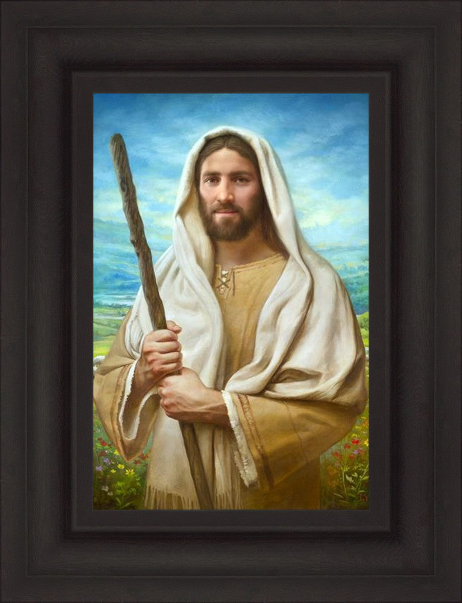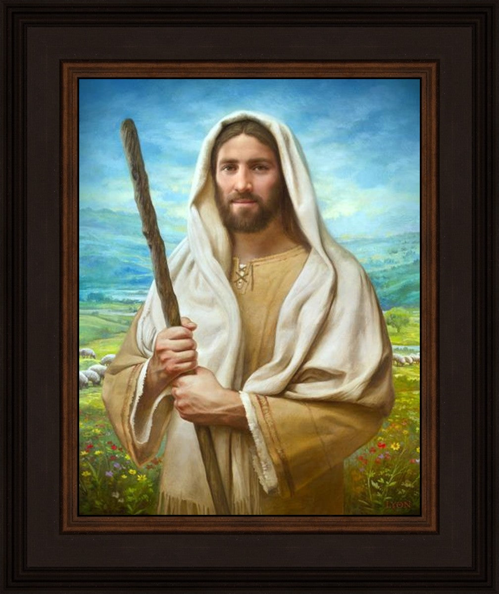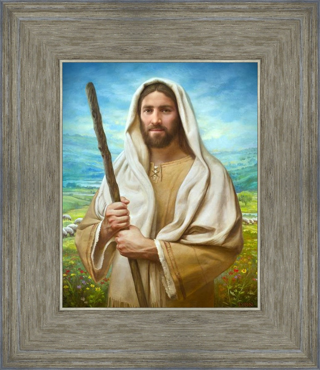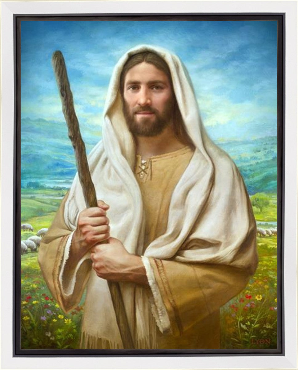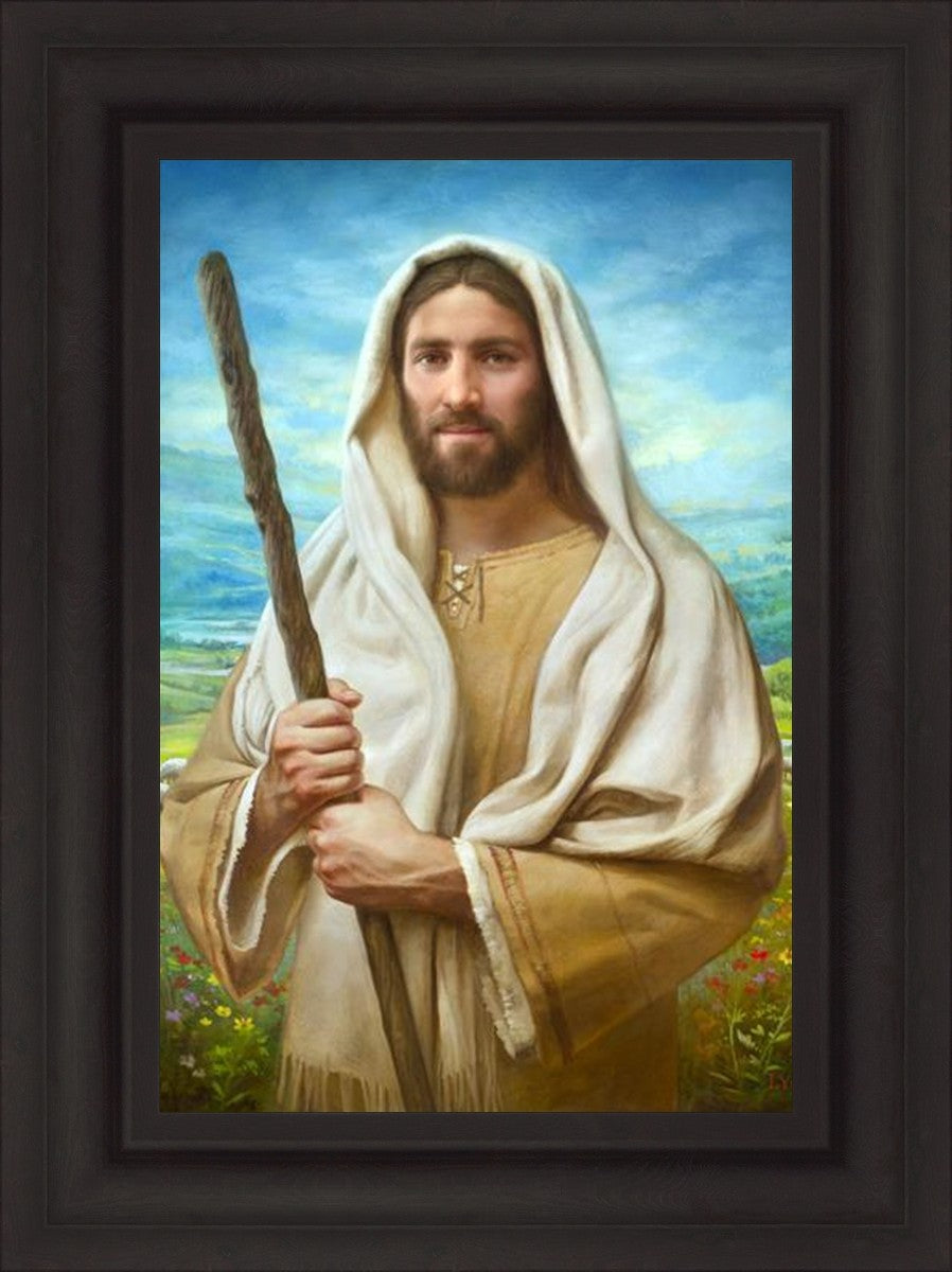 John 21:17 …Lovest thou me? And he said unto him, Lord, thou knowest all things; thou knowest that I love thee. Jesus saith unto him, Feed my sheep. **** In this painting, Christ is depicted in the role of the Good Shepherd. He holds firmly to the rod, representing the law of His Father. It symbolizes the commandments and teachings that help to keep us, His flock, safe. Christ’s countenance expresses the mercy of the Atonement and the path back to our Father. If we should stray from the safety of His flock in this life, we know that our Shepherd will find us if we call out to Him. We have also been given the charge, like Peter, to help our Savior in the work of bringing salvation to His flock, to feed His sheep. We will have the chance to bring nourishment to those who come across our way if we are willing to serve.