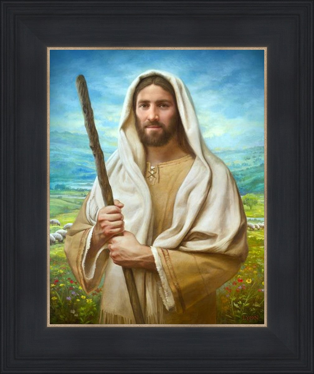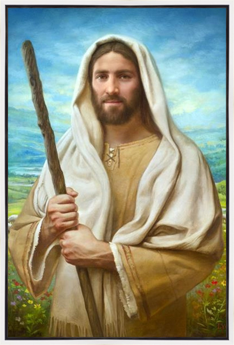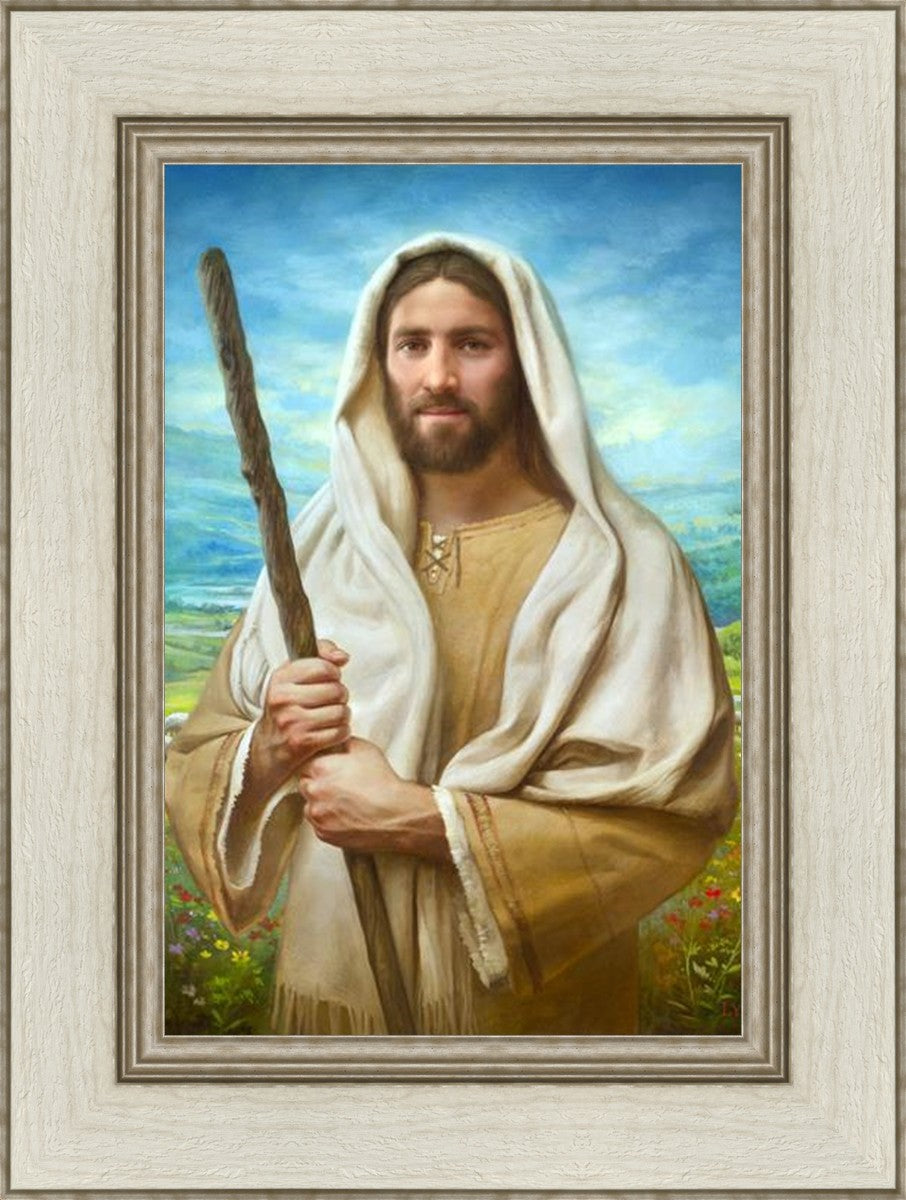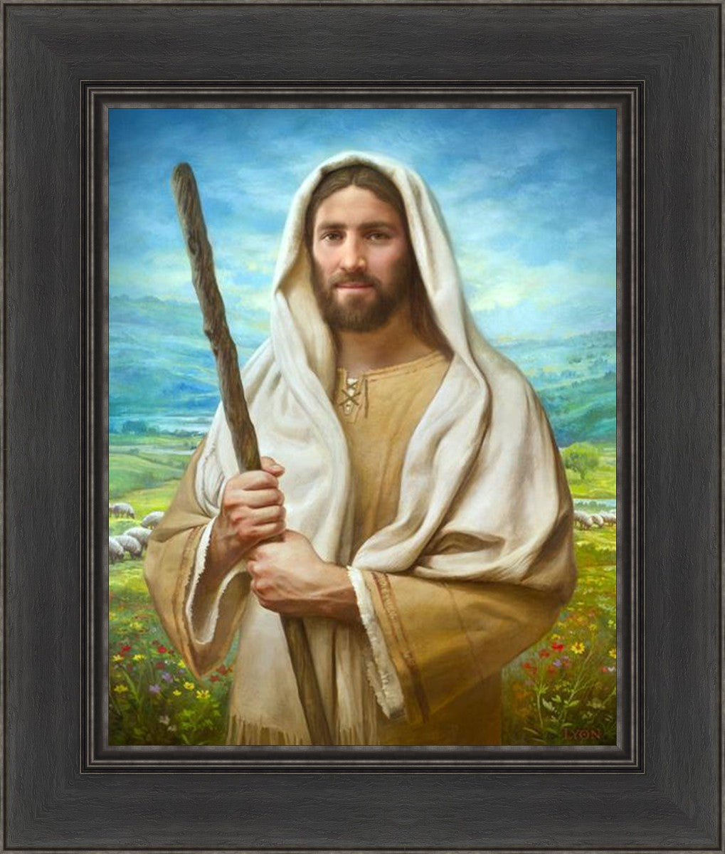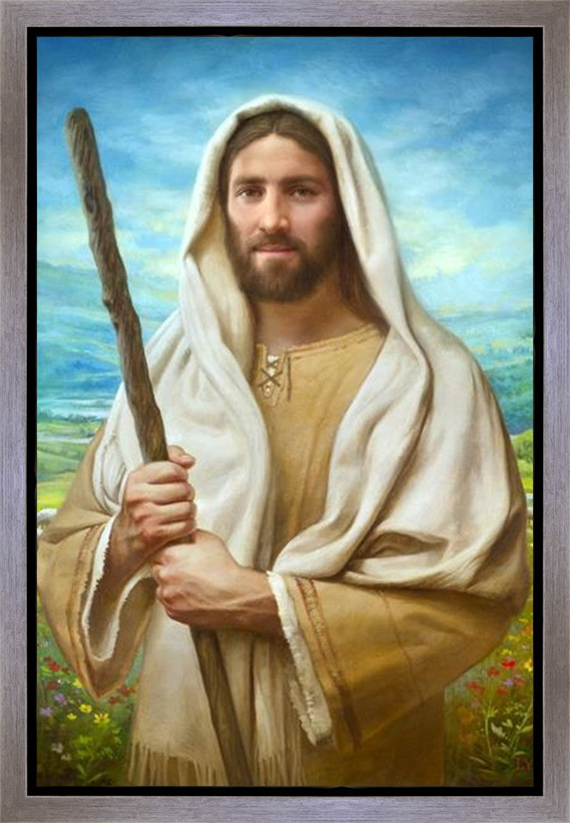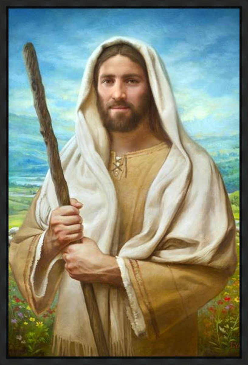 John 21:17 …Lovest thou me? And he said unto him, Lord, thou knowest all things; thou knowest that I love thee. Jesus saith unto him, Feed my sheep. **** In this painting, Christ is depicted in the role of the Good Shepherd. He holds firmly to the rod, representing the law of His Father. It symbolizes the commandments and teachings that help to keep us, His flock, safe. Christ’s countenance expresses the mercy of the Atonement and the path back to our Father. If we should stray from the safety of His flock in this life, we know that our Shepherd will find us if we call out to Him. We have also been given the charge, like Peter, to help our Savior in the work of bringing salvation to His flock, to feed His sheep. We will have the chance to bring nourishment to those who come across our way if we are willing to serve.