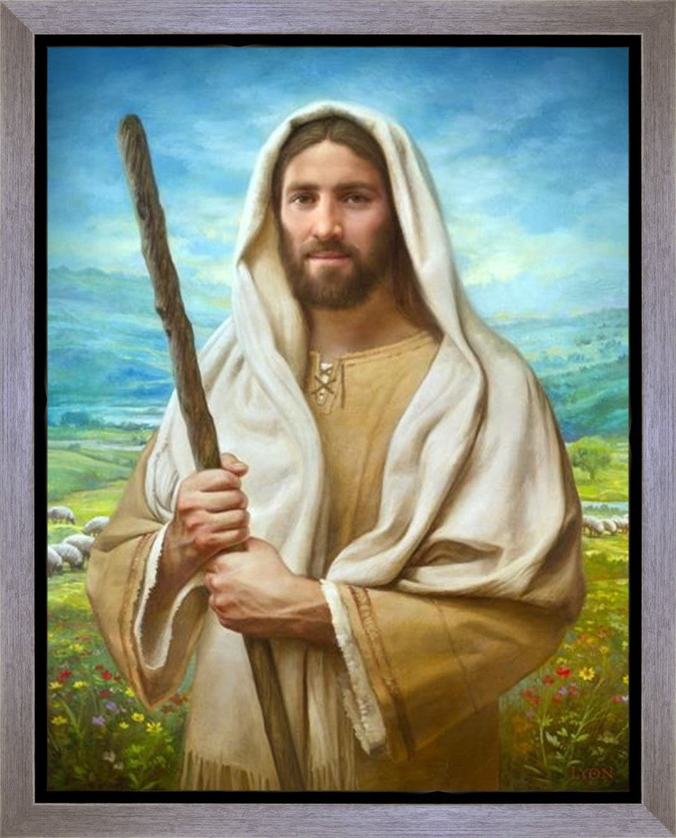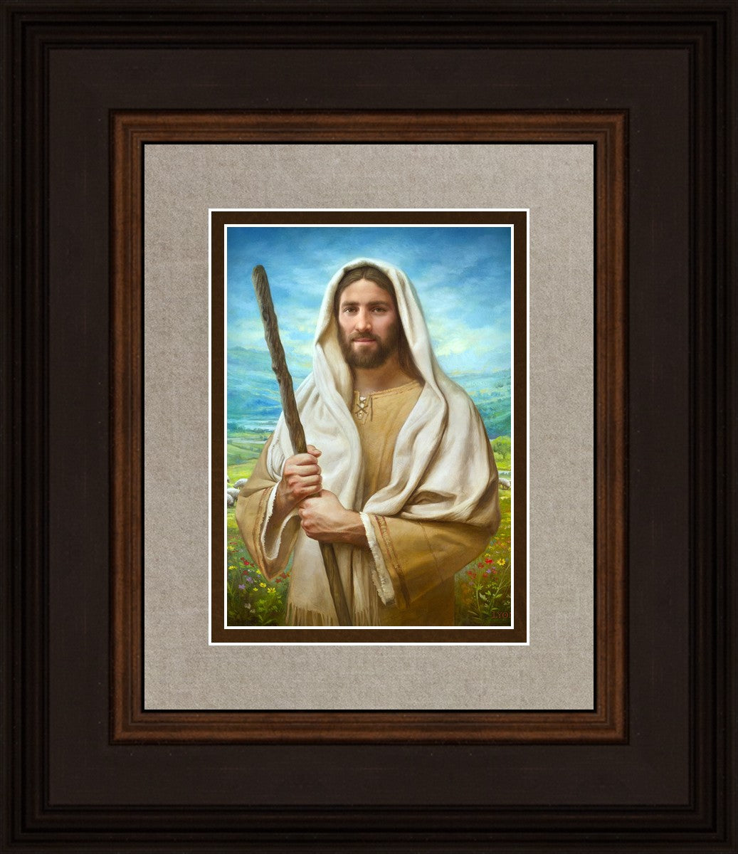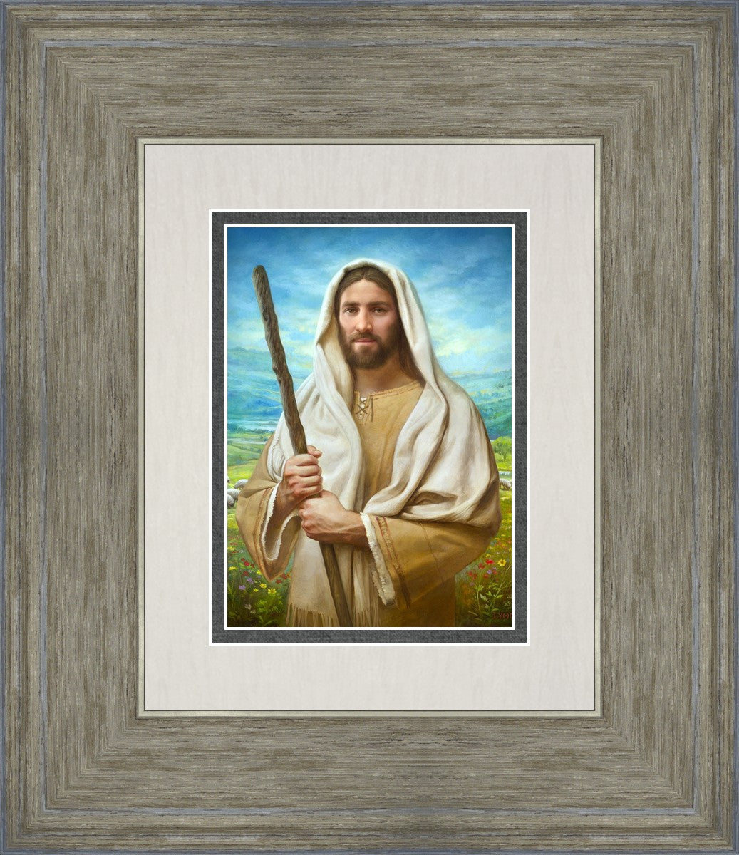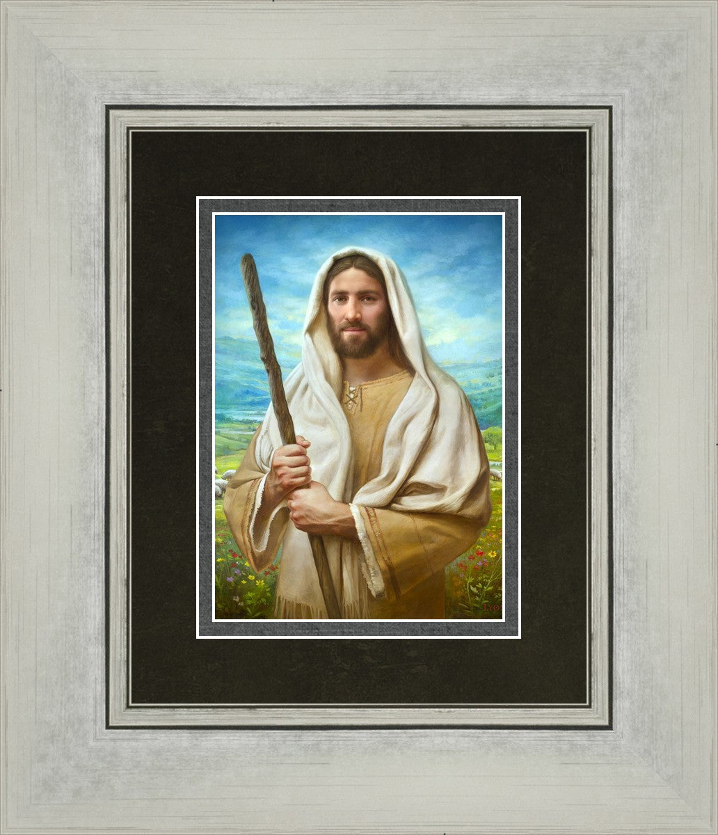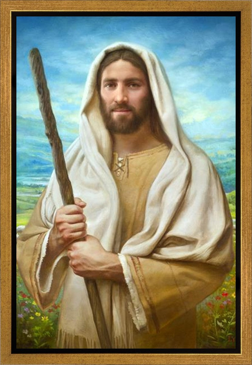 John 21:17 …Lovest thou me? And he said unto him, Lord, thou knowest all things; thou knowest that I love thee. Jesus saith unto him, Feed my sheep. **** In this painting, Christ is depicted in the role of the Good Shepherd. He holds firmly to the rod, representing the law of His Father. It symbolizes the commandments and teachings that help to keep us, His flock, safe. Christ’s countenance expresses the mercy of the Atonement and the path back to our Father. If we should stray from the safety of His flock in this life, we know that our Shepherd will find us if we call out to Him. We have also been given the charge, like Peter, to help our Savior in the work of bringing salvation to His flock, to feed His sheep. We will have the chance to bring nourishment to those who come across our way if we are willing to serve.