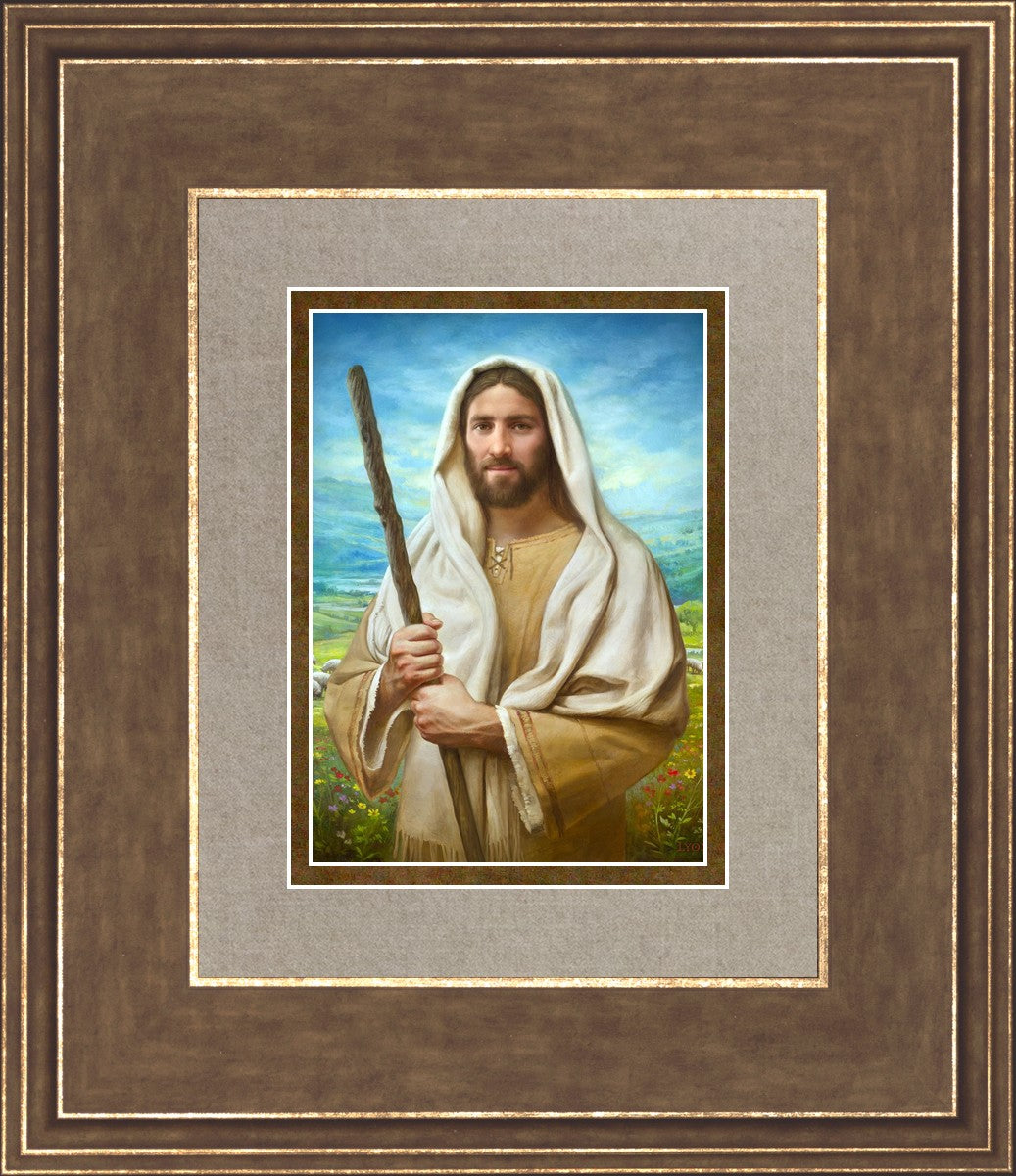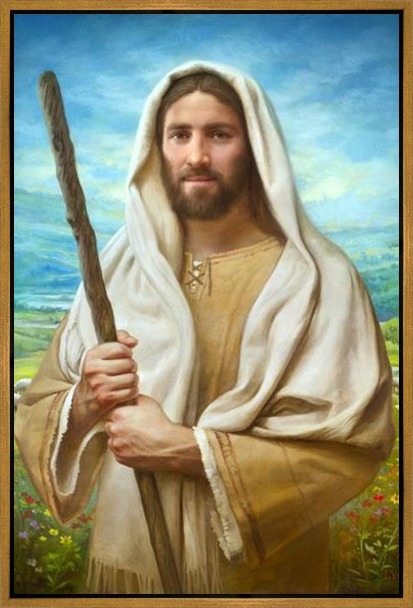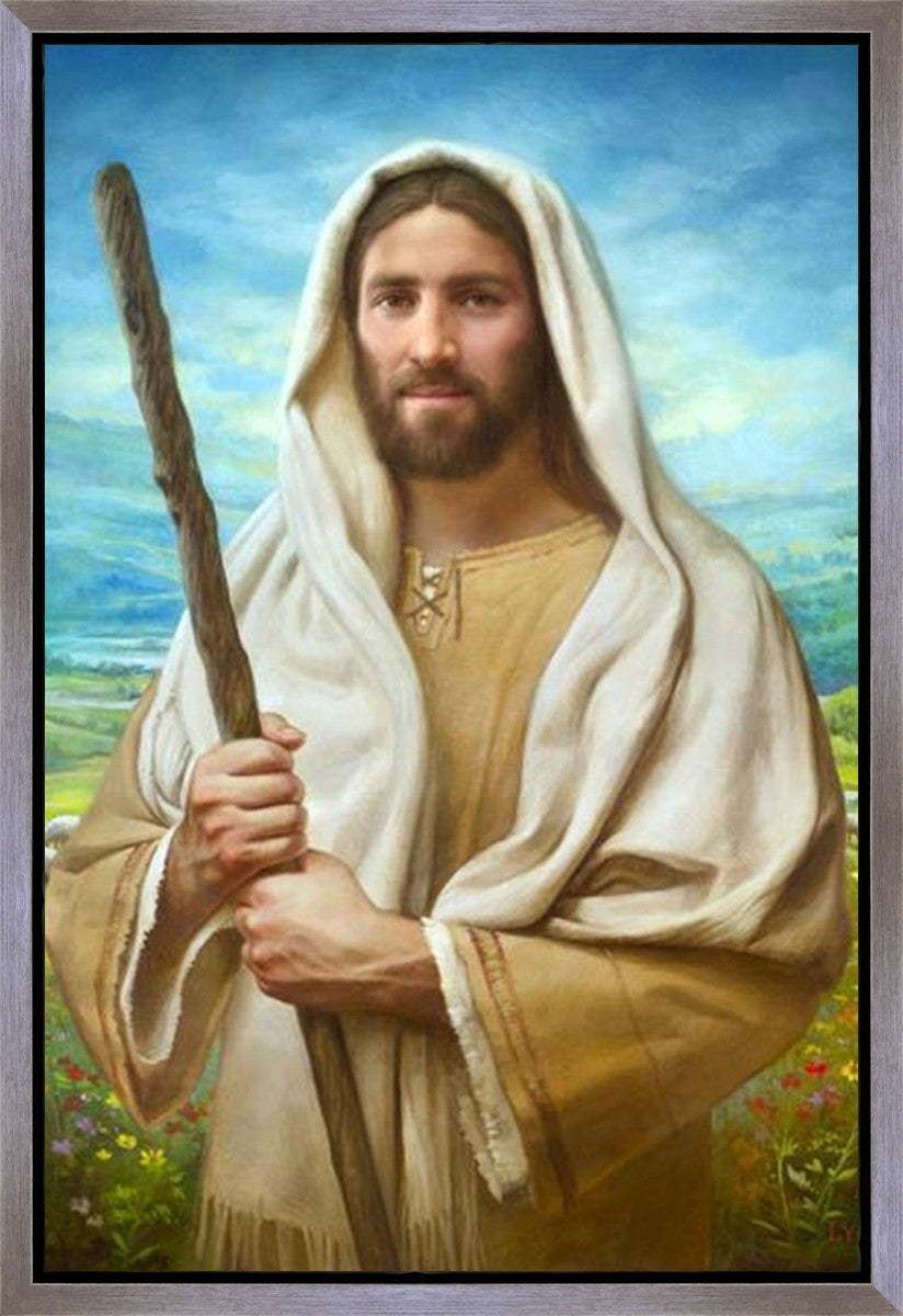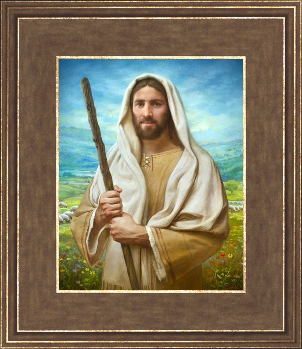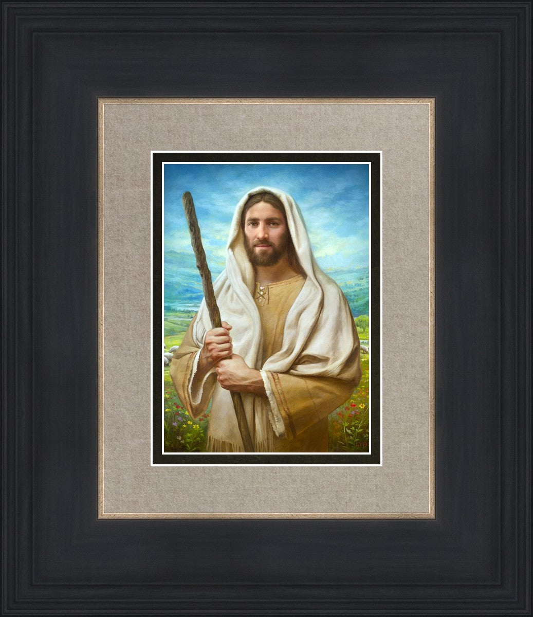 John 21:17 …Lovest thou me? And he said unto him, Lord, thou knowest all things; thou knowest that I love thee. Jesus saith unto him, Feed my sheep. **** In this painting, Christ is depicted in the role of the Good Shepherd. He holds firmly to the rod, representing the law of His Father. It symbolizes the commandments and teachings that help to keep us, His flock, safe. Christ’s countenance expresses the mercy of the Atonement and the path back to our Father. If we should stray from the safety of His flock in this life, we know that our Shepherd will find us if we call out to Him. We have also been given the charge, like Peter, to help our Savior in the work of bringing salvation to His flock, to feed His sheep. We will have the chance to bring nourishment to those who come across our way if we are willing to serve.