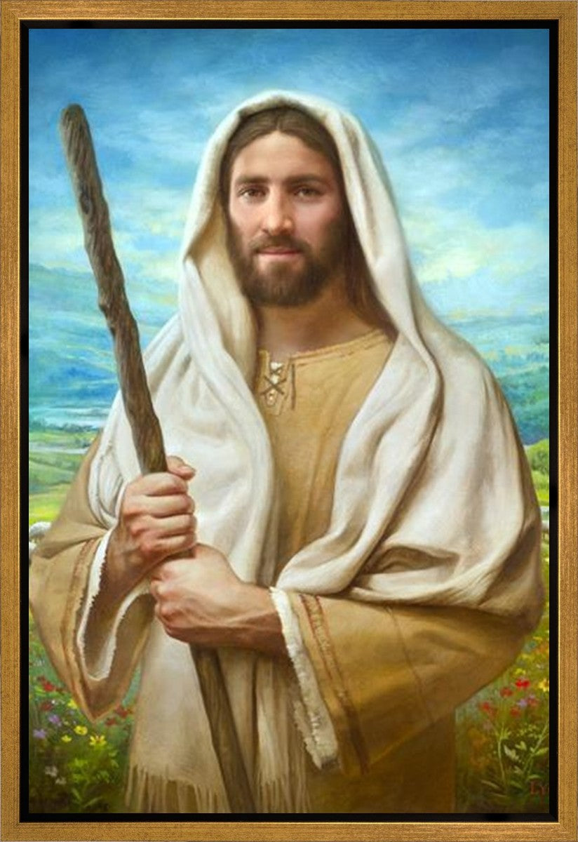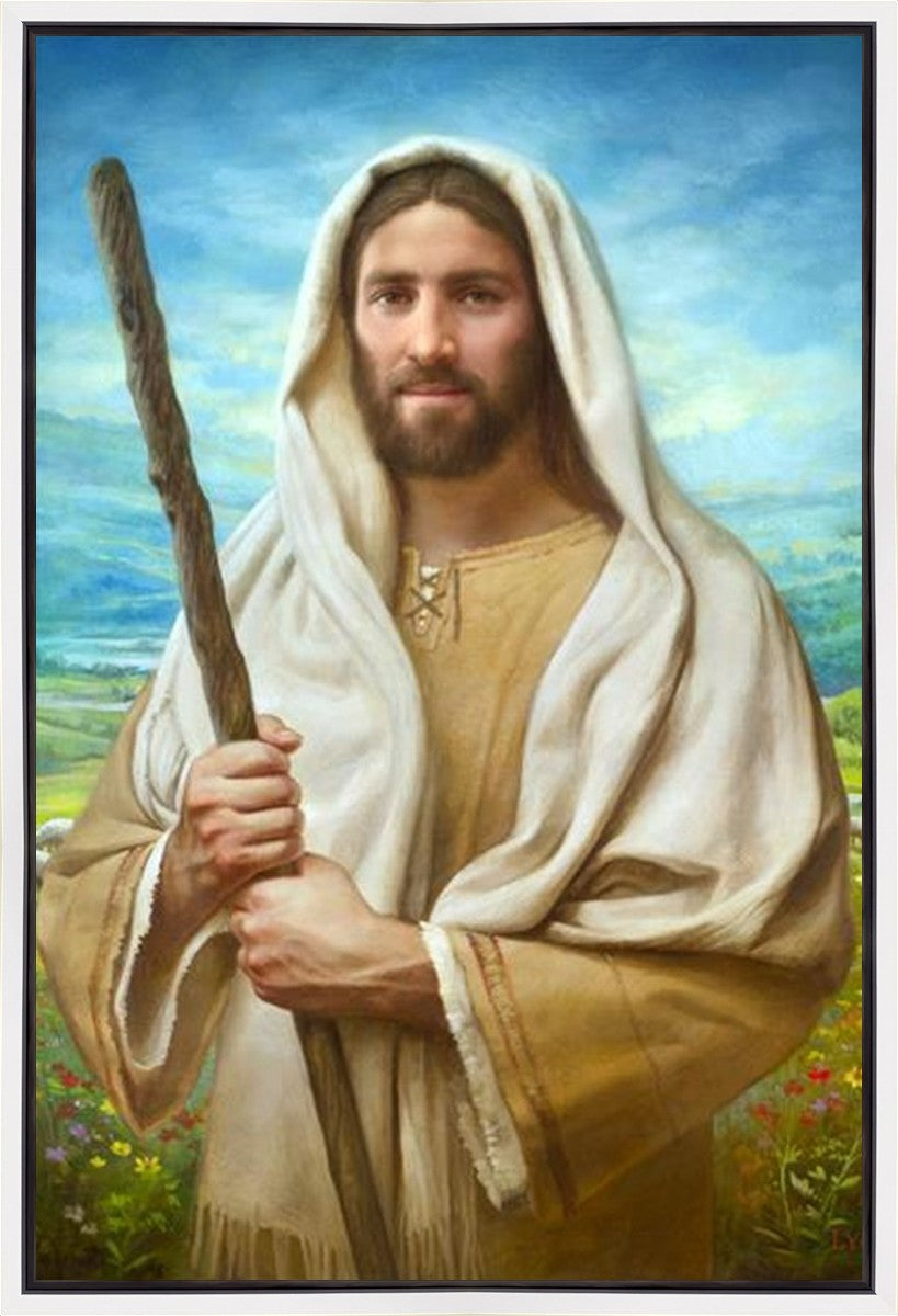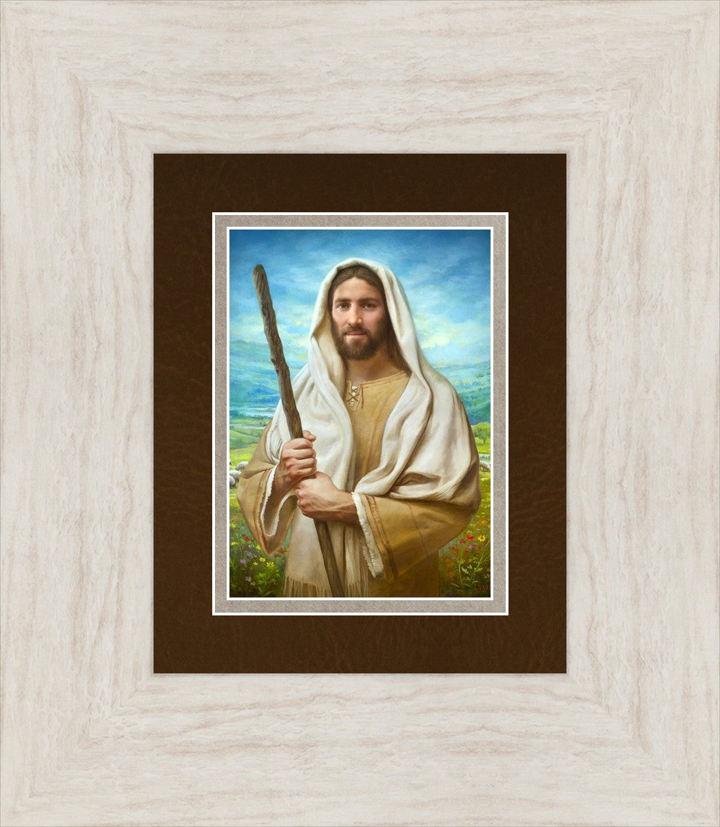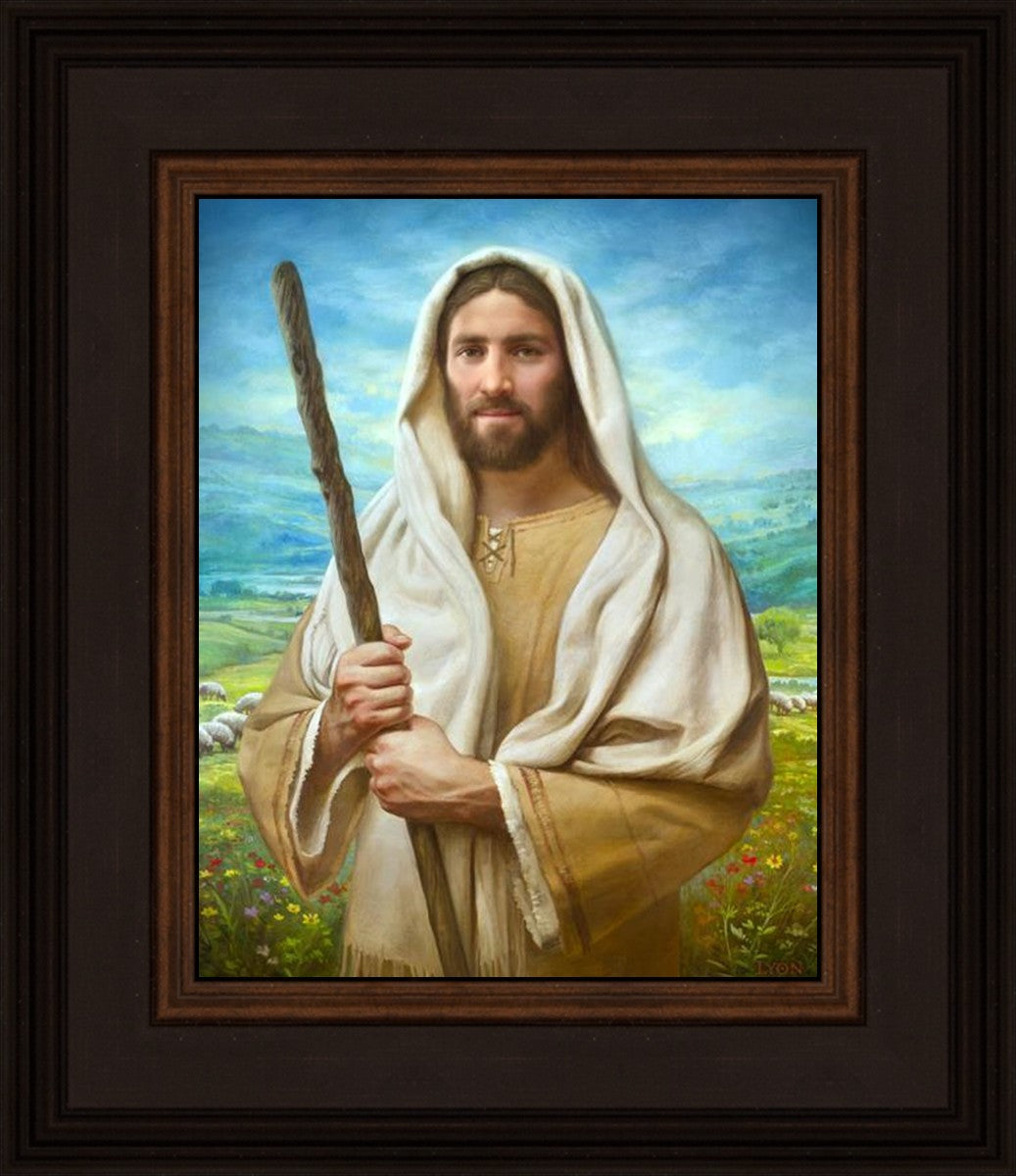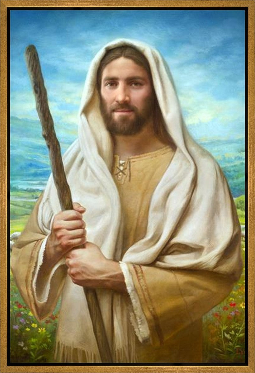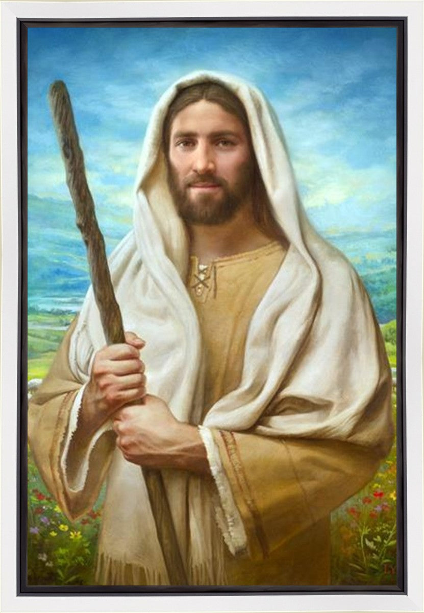 John 21:17 …Lovest thou me? And he said unto him, Lord, thou knowest all things; thou knowest that I love thee. Jesus saith unto him, Feed my sheep. **** In this painting, Christ is depicted in the role of the Good Shepherd. He holds firmly to the rod, representing the law of His Father. It symbolizes the commandments and teachings that help to keep us, His flock, safe. Christ’s countenance expresses the mercy of the Atonement and the path back to our Father. If we should stray from the safety of His flock in this life, we know that our Shepherd will find us if we call out to Him. We have also been given the charge, like Peter, to help our Savior in the work of bringing salvation to His flock, to feed His sheep. We will have the chance to bring nourishment to those who come across our way if we are willing to serve.
