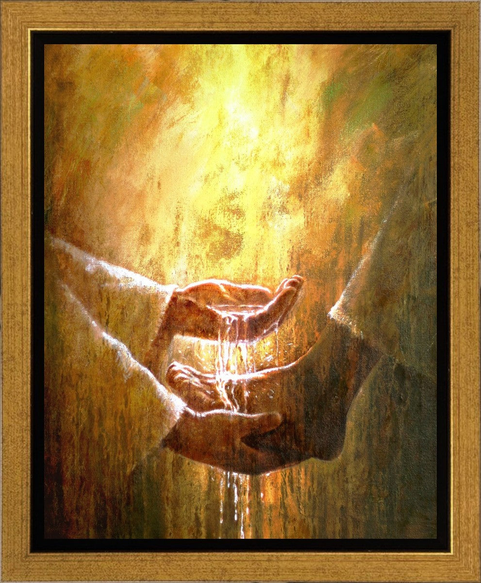 "Foot Washing" by Yongsung Kim depicts Jesus washing the feet of a disciples.