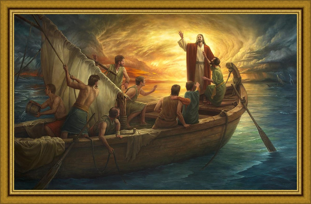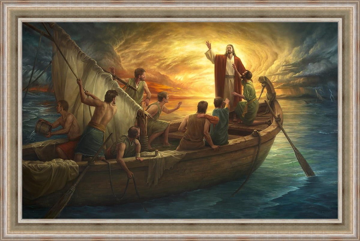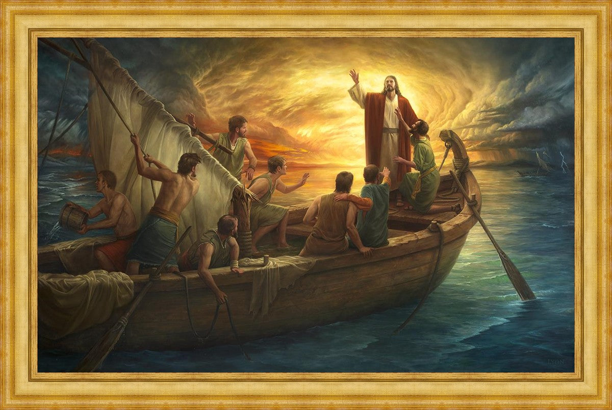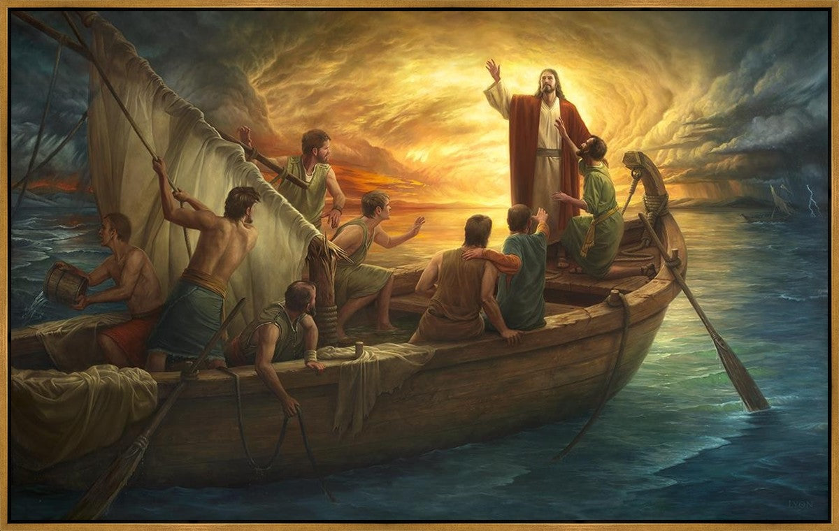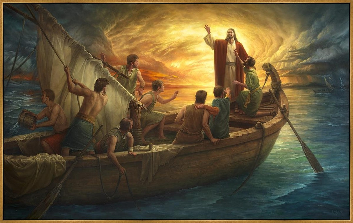We will face trials in this life. There will be times when the sea is raging around us. It may feel as if we are destined to fail, that the storms are too great and we are helpless. This painting by Howard Lyon depicts a range of emotions that we can all relate to. We often try to save ourselves, but when we turn to the Lord, He will save us and we will hear those magnificent words spoken in our hearts: “Peace, be still.”