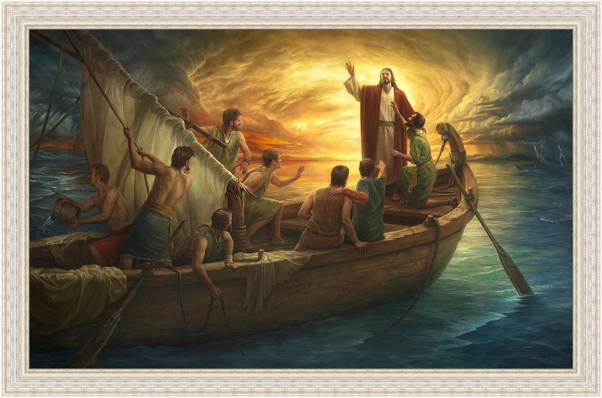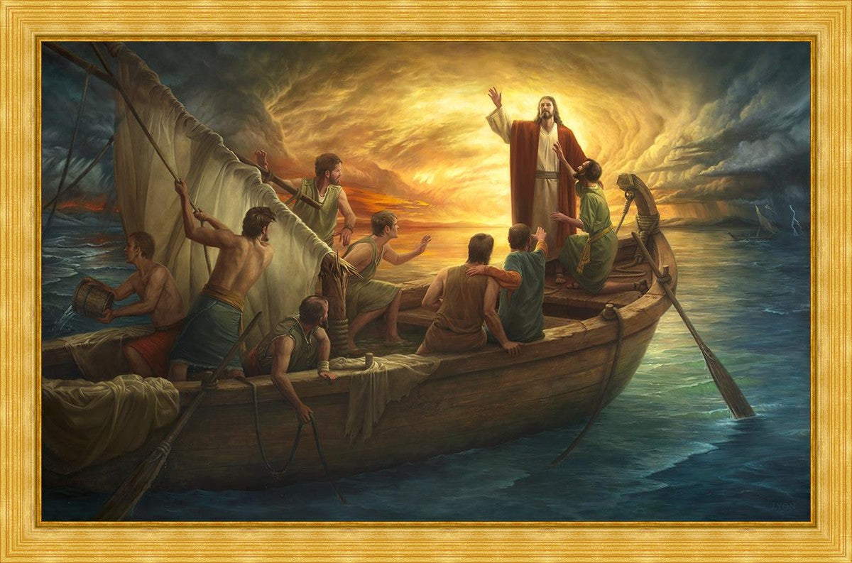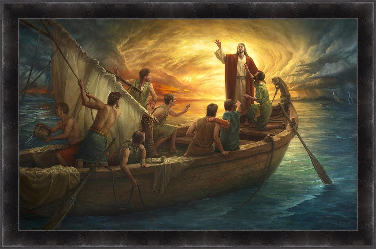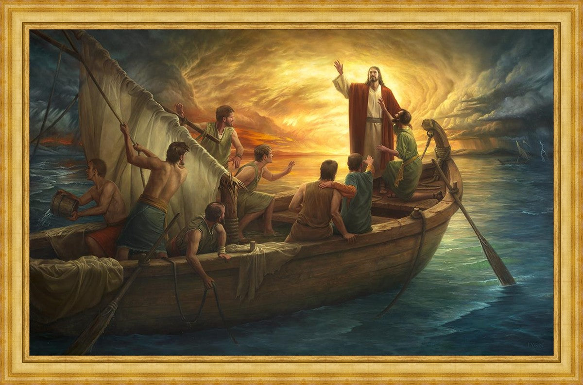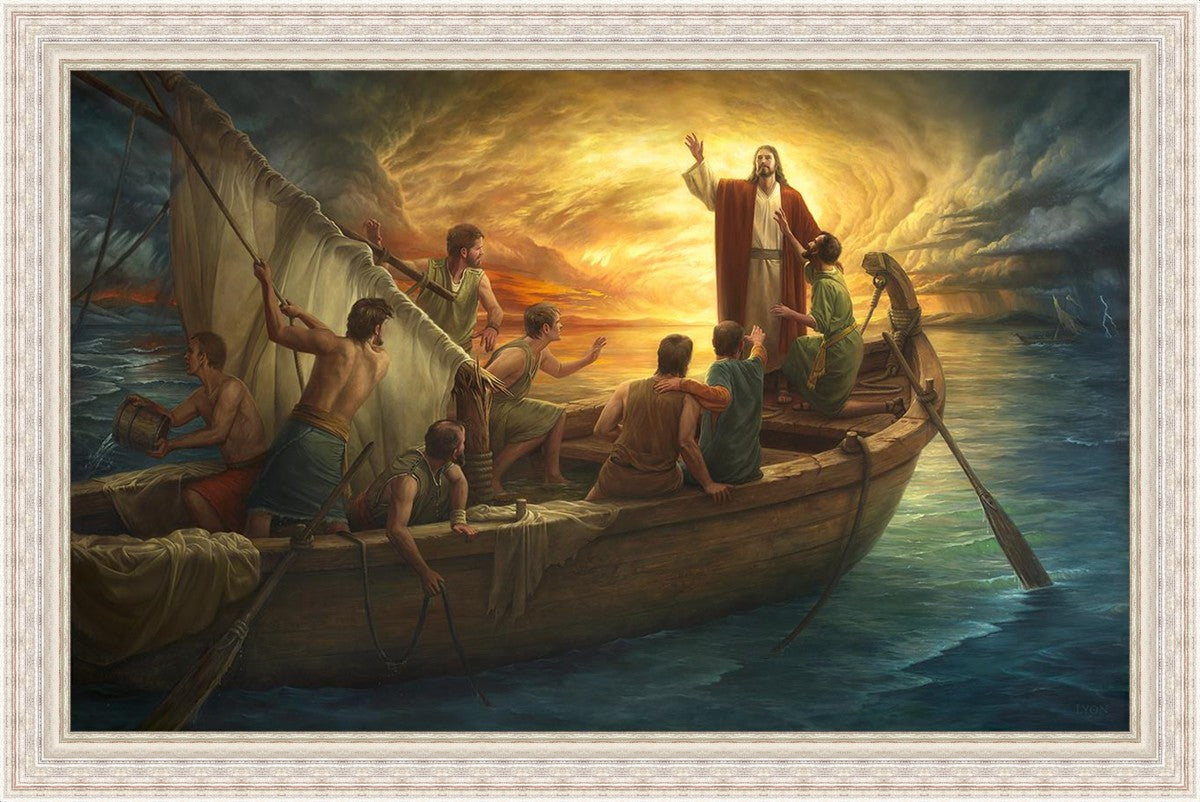 We will face trials in this life. There will be times when the sea is raging around us. It may feel as if we are destined to fail, that the storms are too great and we are helpless. This painting by Howard Lyon depicts a range of emotions that we can all relate to. We often try to save ourselves, but when we turn to the Lord, He will save us and we will hear those magnificent words spoken in our hearts: “Peace, be still.”