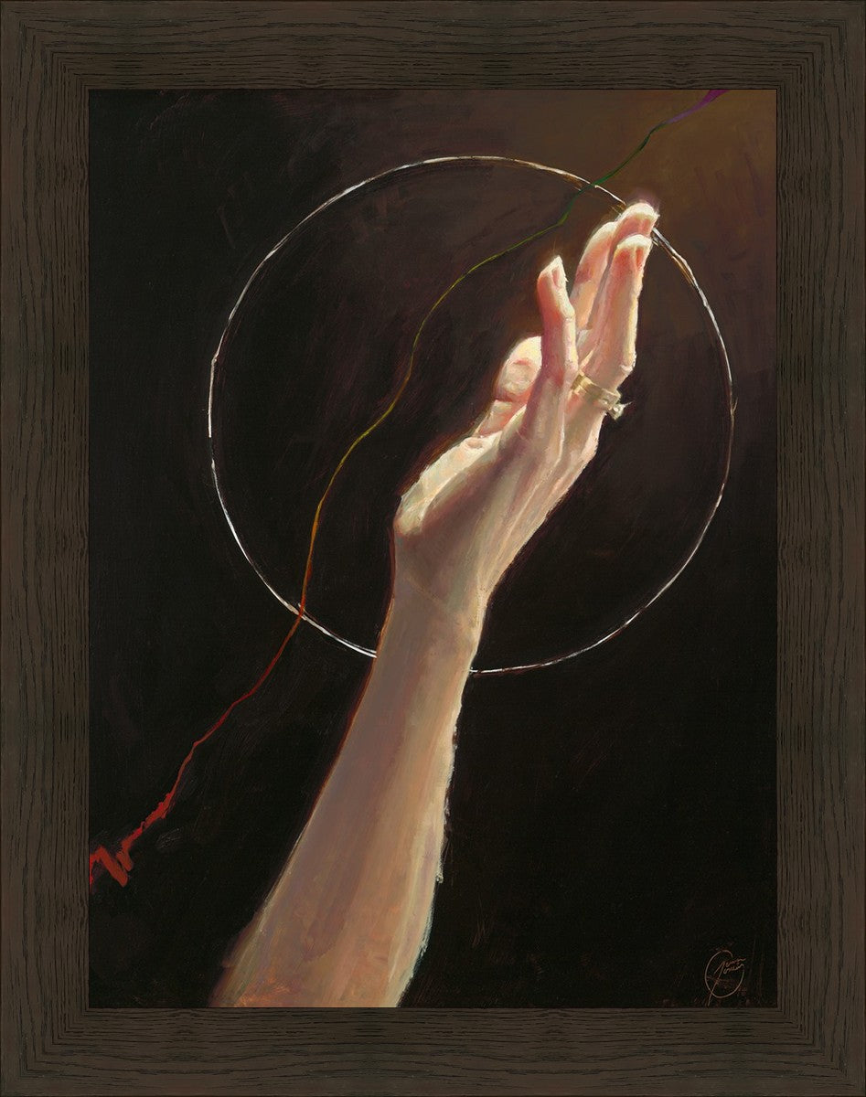 The piece was initially inspired by certain moms of lgbtq+ children. I've felt moved by their compassion and their desire to learn and to become better parents, allies and friends. I am amazed by their love and see Christ reflected in them. The hand pictured is meant to be that of a loving mother.