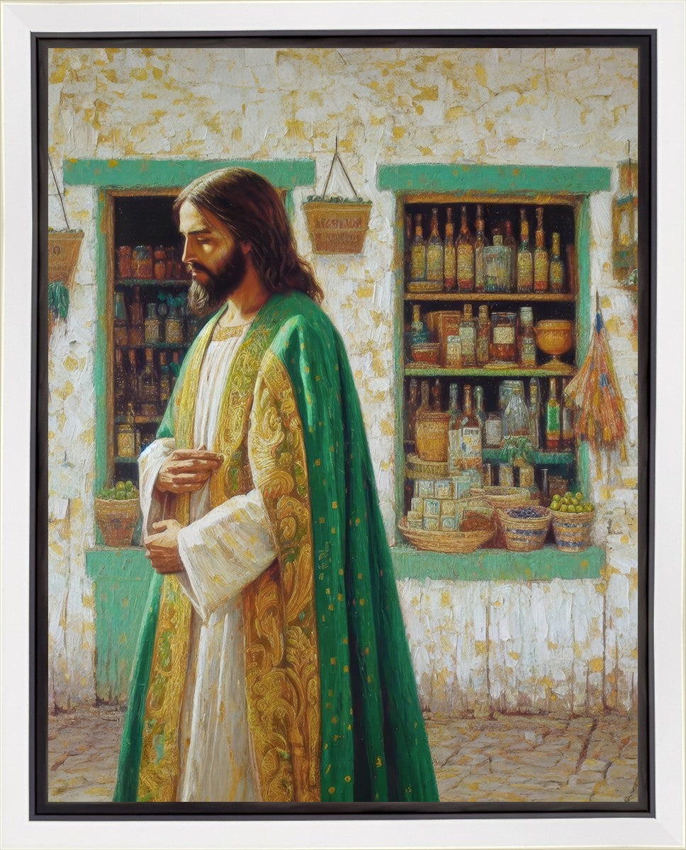 With deep familial ties to Mexico, we wanted to portray Christ in a way that would place Him in the contemporary world, while honoring family heritage. Through the vibrant colors and modern setting, our painting celebrates the enduring relevance of Christ’s teachings in today’s world. It is a testament to the idea that God is indeed among us, walking alongside us in our joys and struggles, offering hope and guidance in every moment. We hope that through this piece people will contemplate the intersection of faith and culture, reminding everyone of the universal nature of Christ’s love, regardless of where we are or where we come from.